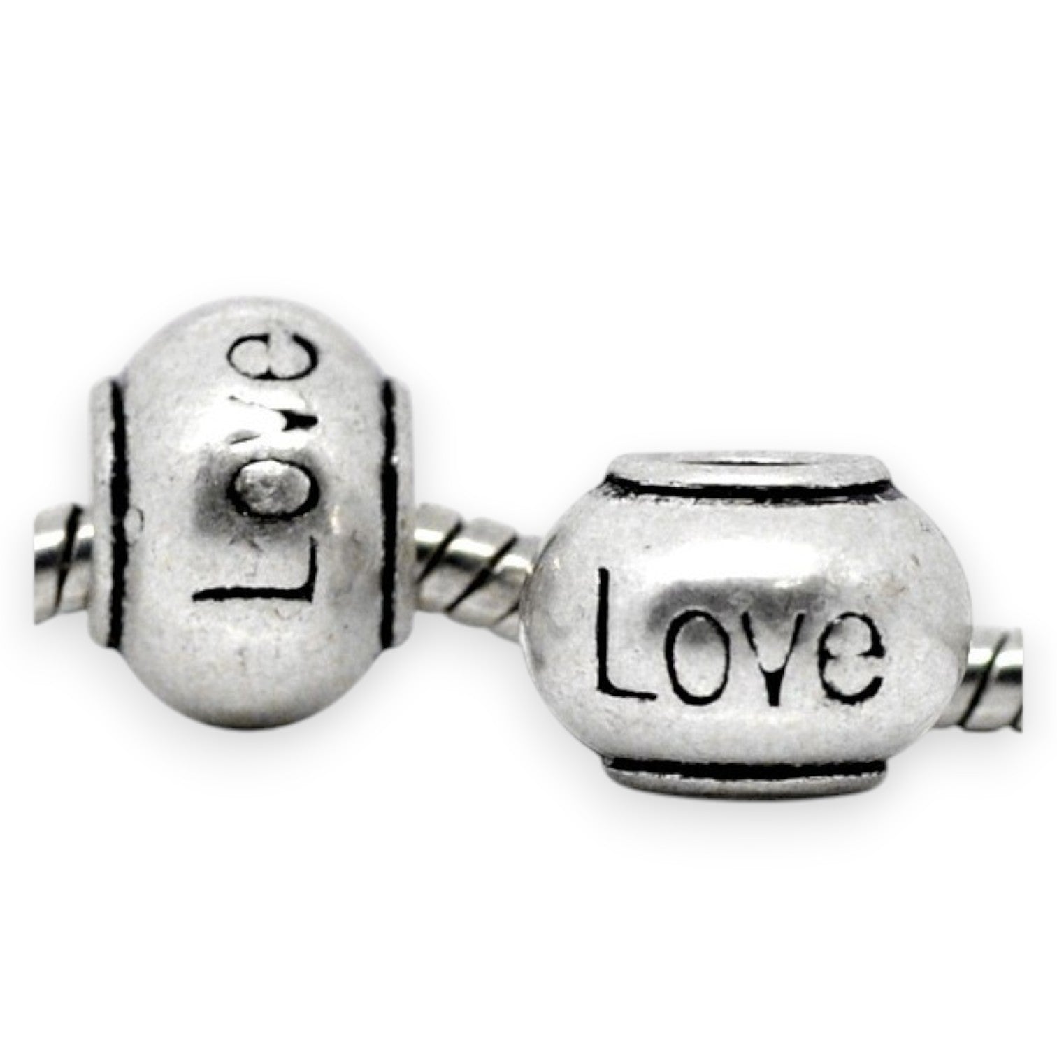 x2 Perles Charm Européen – Gravées "LOVE" (Gros trou)