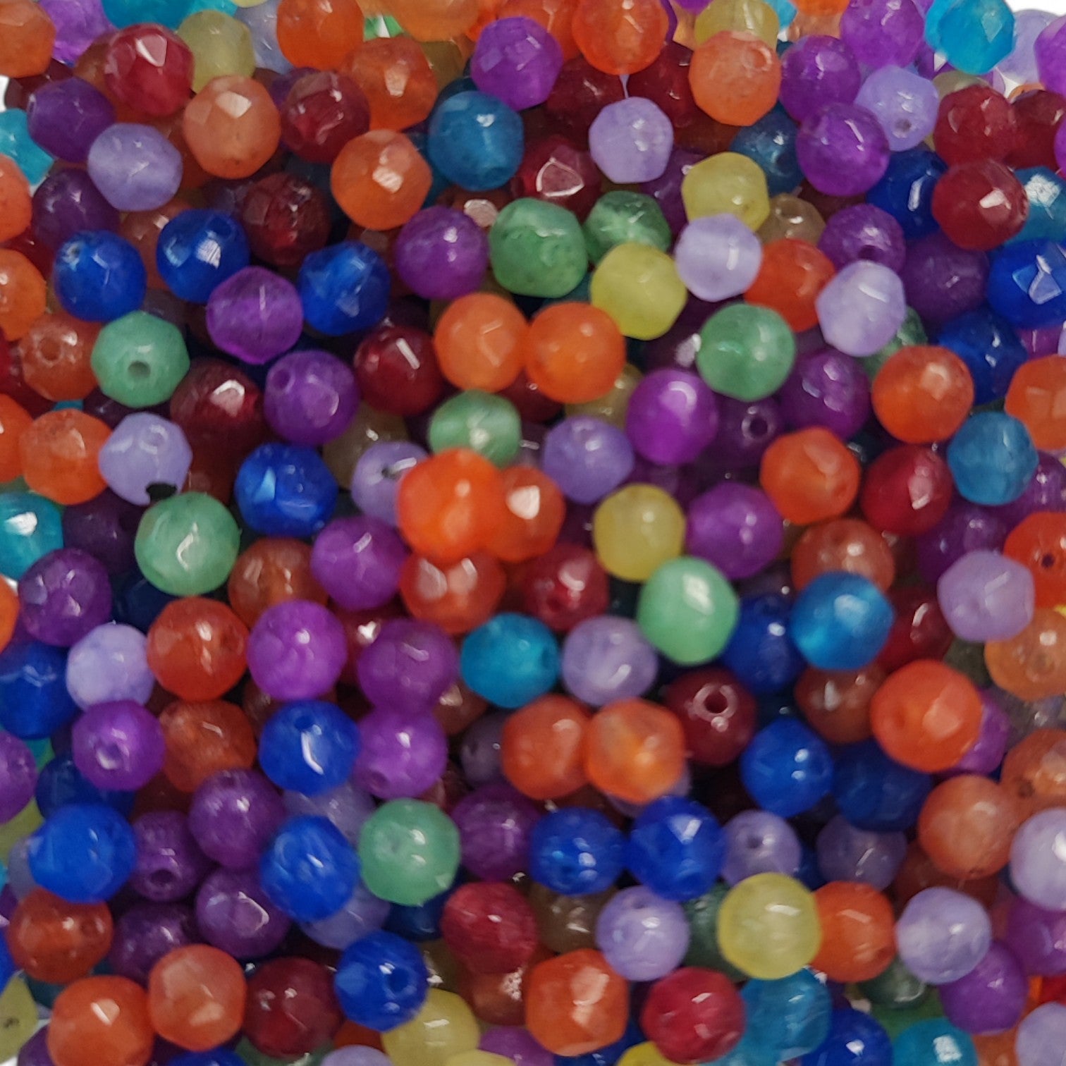 💠 Perles Facettées en Jade Blanc Teinté – 4 mm | Couleurs Mélangées
