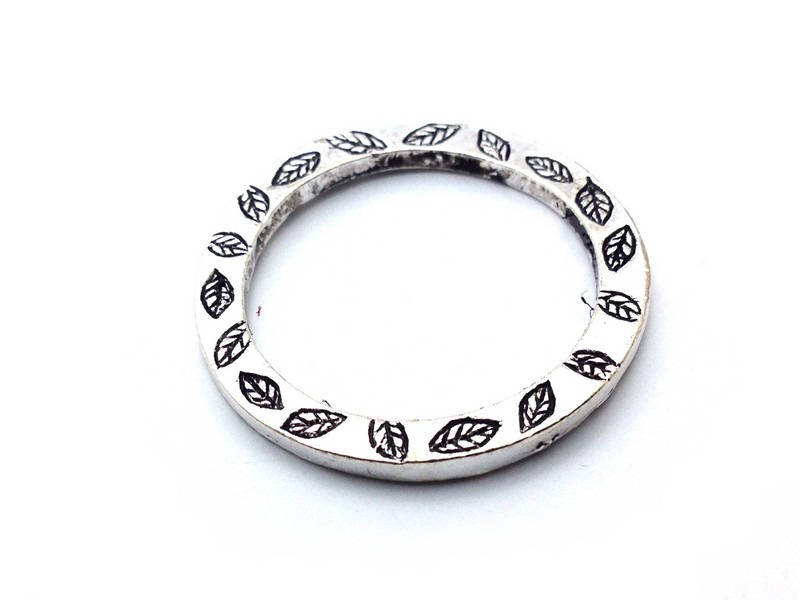 🍃 Pendentifs connecteurs Donuts – Anneaux ronds gravés en métal argenté foncé