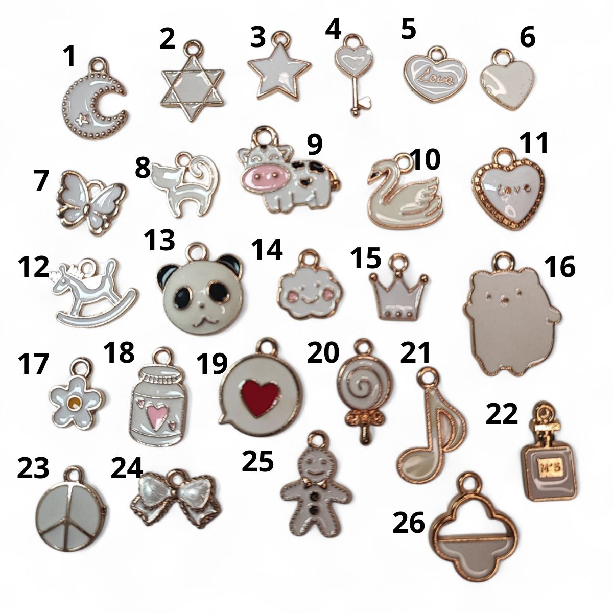 🌈 Breloques Dorées & Émaillées blanches – Motifs au Choix
