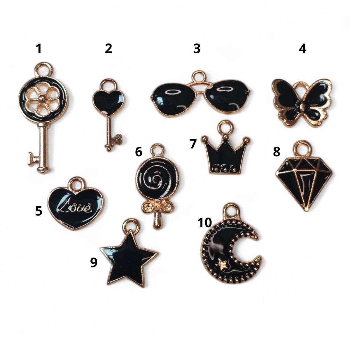🌈 Breloques Dorées & Émaillées noires – Motifs au Choix