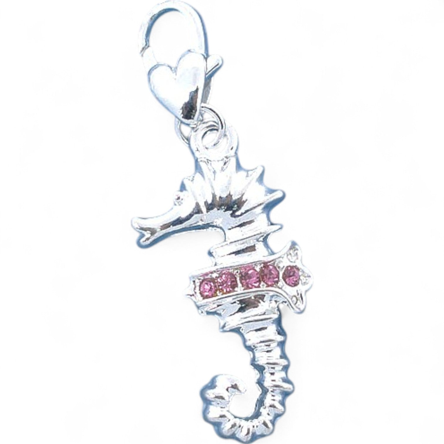 Charm Hippocampe Rose – Strass et Métal Argenté
