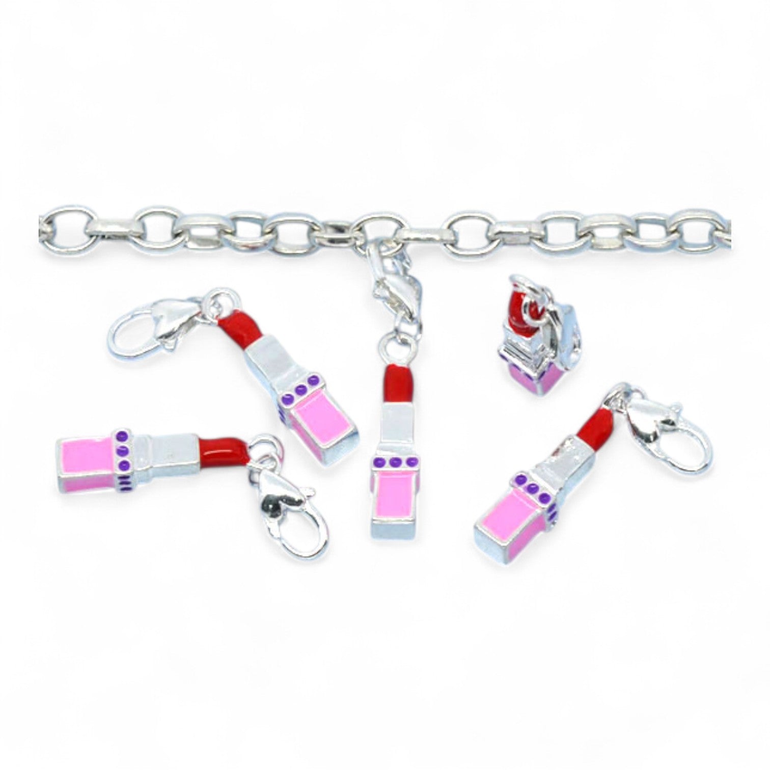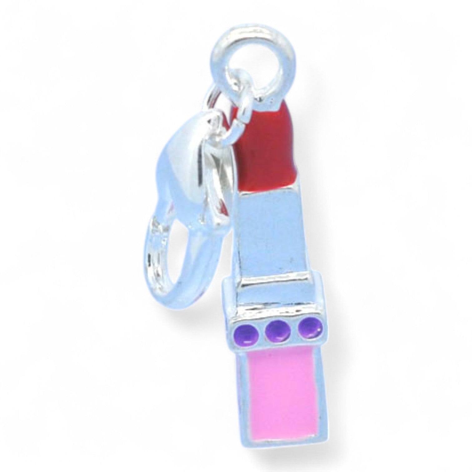 Charm Rouge à Lèvres 3D – Émaillé Rose & Rouge, Fermoir Argenté