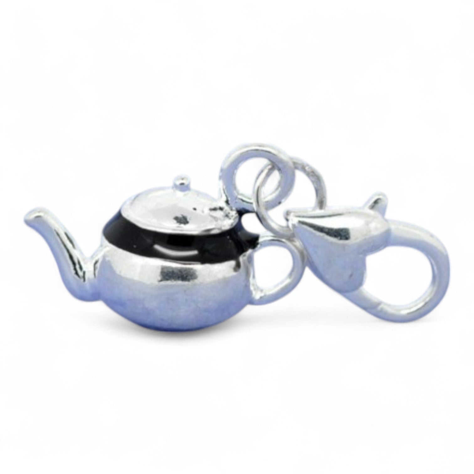 x1 Breloque Théière Émaillée – Noir ou Rose – Métal Argenté 3D avec Fermoir