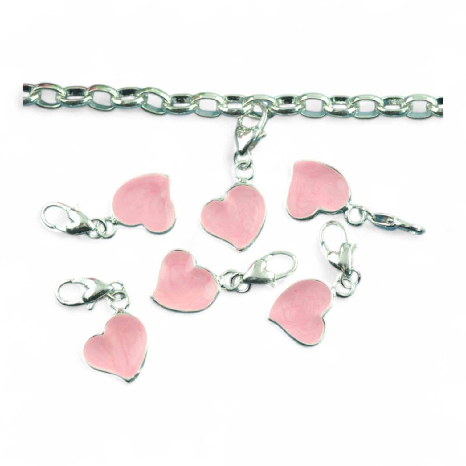 Ce charm en métal argenté et émail rose en forme de cœur plat est parfait pour ajouter une touche douce et romantique à vos bijoux faits main.
