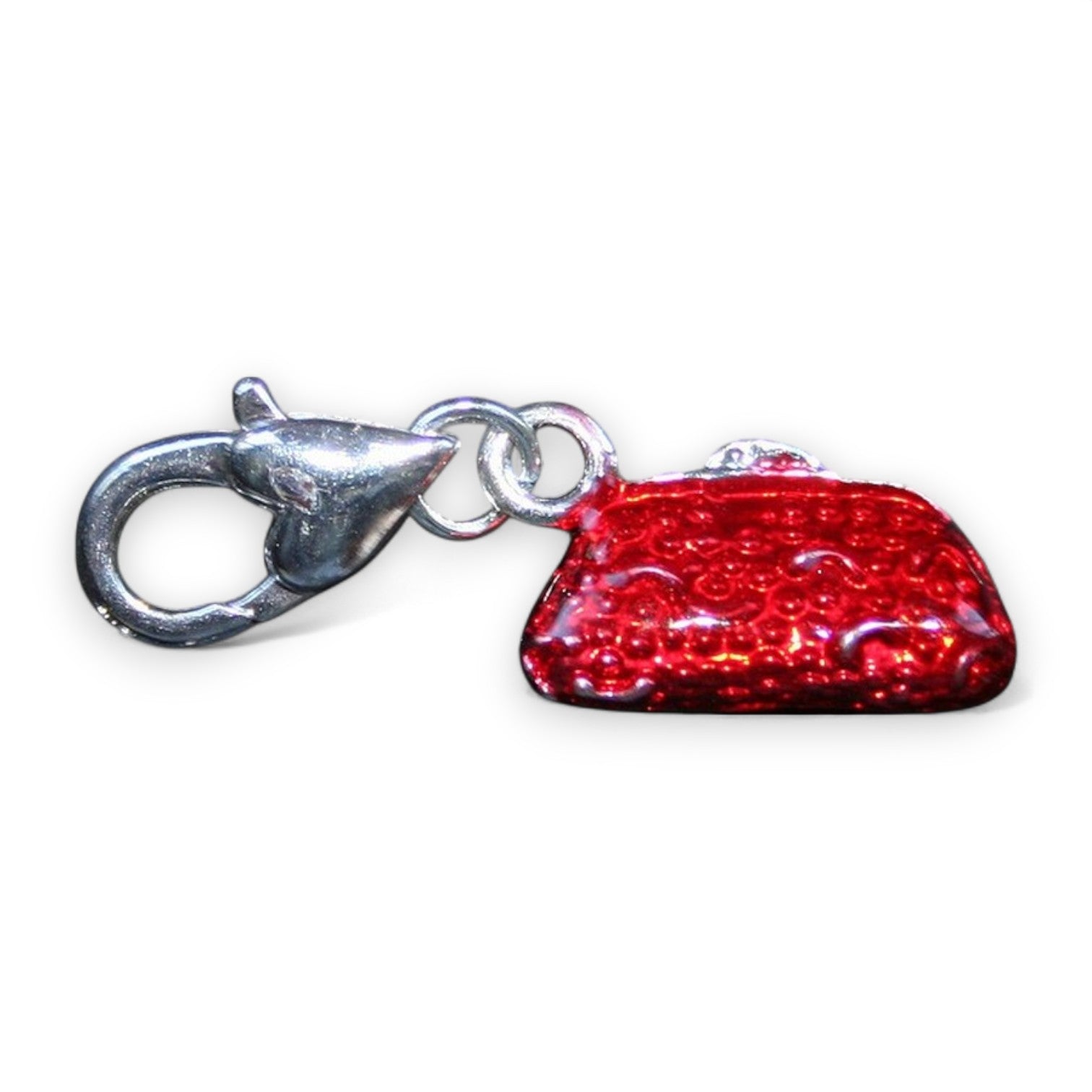 👜 Charm Pochette Rouge 3D – Émaillé & Métal Argenté (31 mm)