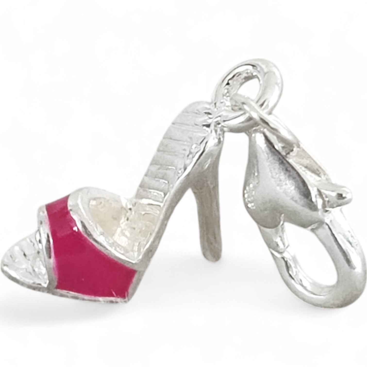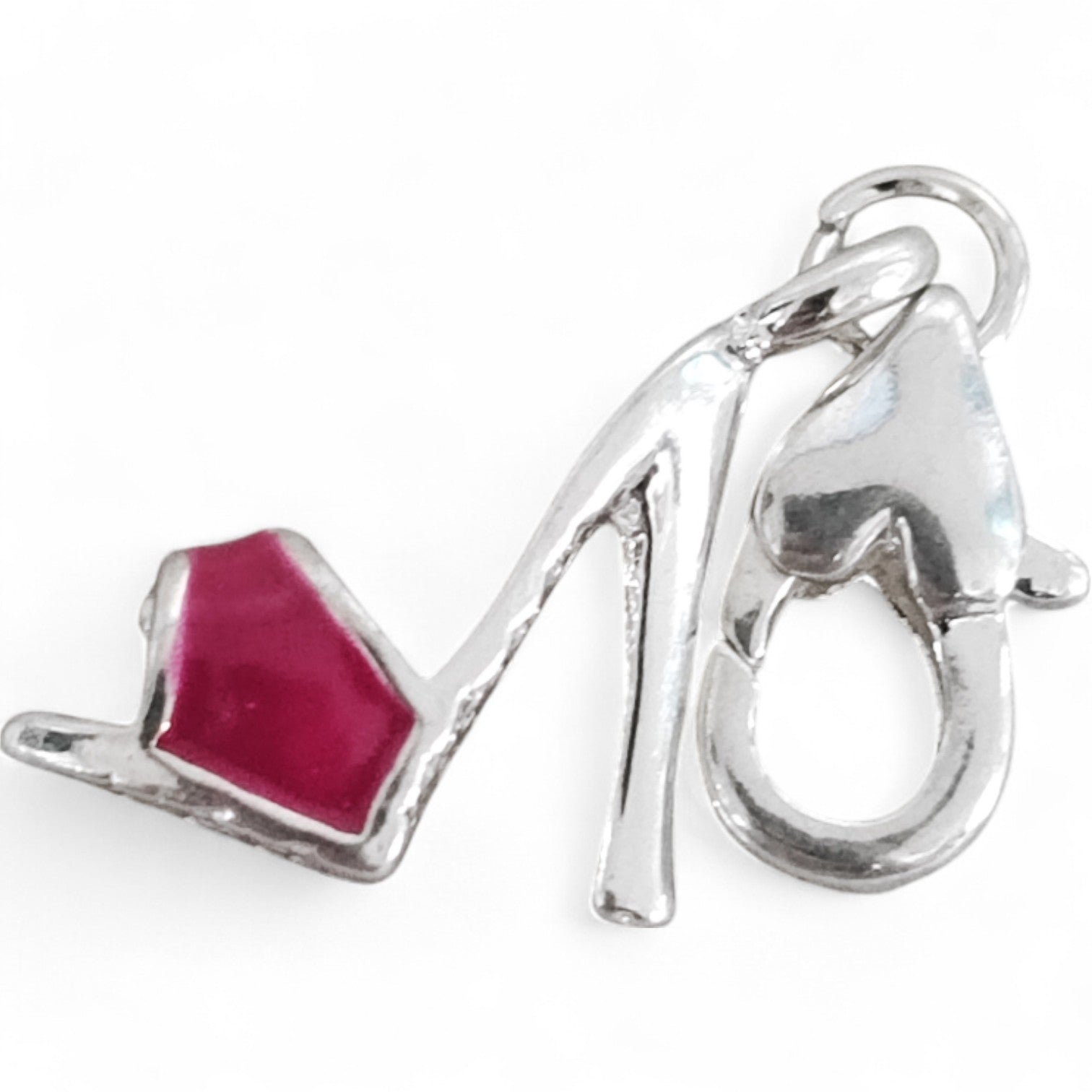 👠 Charm Escarpin Rose – Sur Fermoir, Métal Émaillé, 32 mm