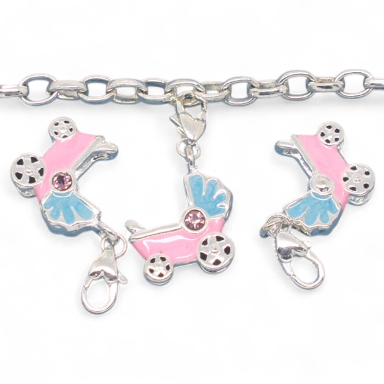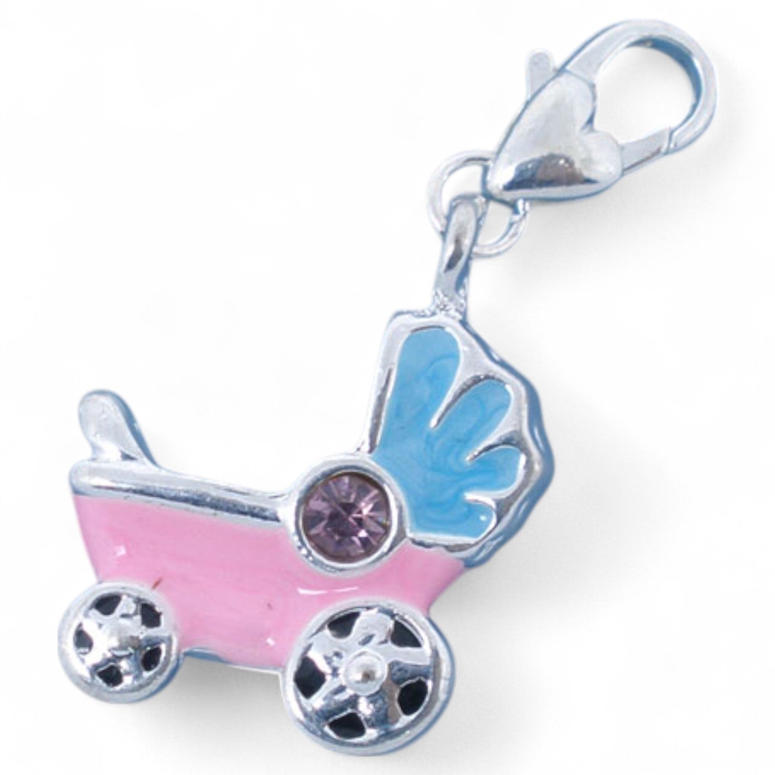 Charm Poussette Émaillé Rose et Bleu – Strass Violet Clair
