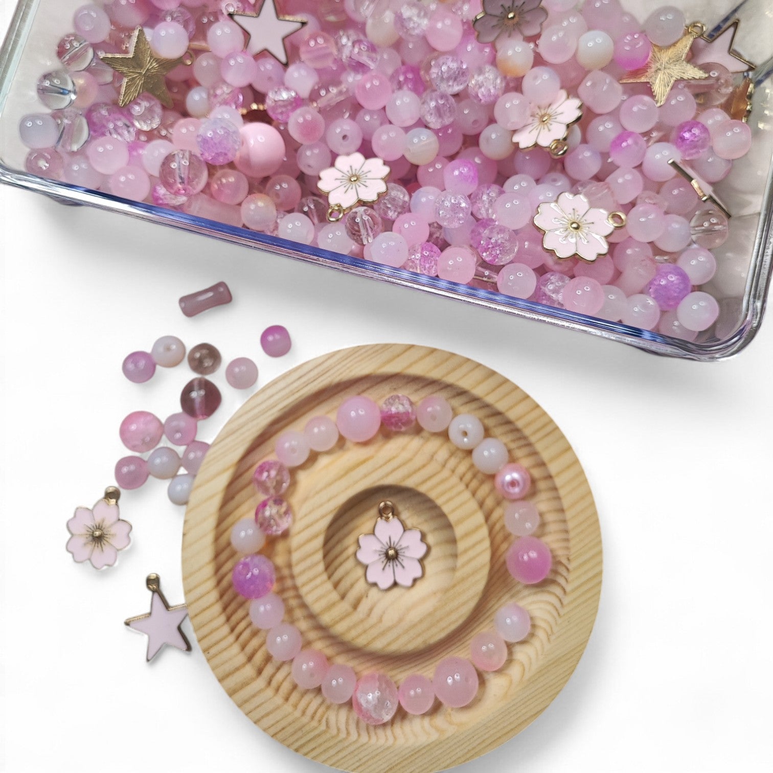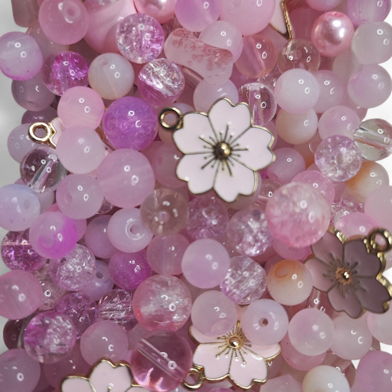 Plongez dans un univers doux et raffiné avec notre mélange "Charms Romantiques" . Des perles en verre aux teintes rose clair, craquelées, opalines, rondes et en forme bambou, associées à de délicates breloques dorées et roses émaillées. Un assortiment tendre et élégant, idéal pour des créations pleines de charme et de poésie.