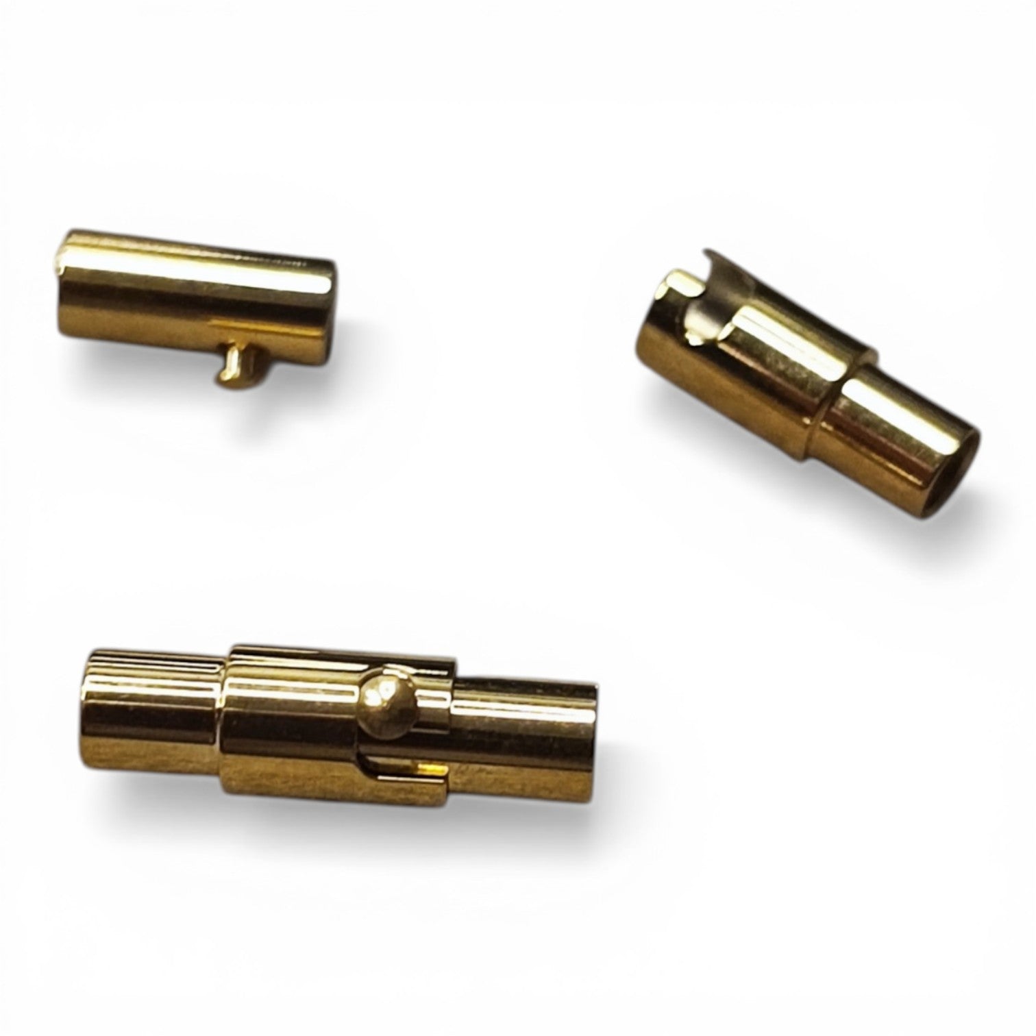 Apportez une finition élégante et sécurisée à vos créations avec ce fermoir magnétique tubulaire à verrouillage. Conçu en acier inoxydable 304 avec un revêtement doré par ionisation (IP), il allie brillance, résistance et durabilité.