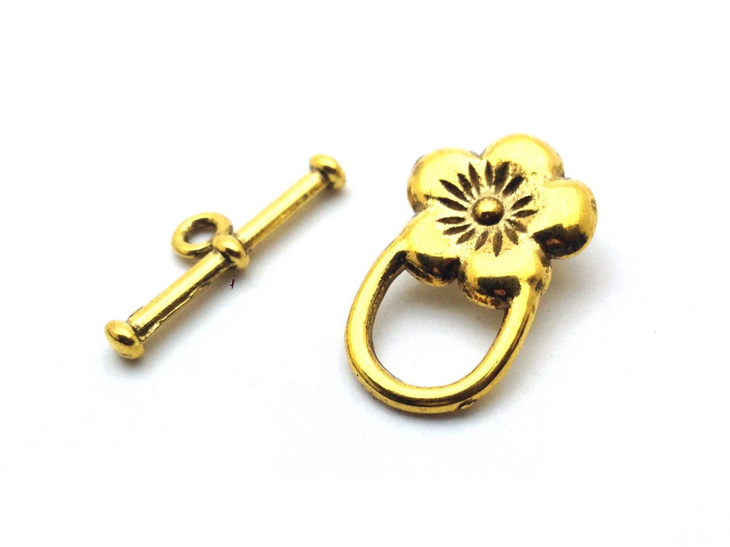 x1 Fermoir T - Toggle Fleur – Métal Doré Vieilli – 20,6 mm