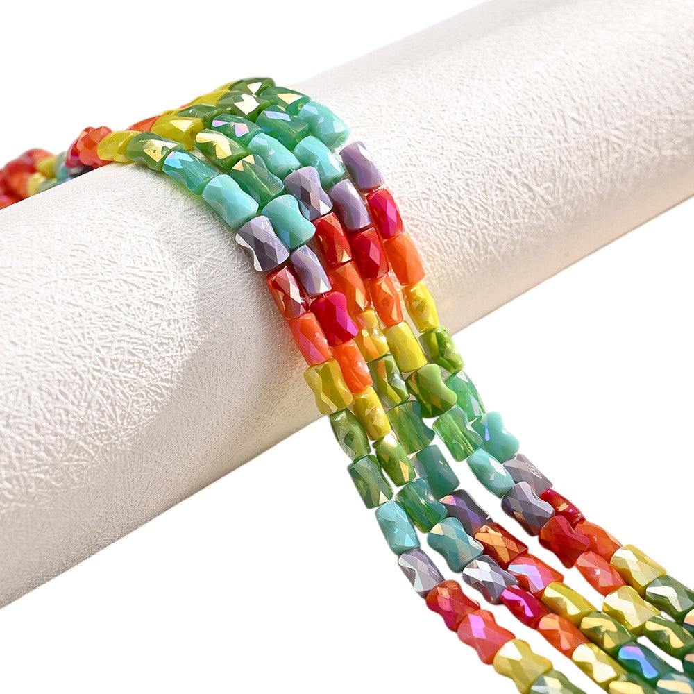Fil de 28 Perles de Verre Bambous Nacrés – Couleurs Arc-en-ciel – 8x6 mm