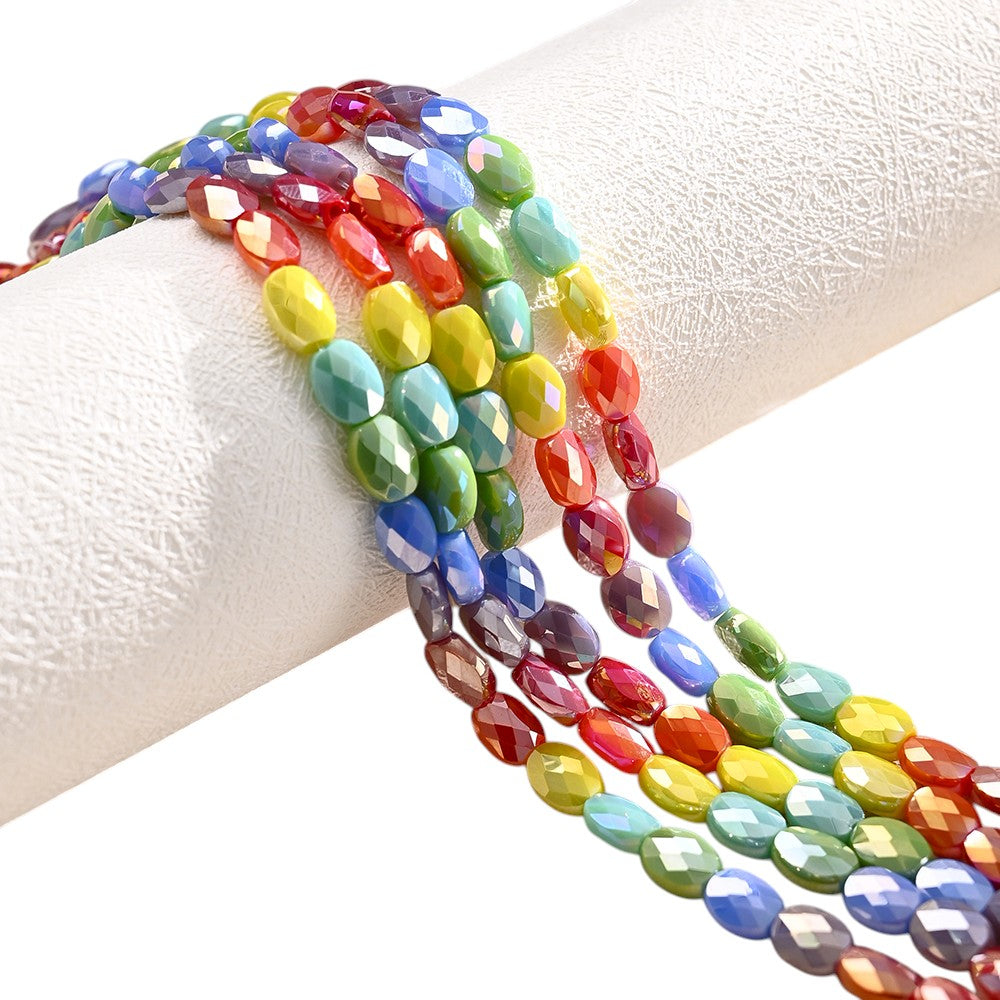 Fil de 28 Perles de Verre Ovales Nacrés – Couleurs Arc-en-ciel – 8x6 mm
