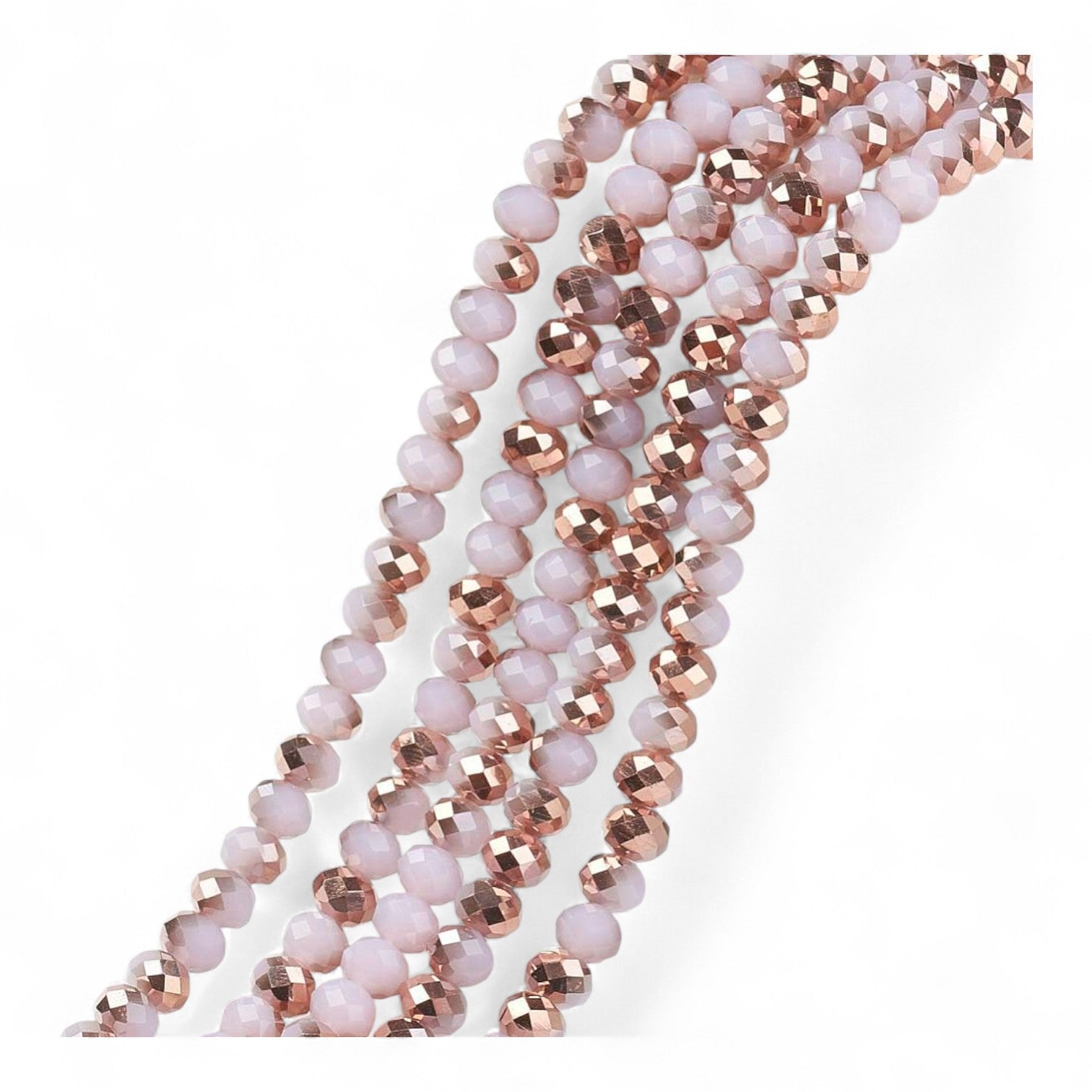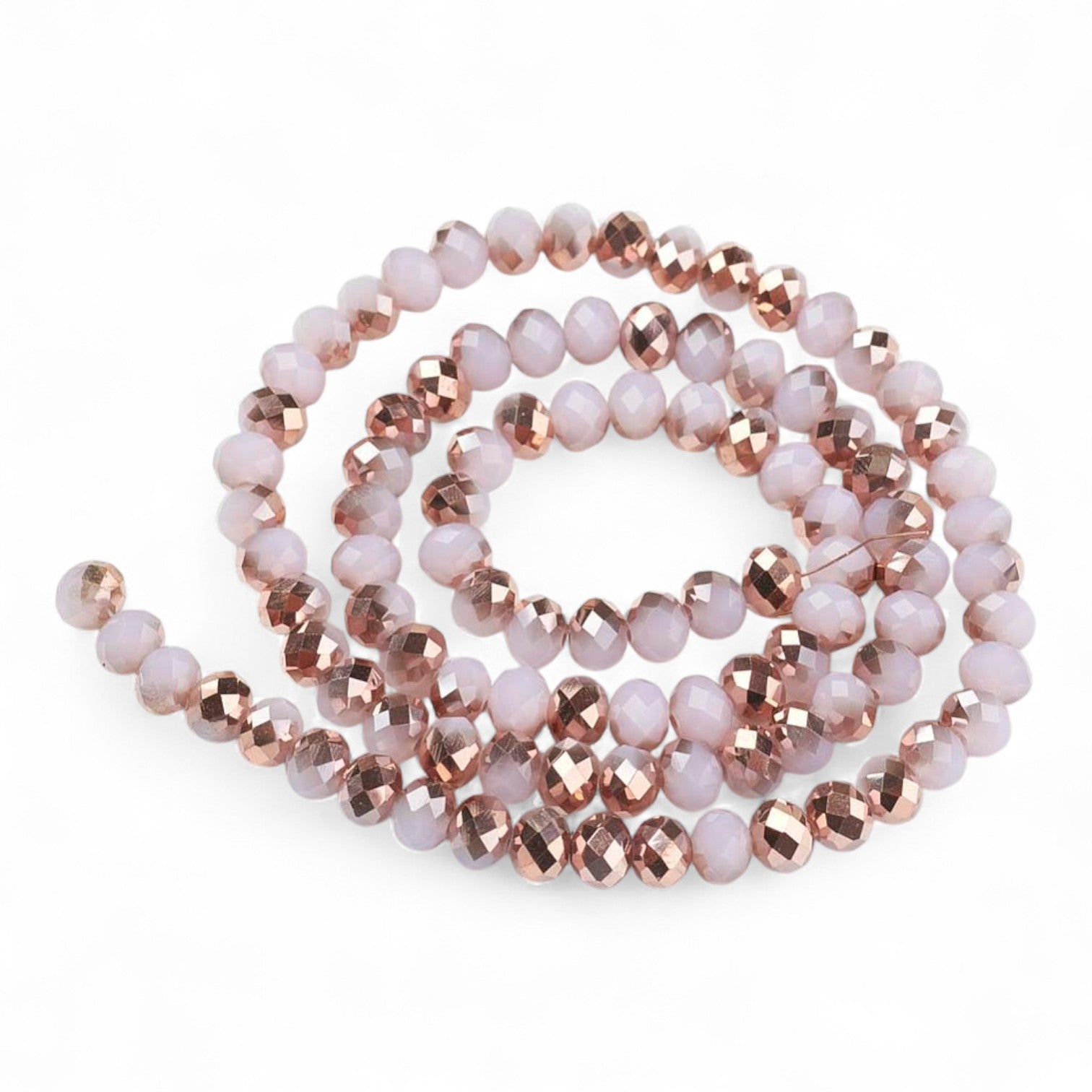Fil de Perles en Verre Imitation Jade – Facettées Rose et Cuivré – 6x5 mm