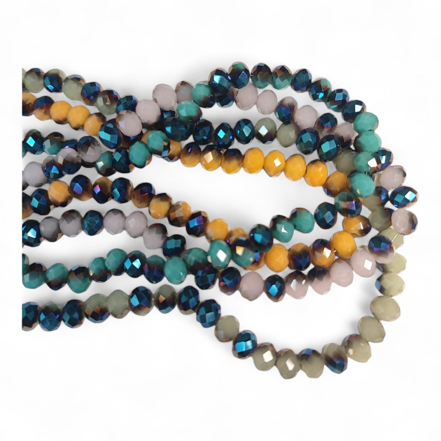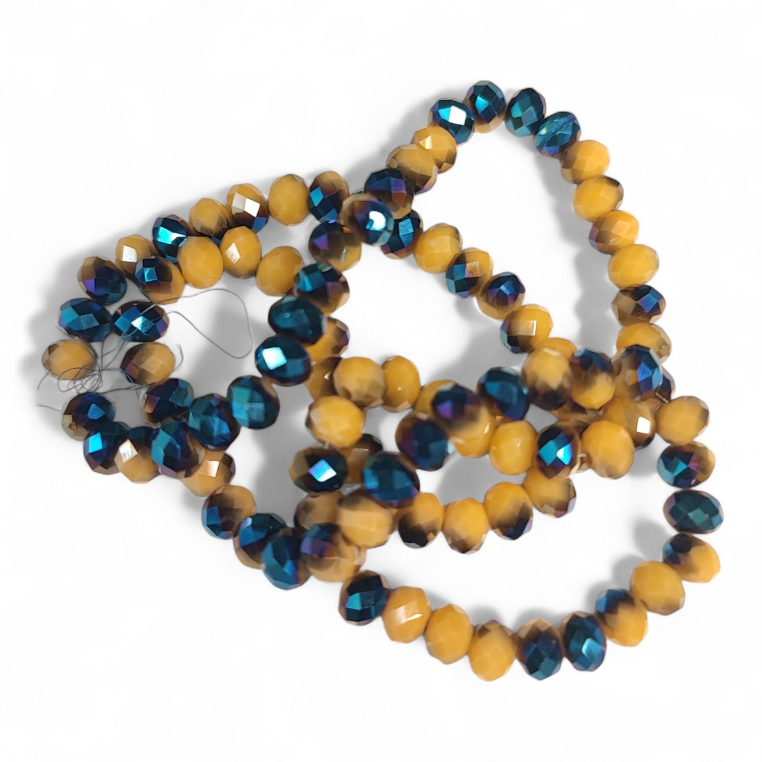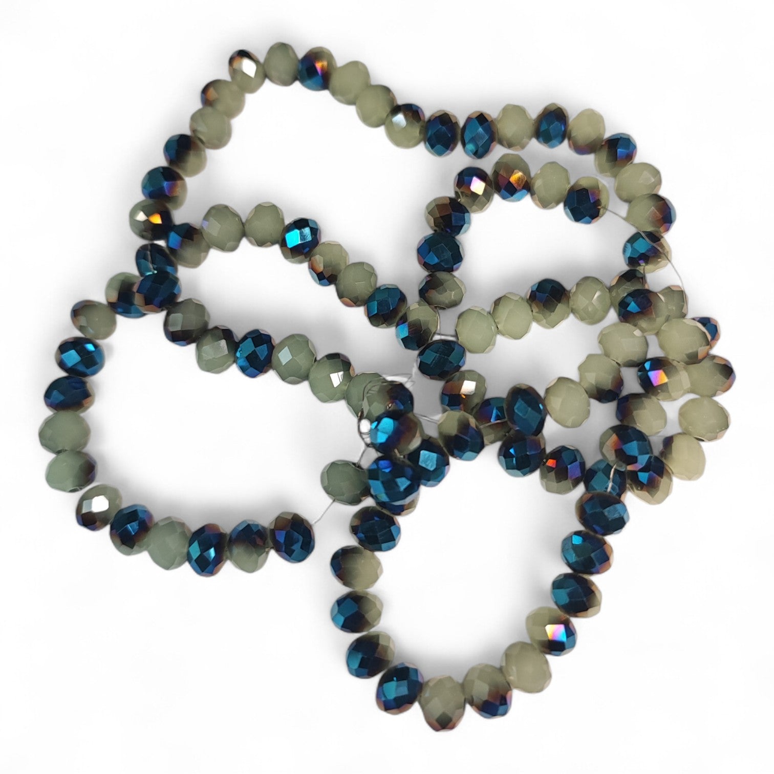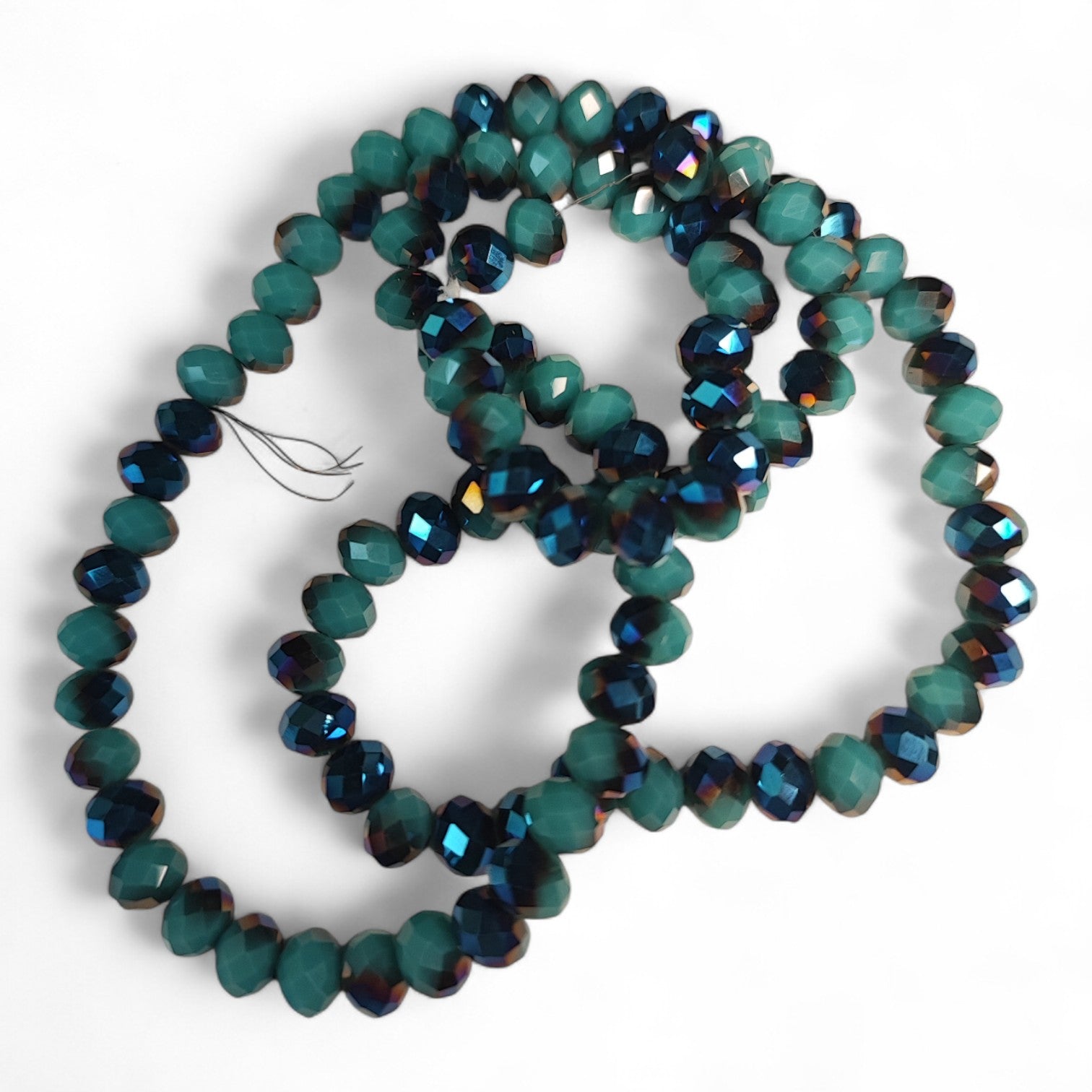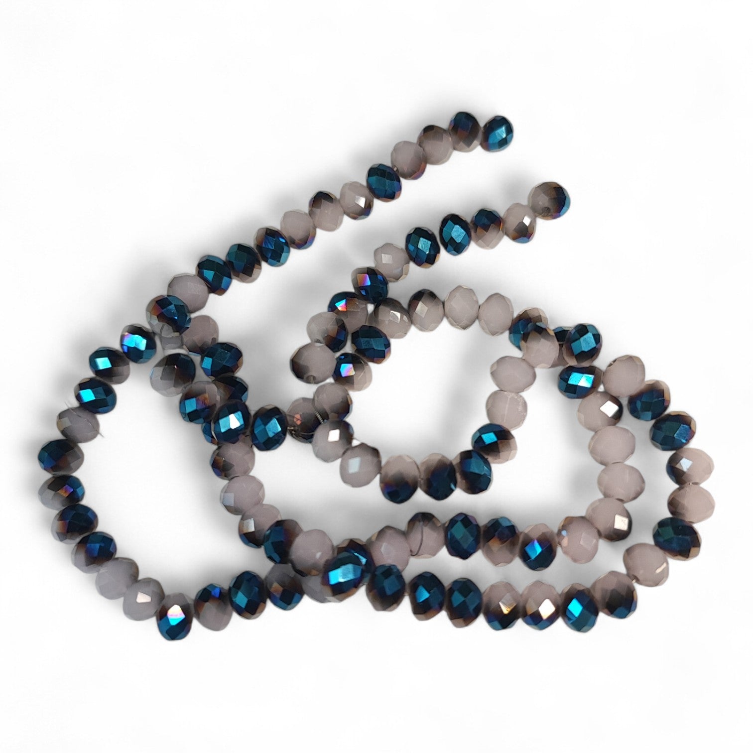 Fil de Perles en Verre opaque à Facettes et Effet métallisé bleu – 6x4,5 mm – Couleurs au choix