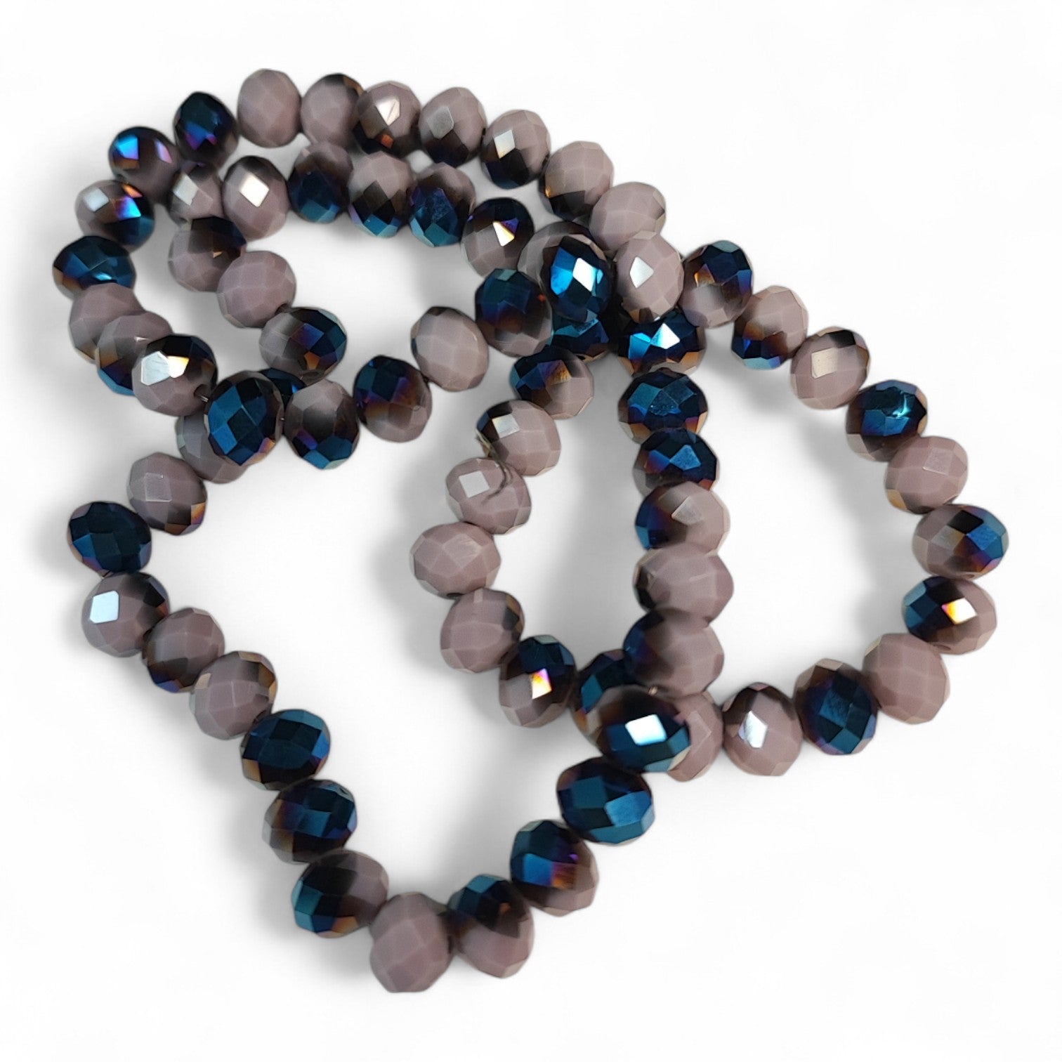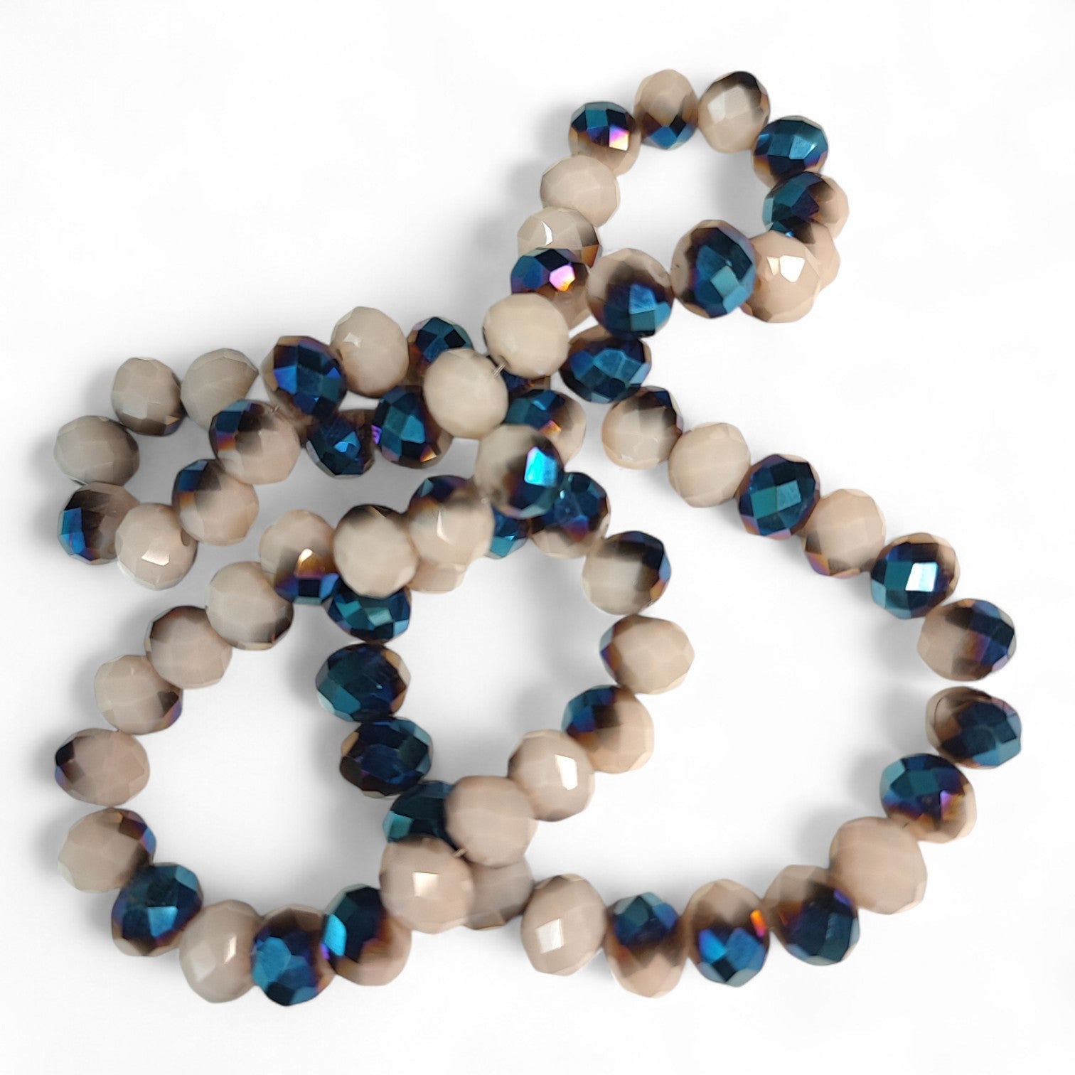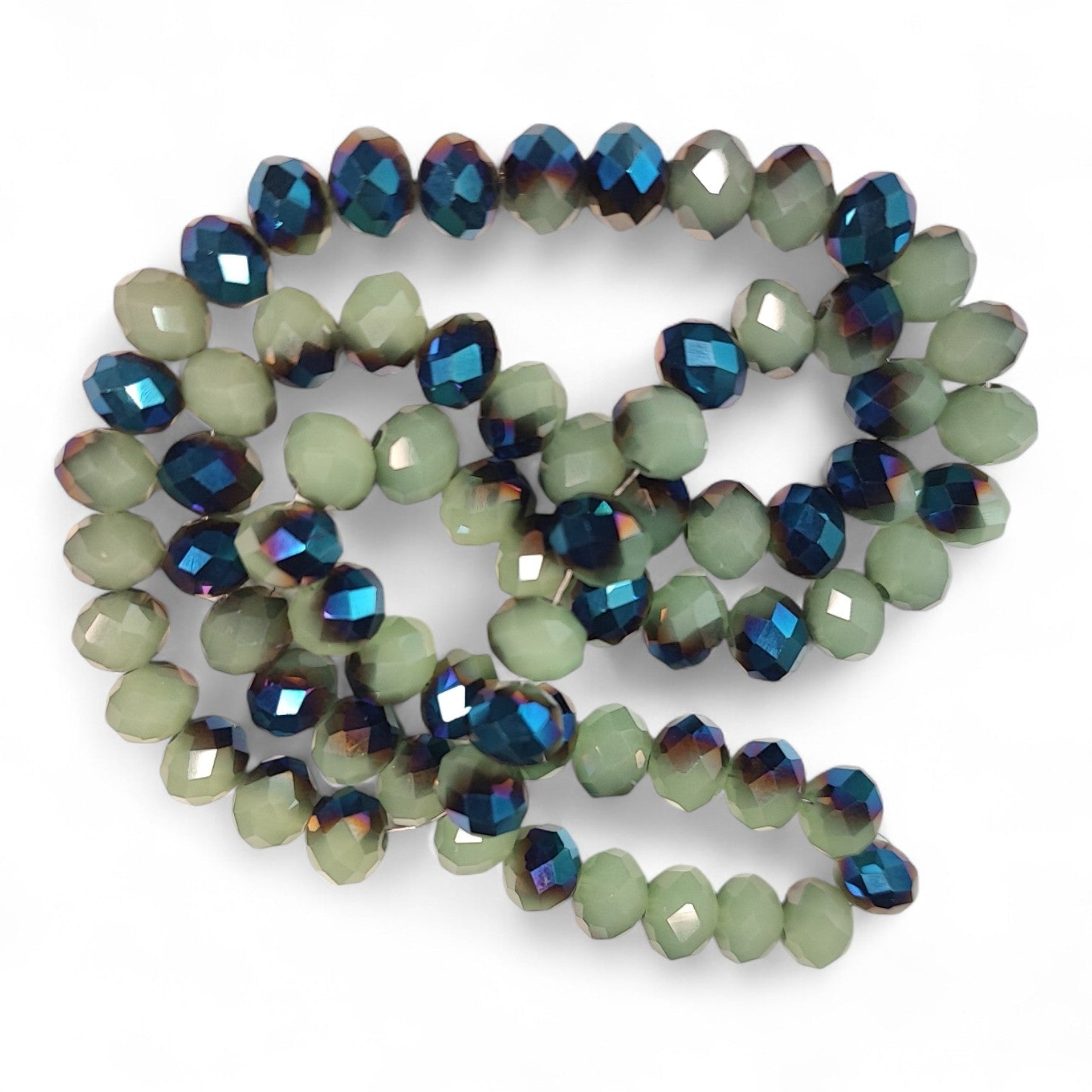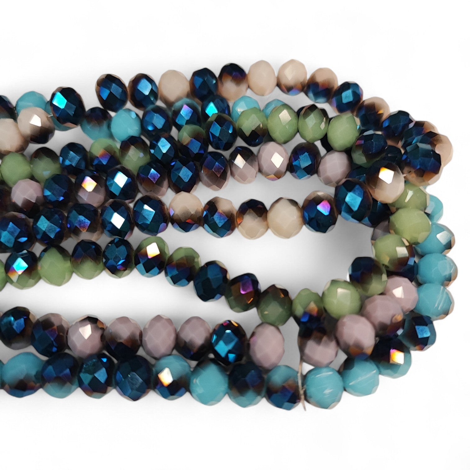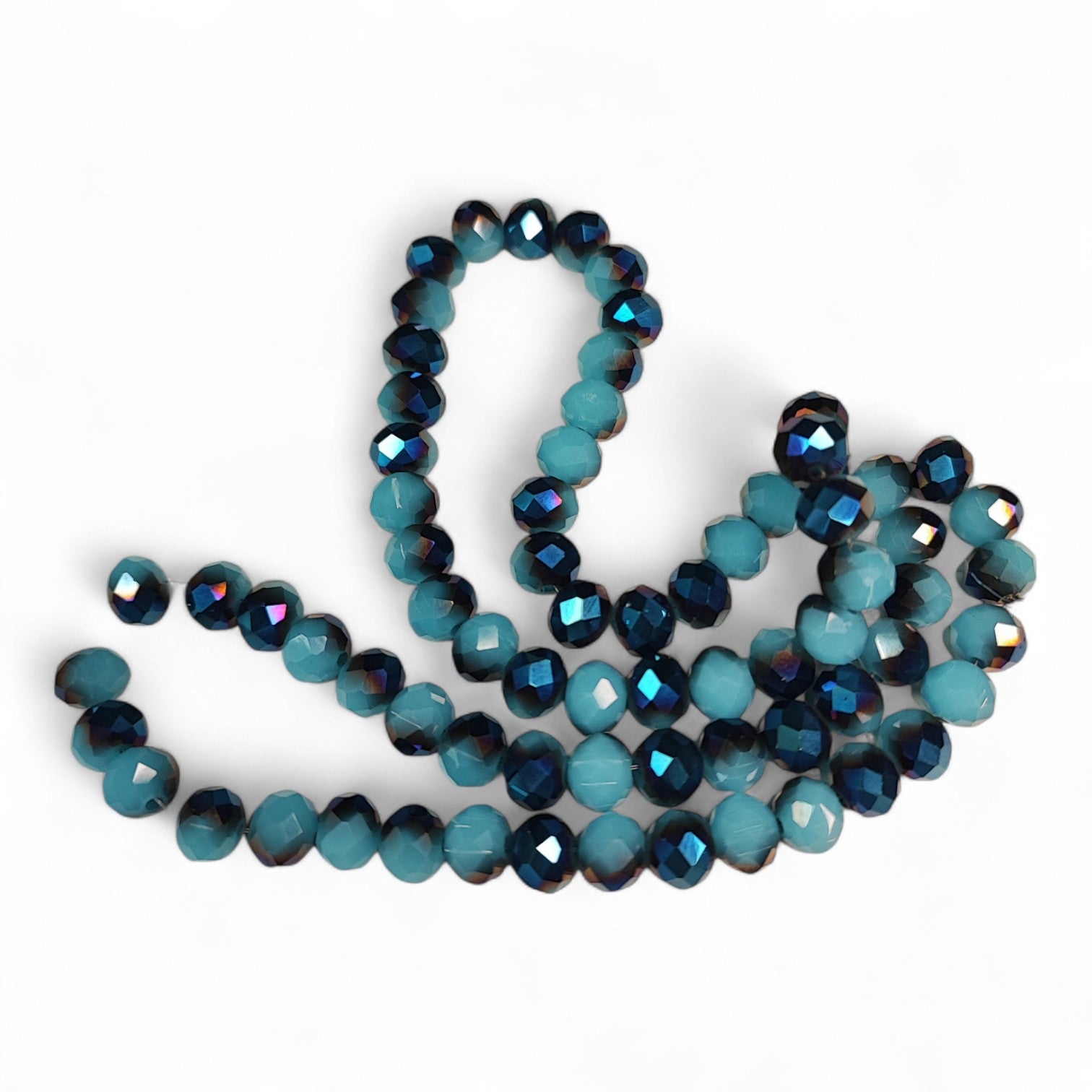 Fil de Perles en Verre opaque à Facettes et Effet métallisé bleu – 8x6mm – Couleurs au choix