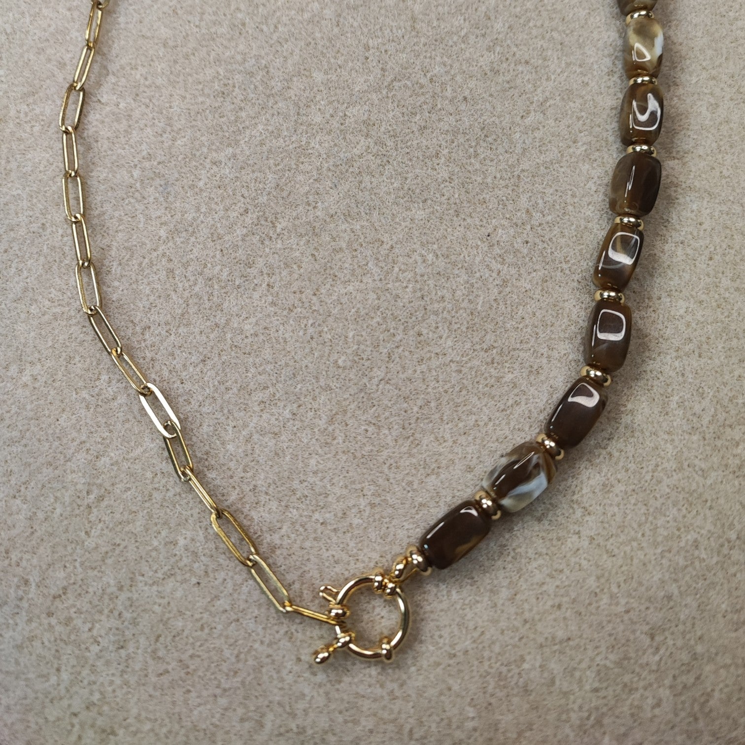 Créez un collier ultra chic et moderne grâce à ce kit complet mêlant perles acryliques façon pierres naturelles et apprêts en acier inoxydable 304 doré ou argenté.