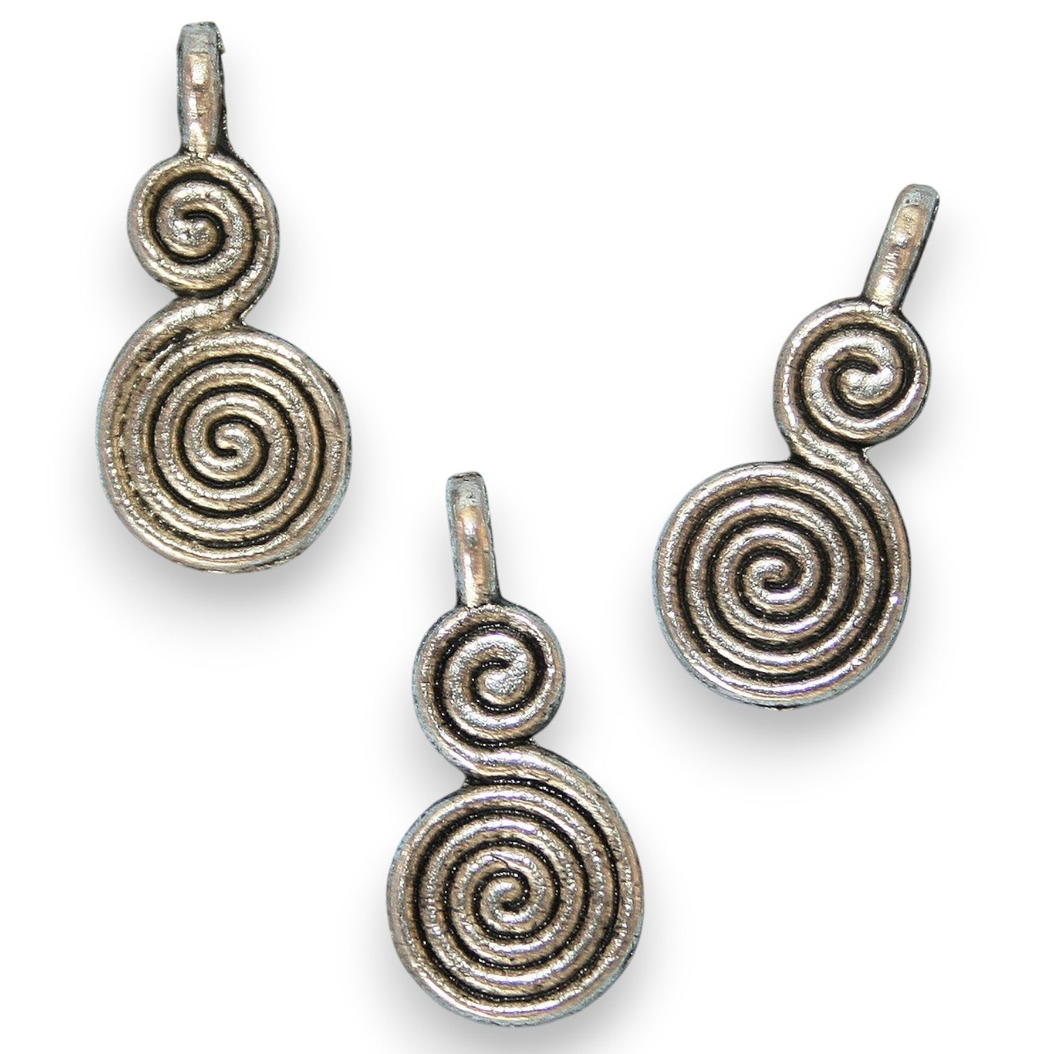 🌀 x20 Breloques Double Spirale – Argenté vieilli – 17x8 mm