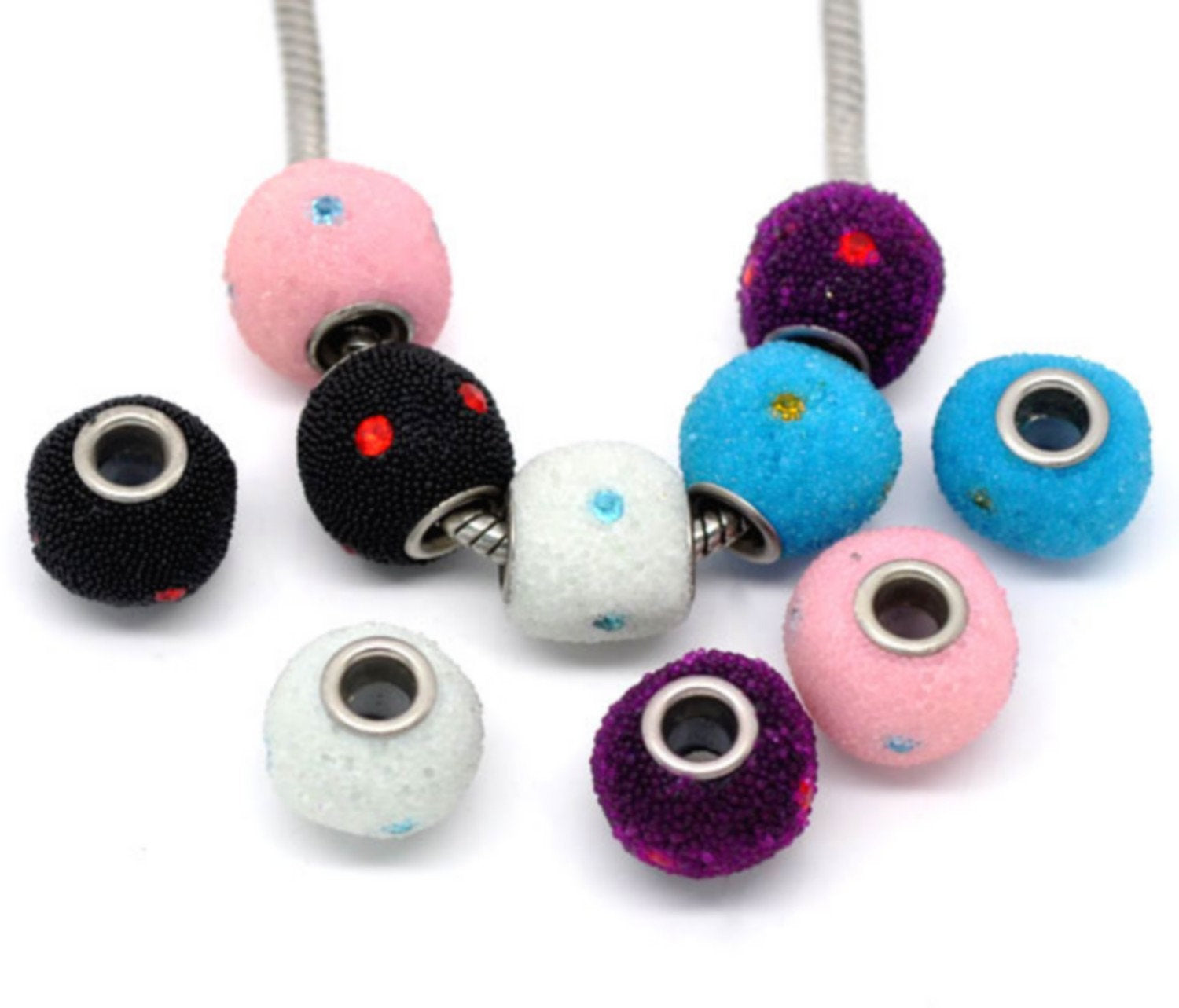 Ajoutez une touche d’éclat à vos créations avec ces 2 perles européennes à gros trou en métal argenté foncé, décorées de grains colorés et de strass scintillants. Chaque perle offre une combinaison unique pour des bijoux vibrants et pleins de personnalité !