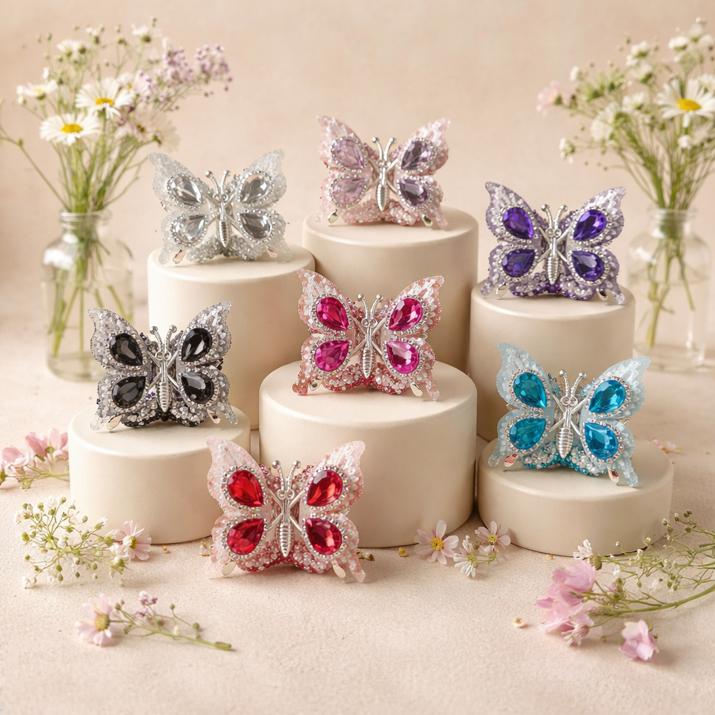 ✨ Perle Papillon XL Ailes Mobiles – Effet Sucre & Strass – 40 x 45 mm – Compatible Tiges