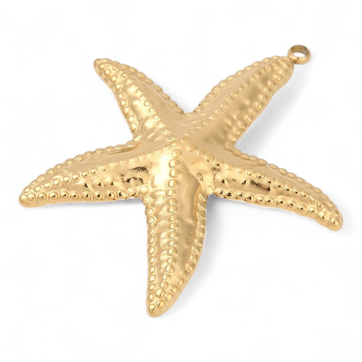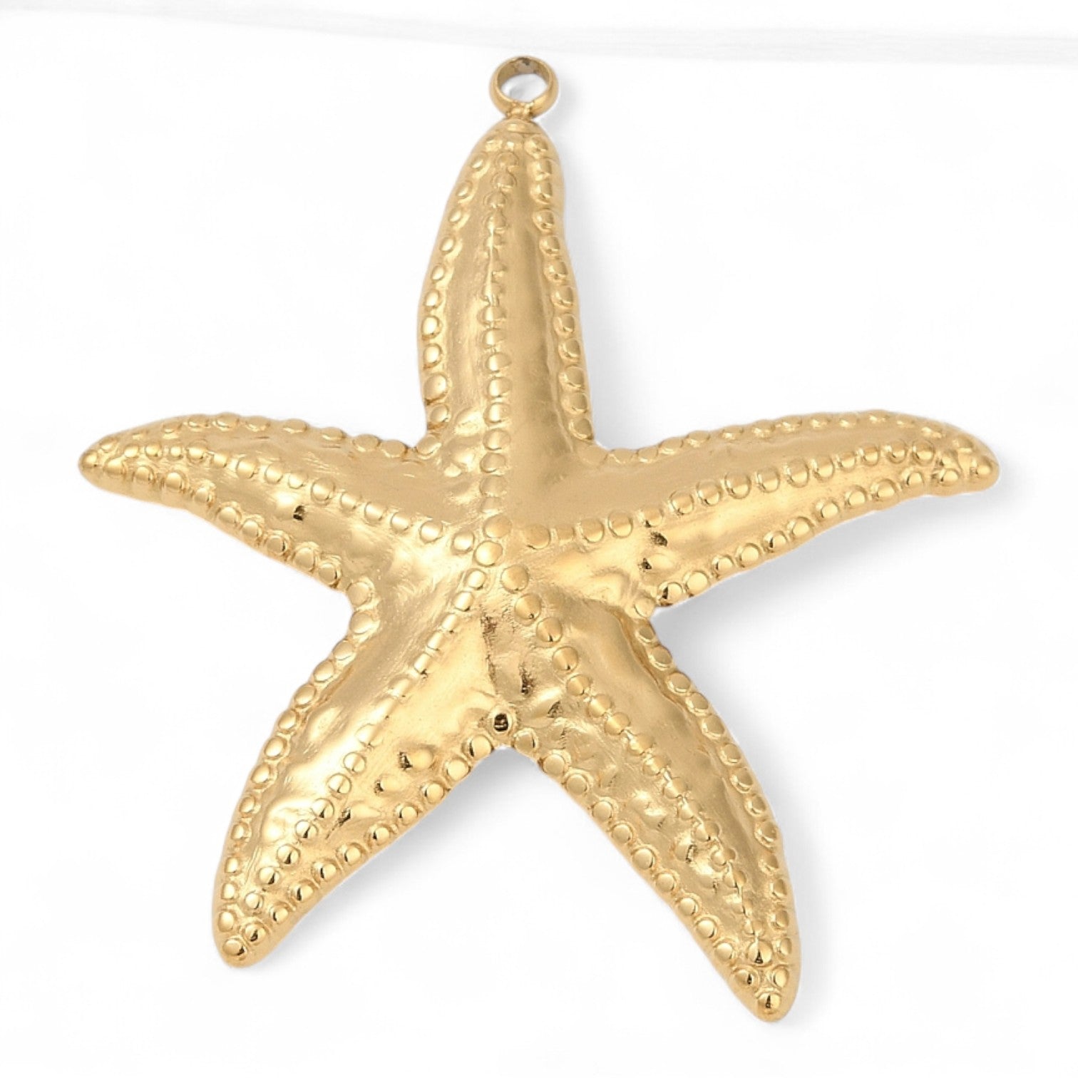 x1 Grand Pendentif Étoile de mer en acier inox 304 – Plaqué or 18K IP – 40 mm