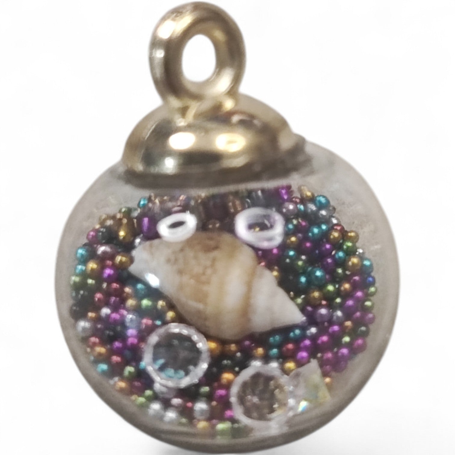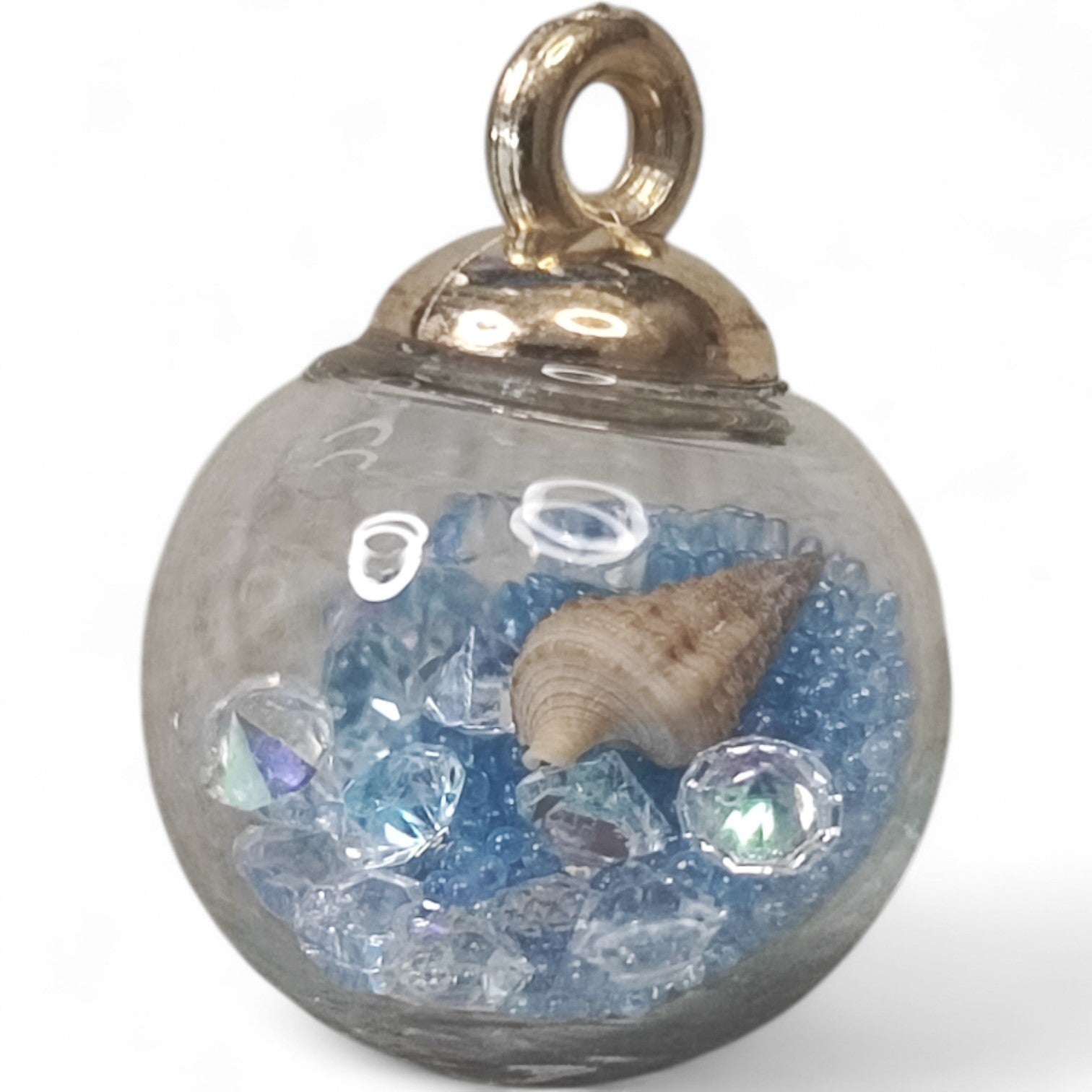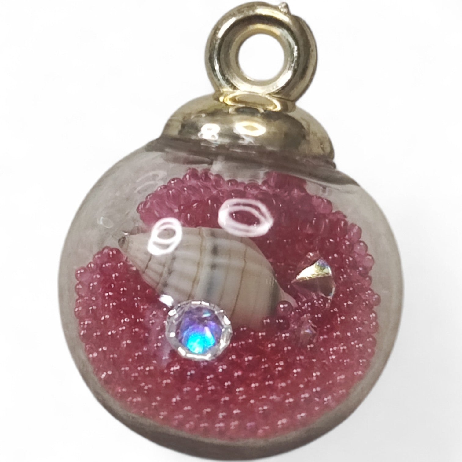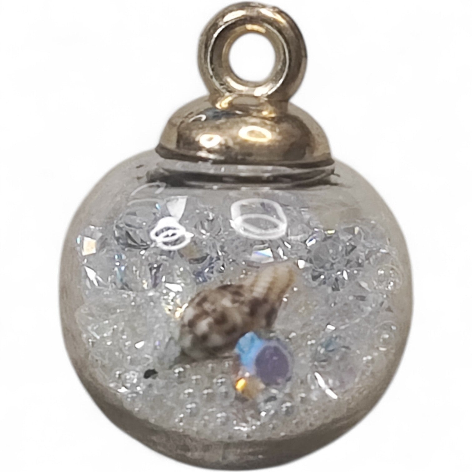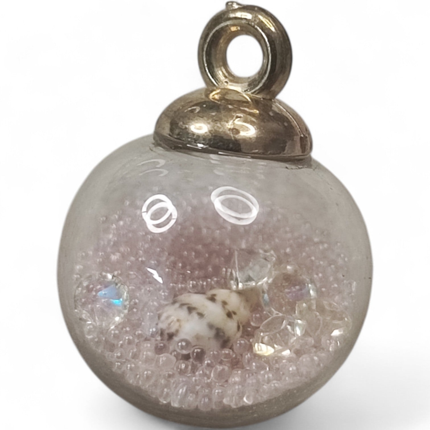 🌊 Pendentif Globe en Verre avec mini perles, strass & coquillage – 16x21 mm