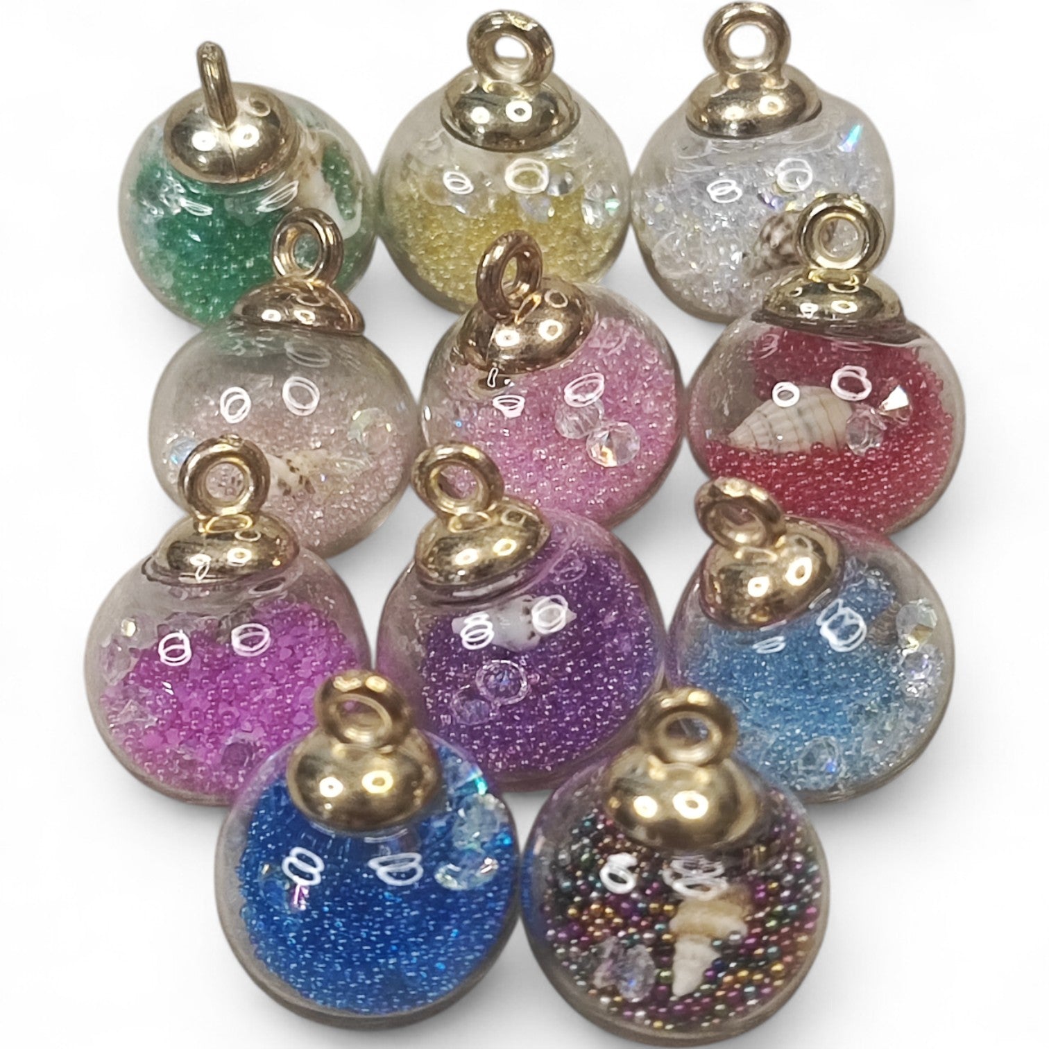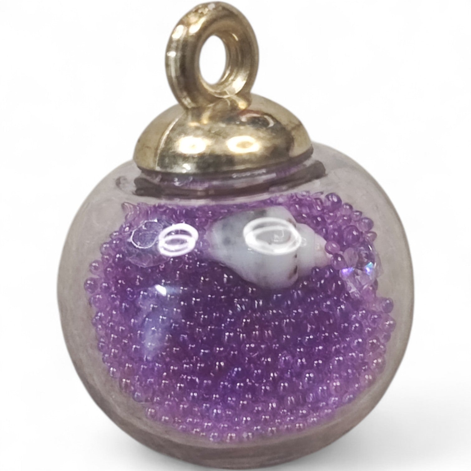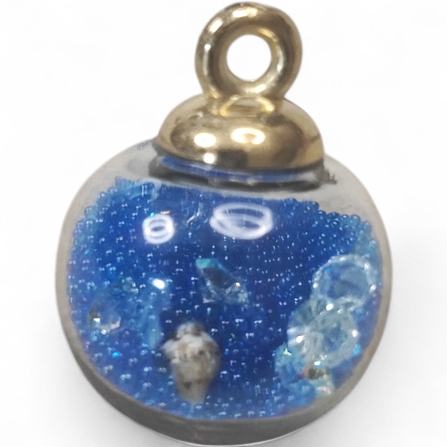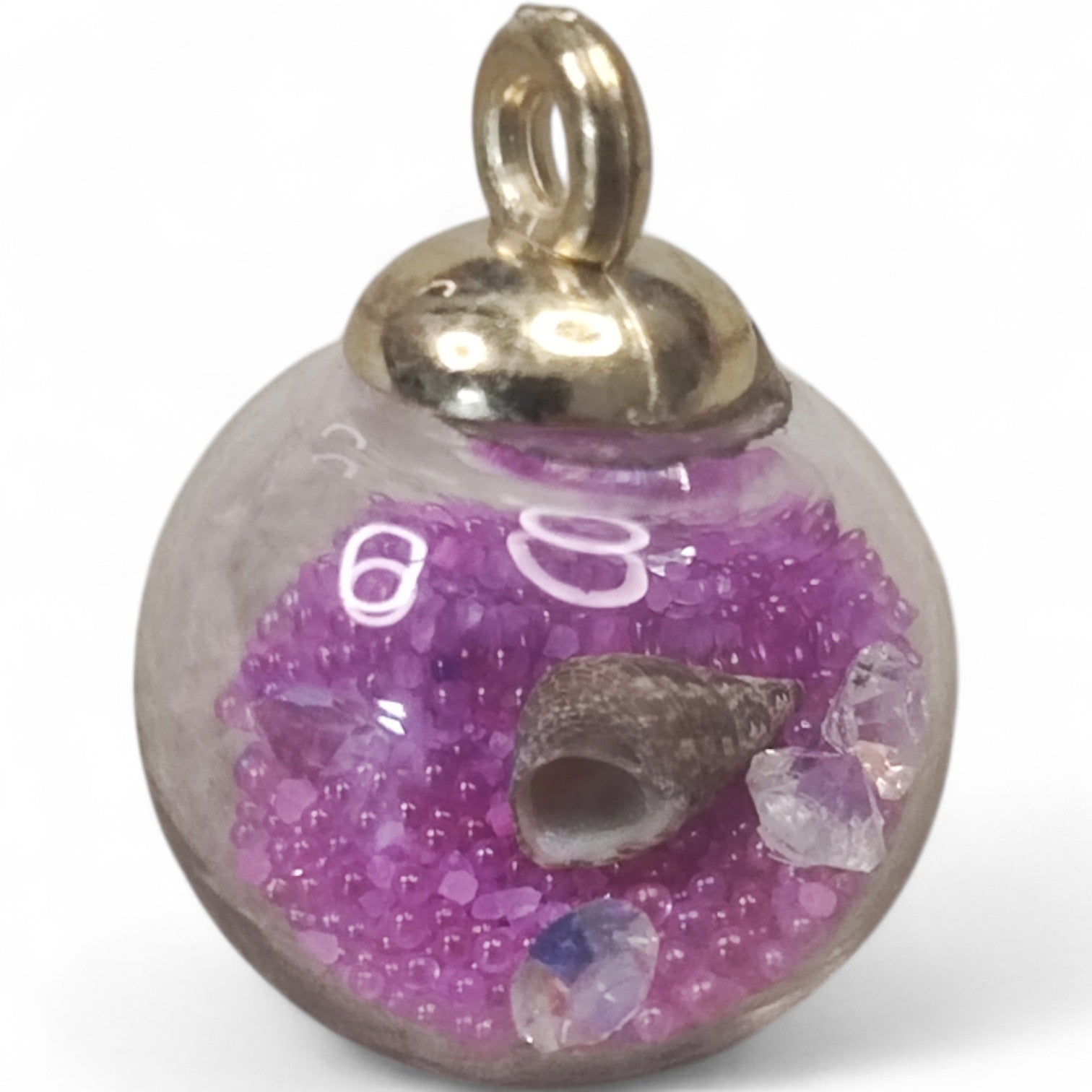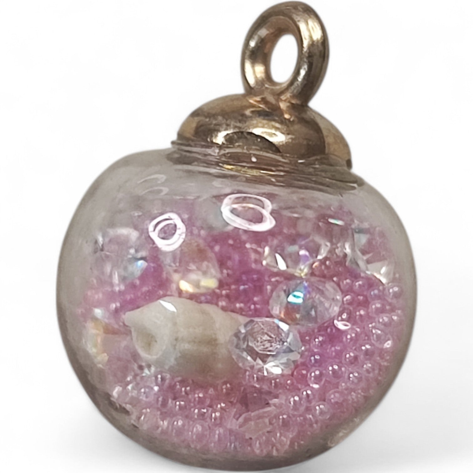 🌊 Pendentif Globe en Verre avec mini perles, strass & coquillage – 16x21 mm