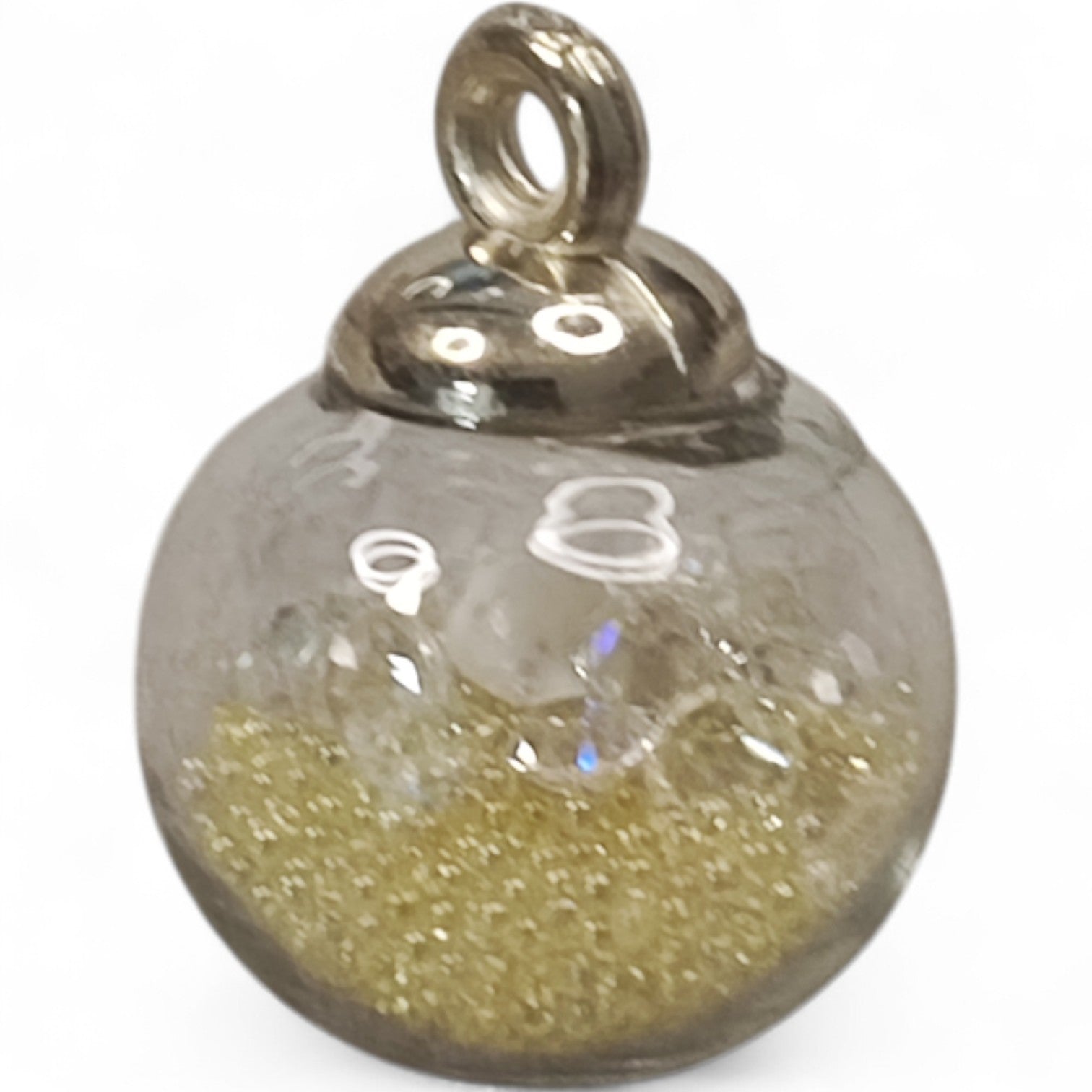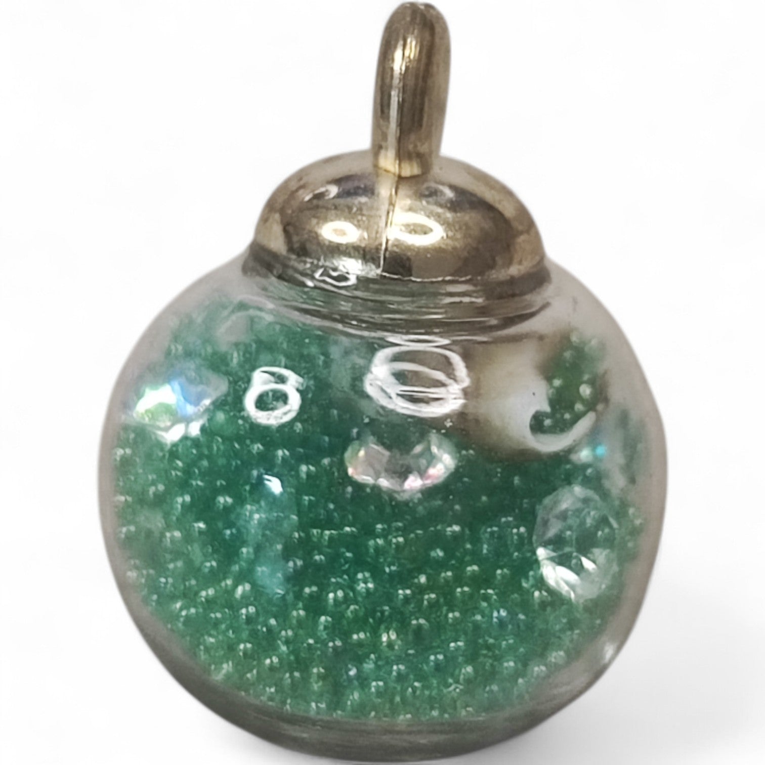 x1 Pendentif Globe en Verre avec mini perles, strass & coquillage – 16x21 mm