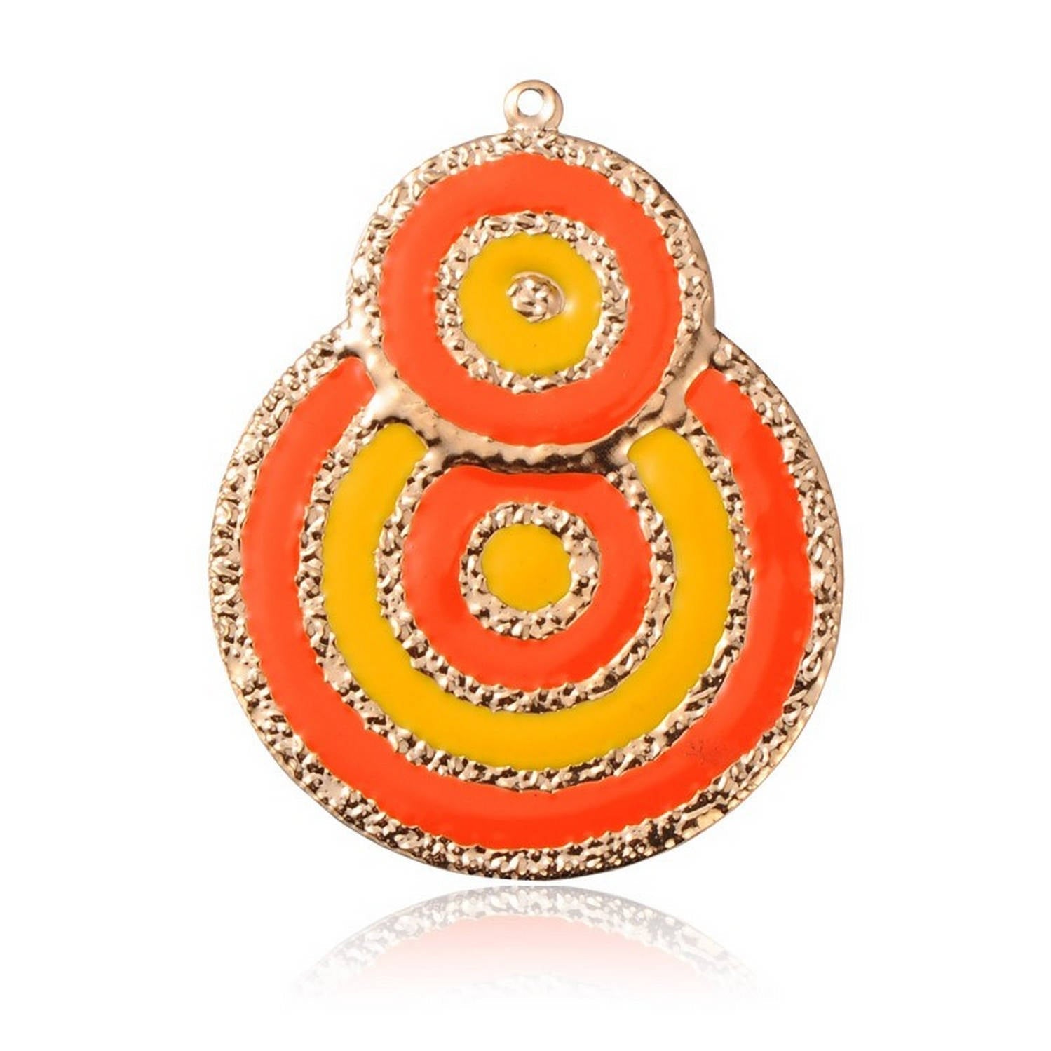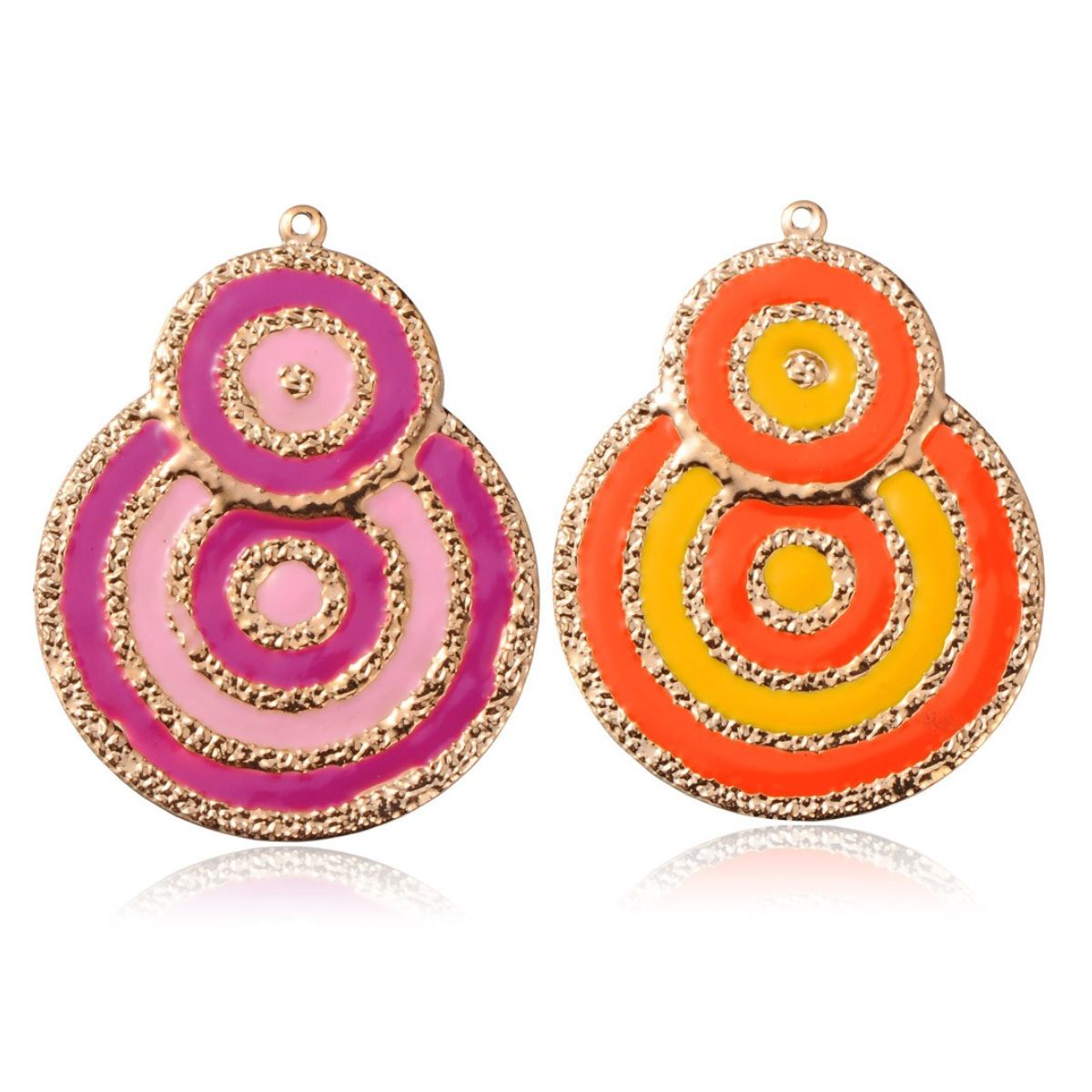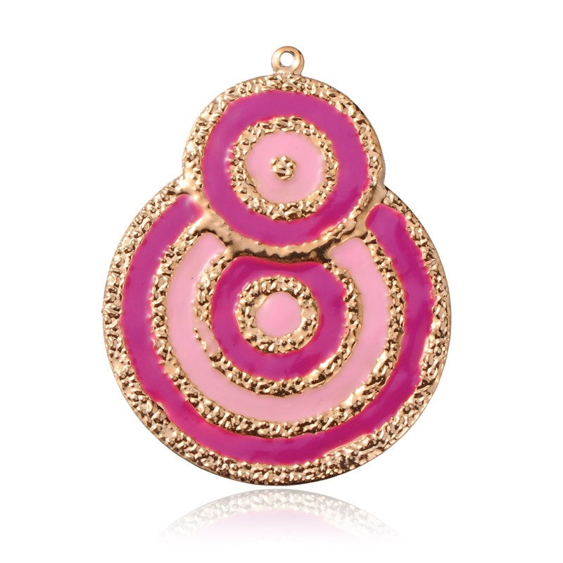 x1 Pendentif rond plats ou calebasse – Fer émaillé doré – Rose foncé ou Orange – 48x63mm