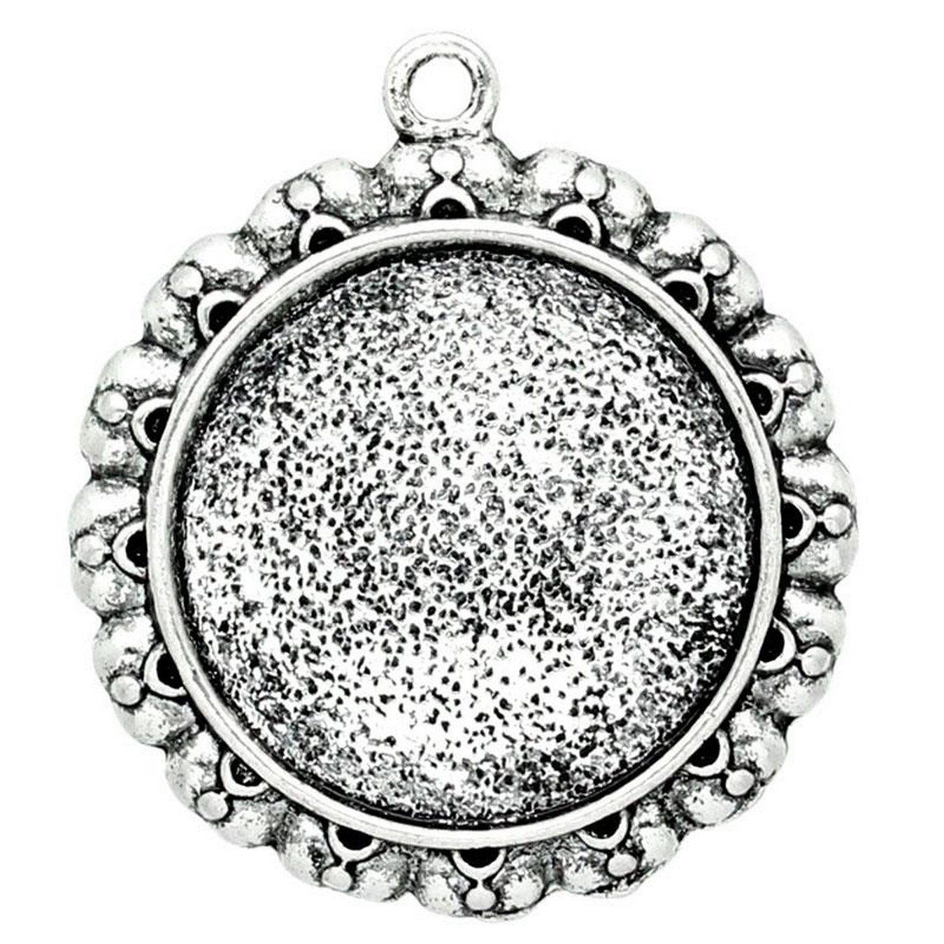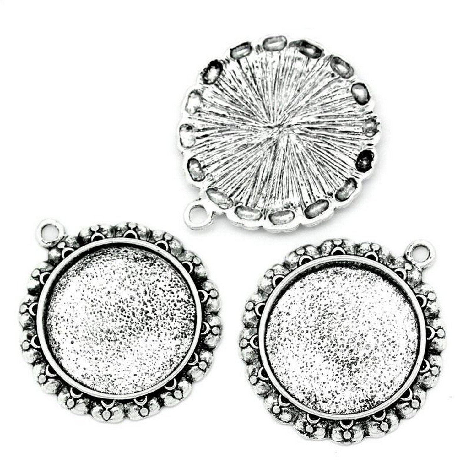 🖼️ Pendentif support cabochon 20 mm – Métal argenté vieilli
