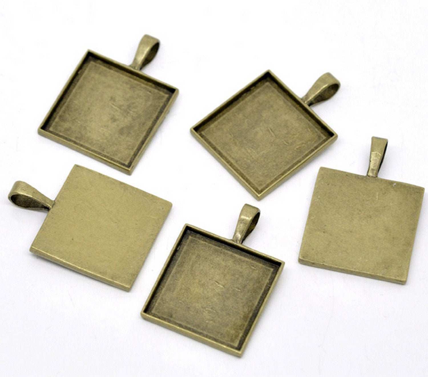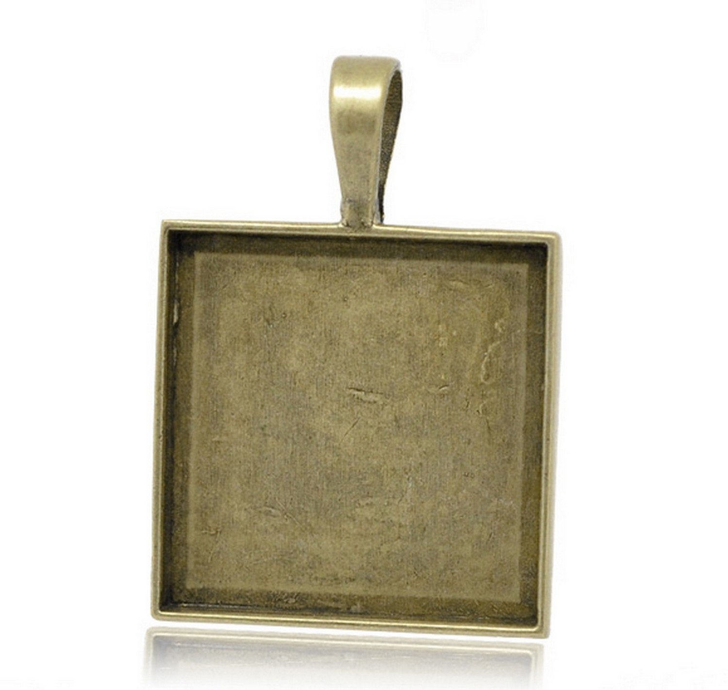 x1 Pendentif Support Cabochon Carré – 25 mm en Métal Bronze