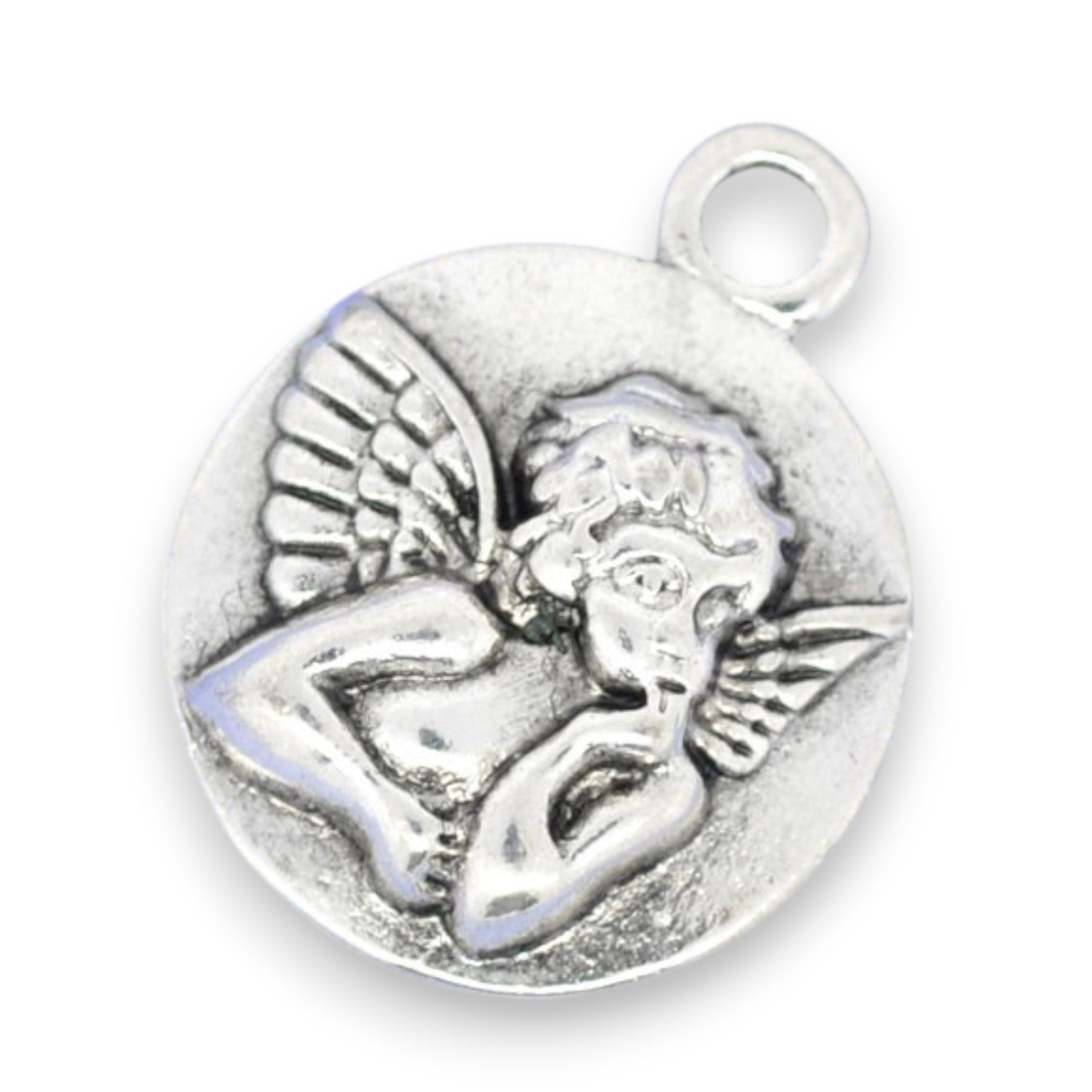 Ces pendentifs en forme de médaillon orné d’un ange apportent une note spirituelle et symbolique à vos créations. Leur finition argentée foncée accentue leur style vintage, idéal pour des bijoux à message.
