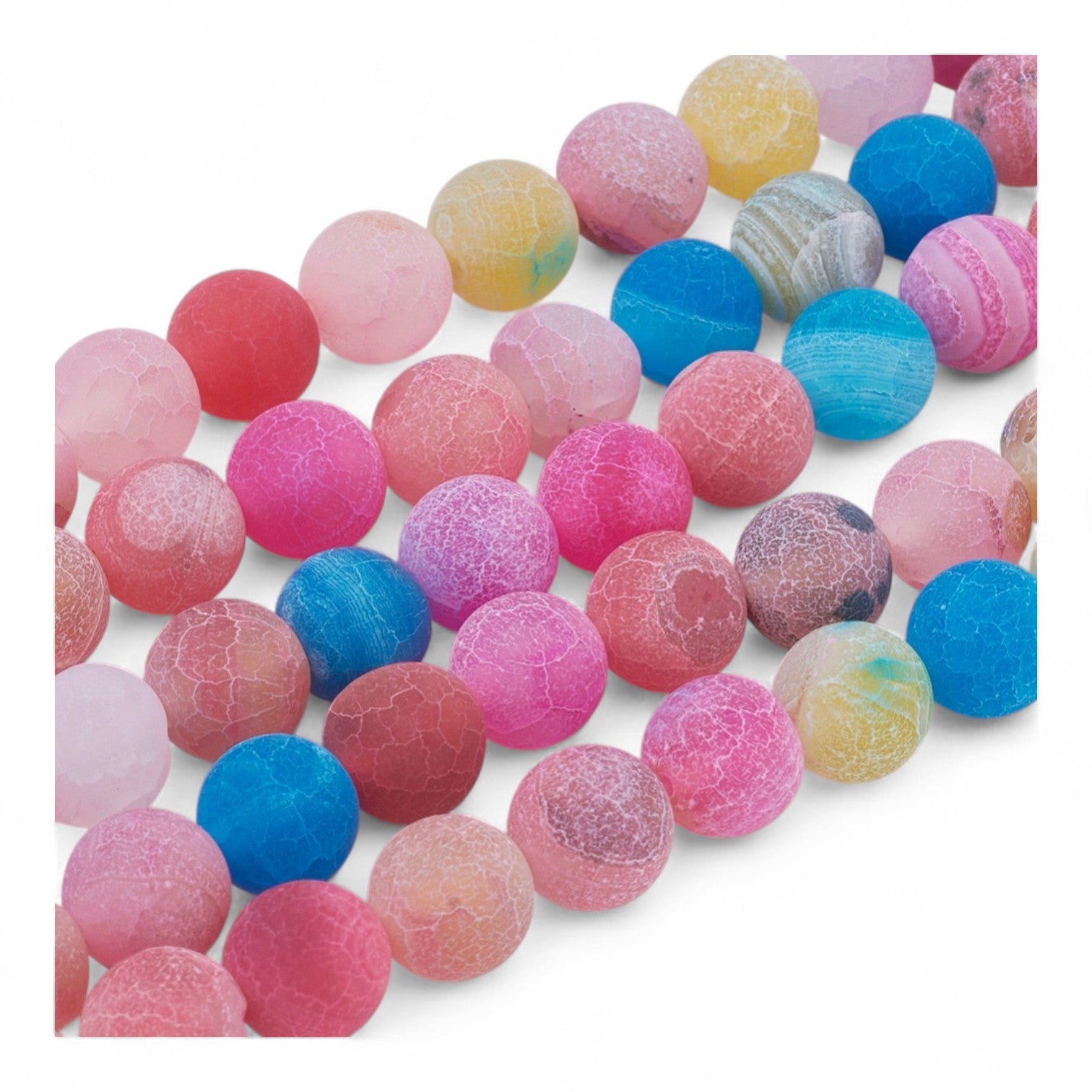 Perles d’Agate Efflorescente Givrées – Couleurs Assorties