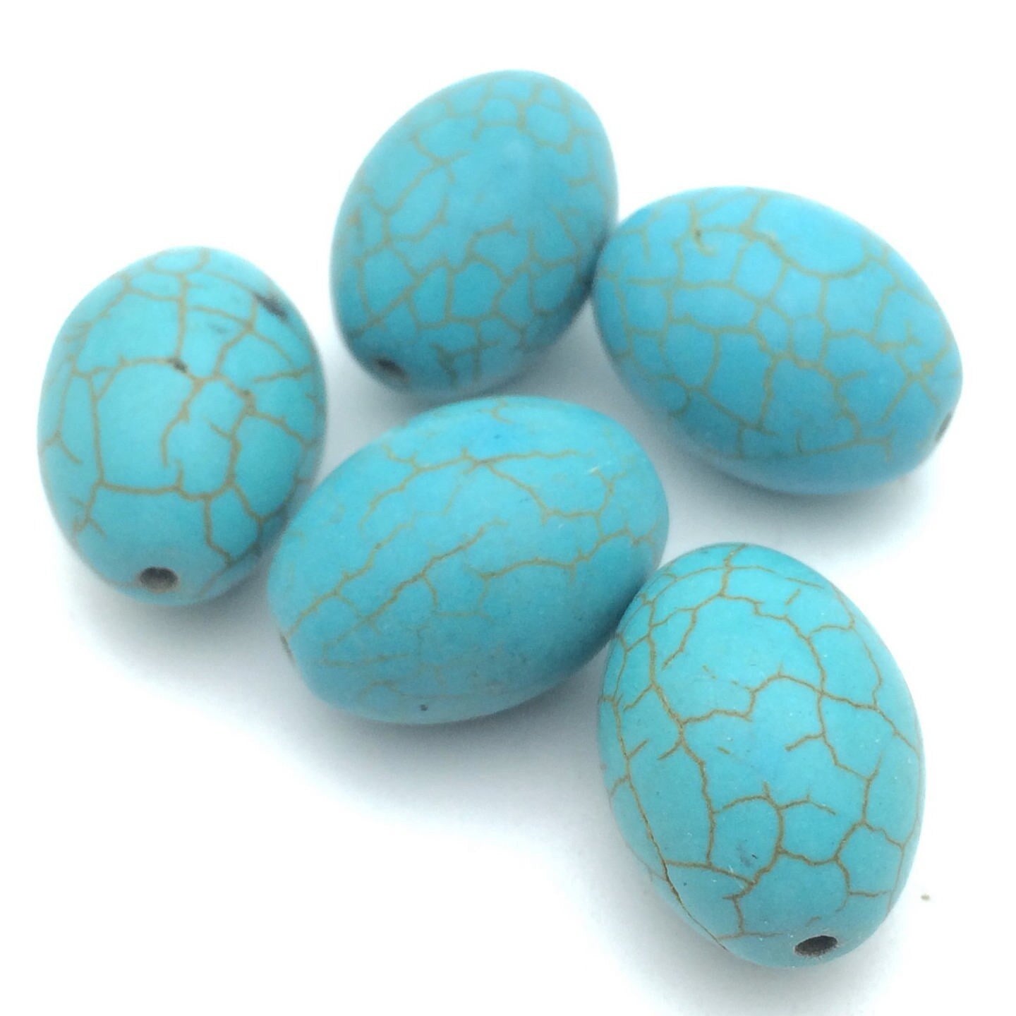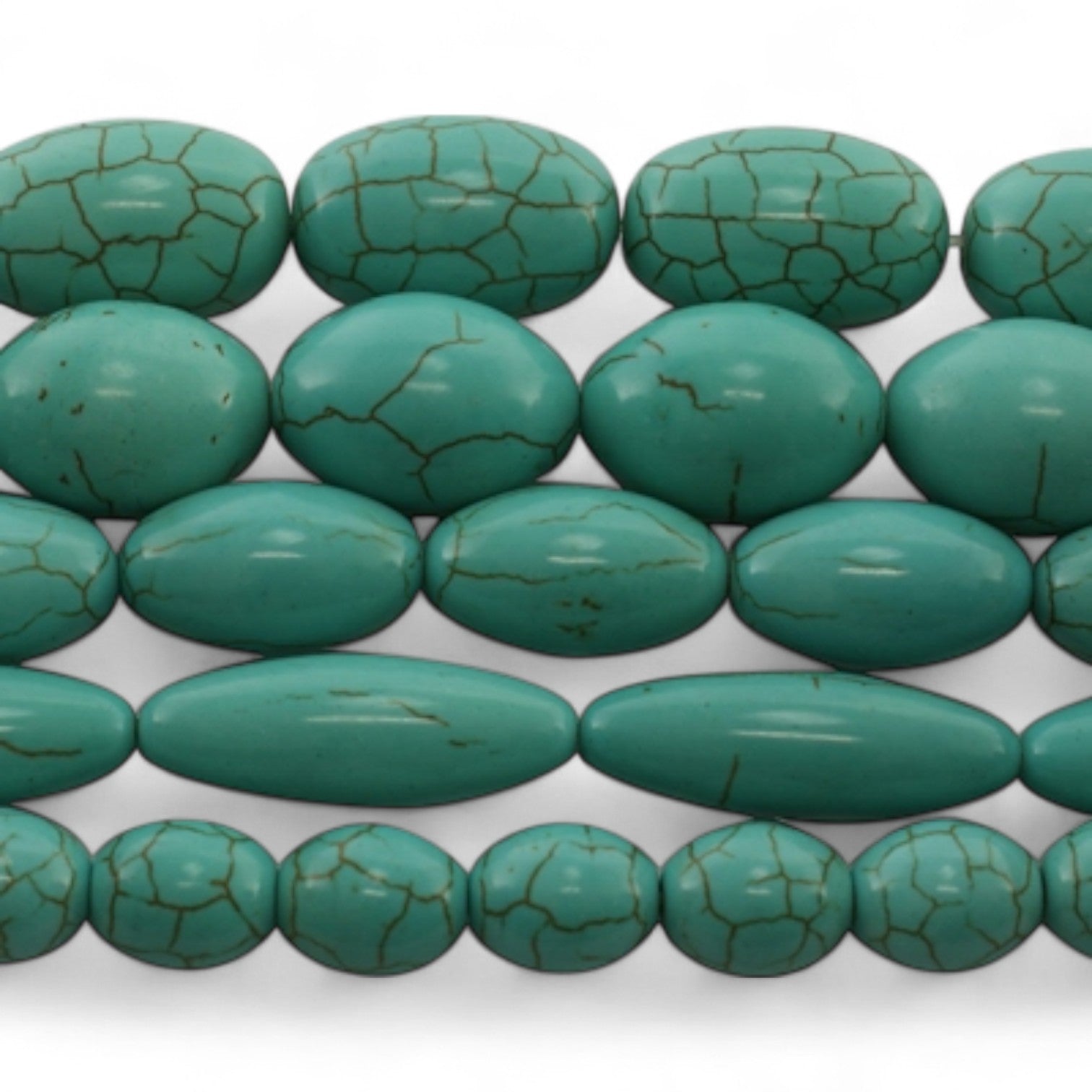 x2 Perles Synthétiques Howlite Turquoise – Ovale – Tailles au Choix