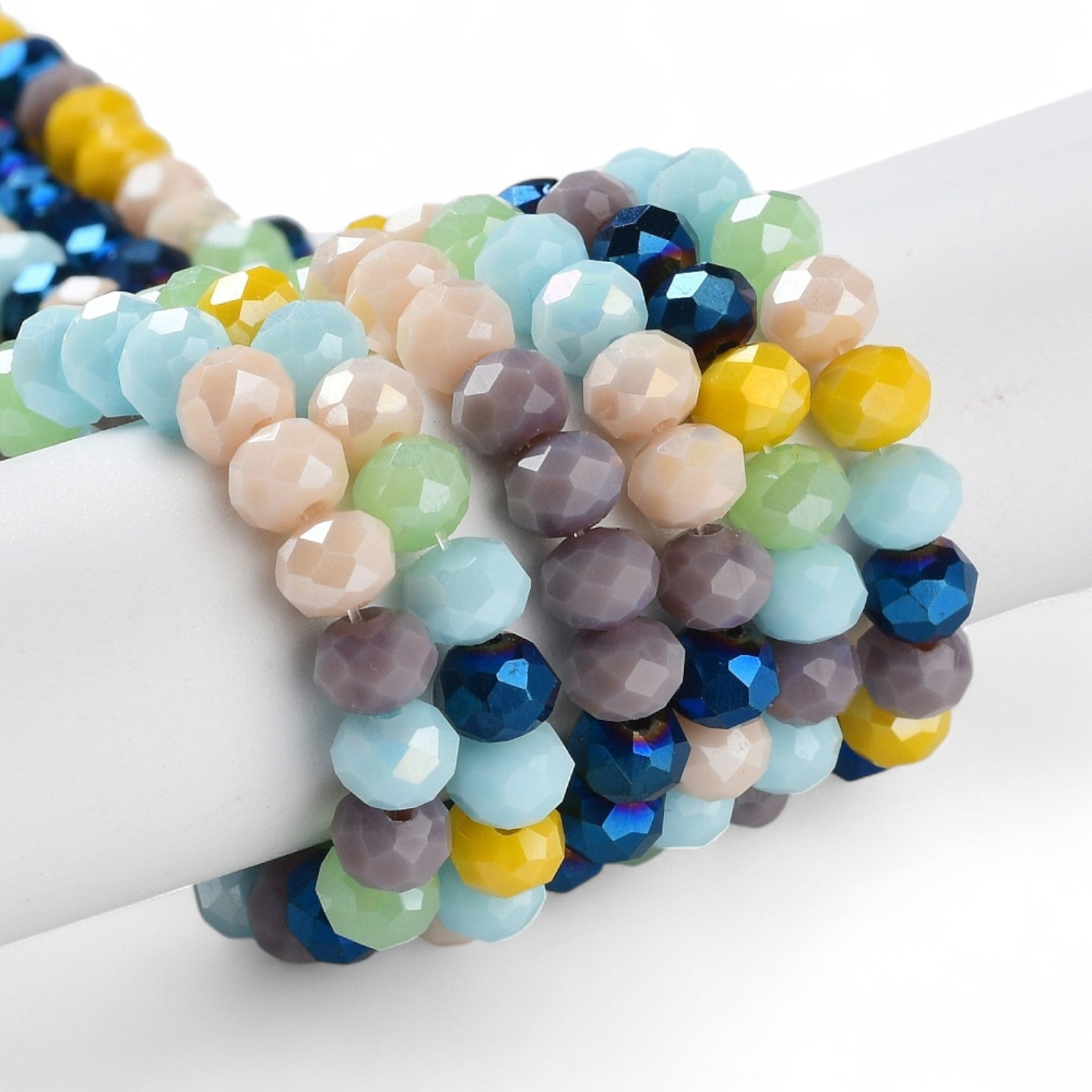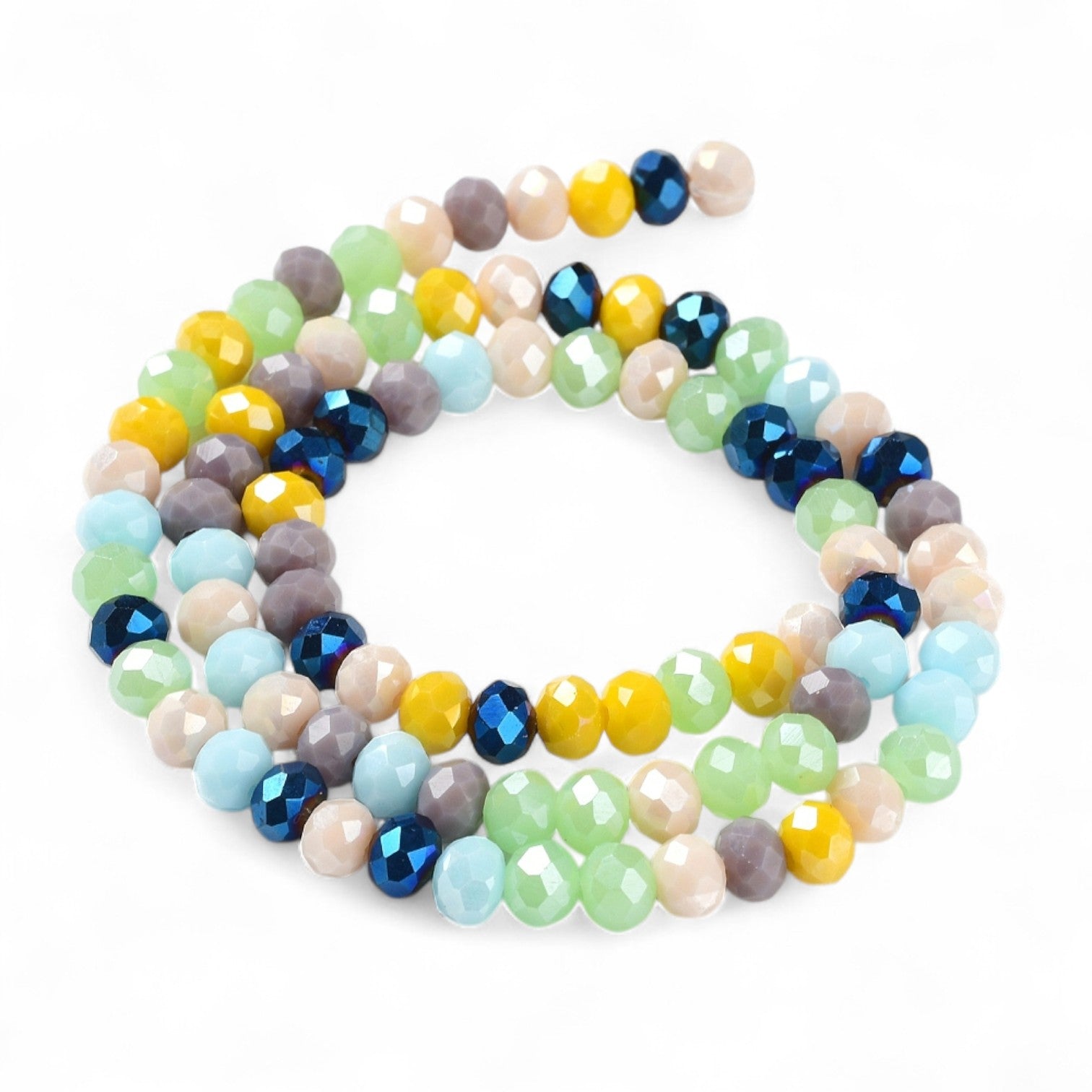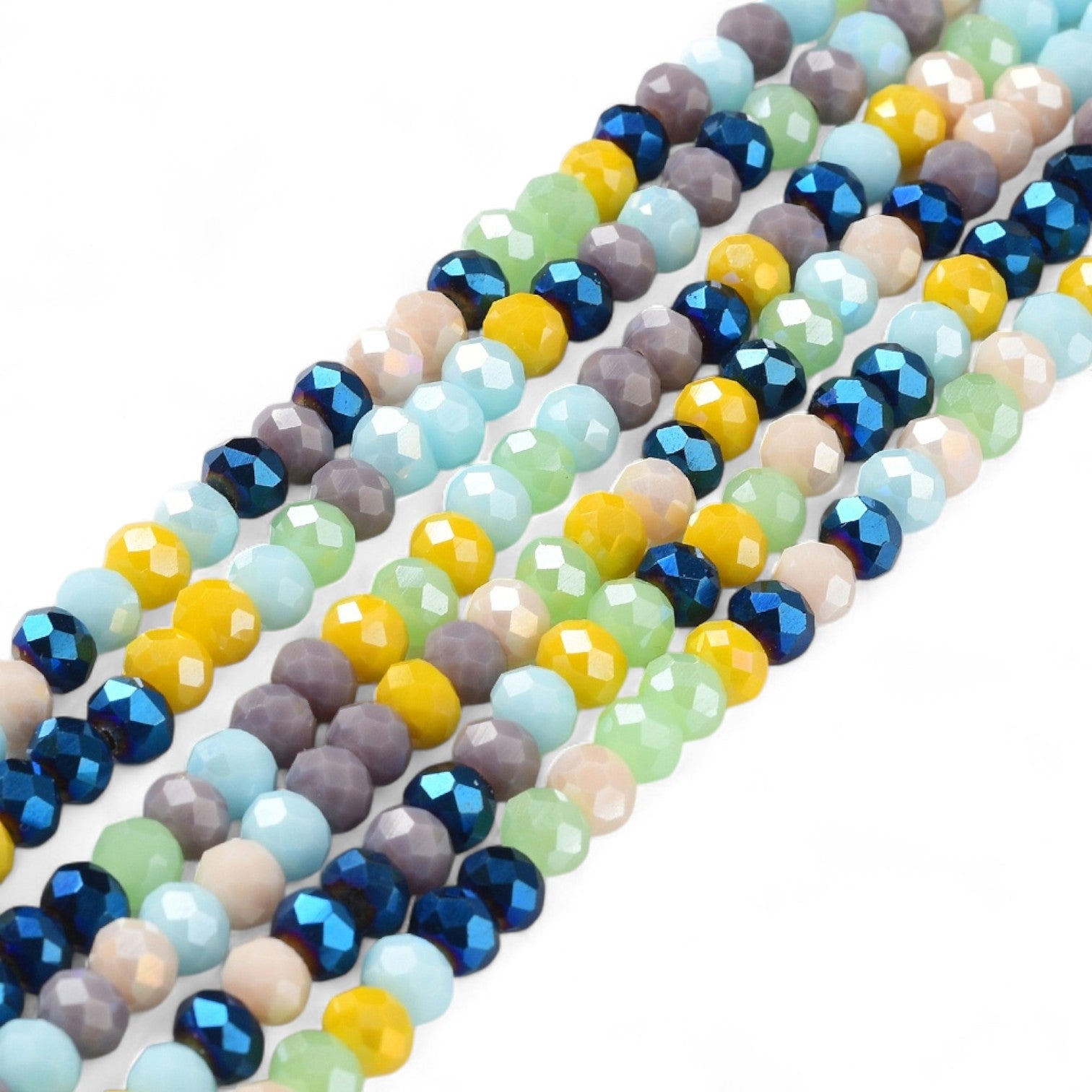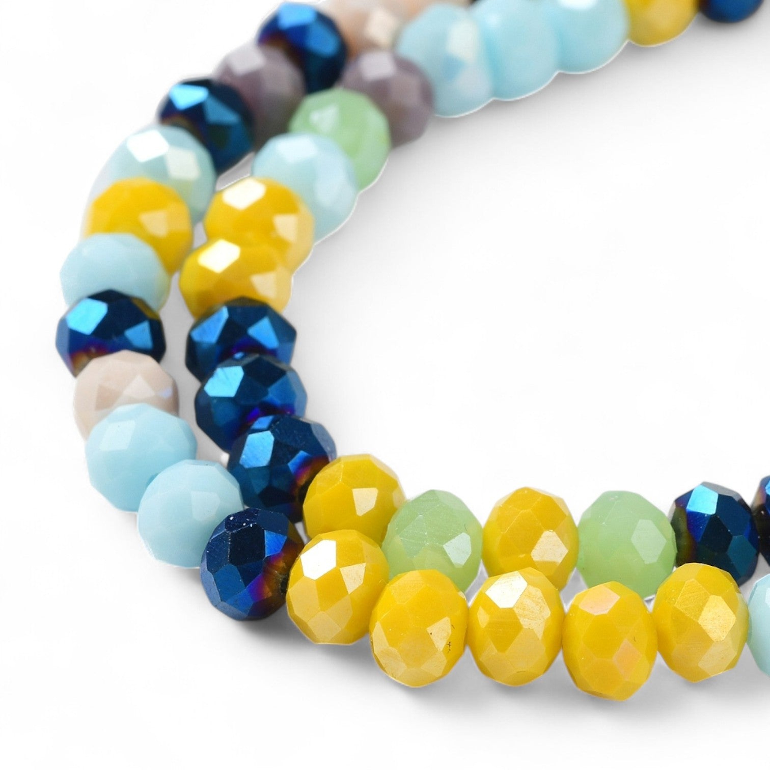 Perles en Verre à Facettes – Rondelles Bleu et Jaune Opaque – 6x5 mm