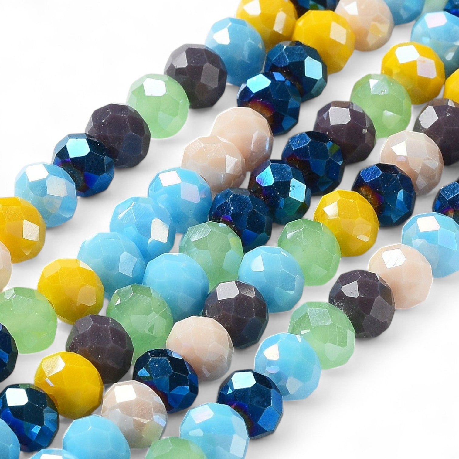 Perles en Verre à Facettes – Rondelles Multicolore Bleu et Jaune – 8x6 mm