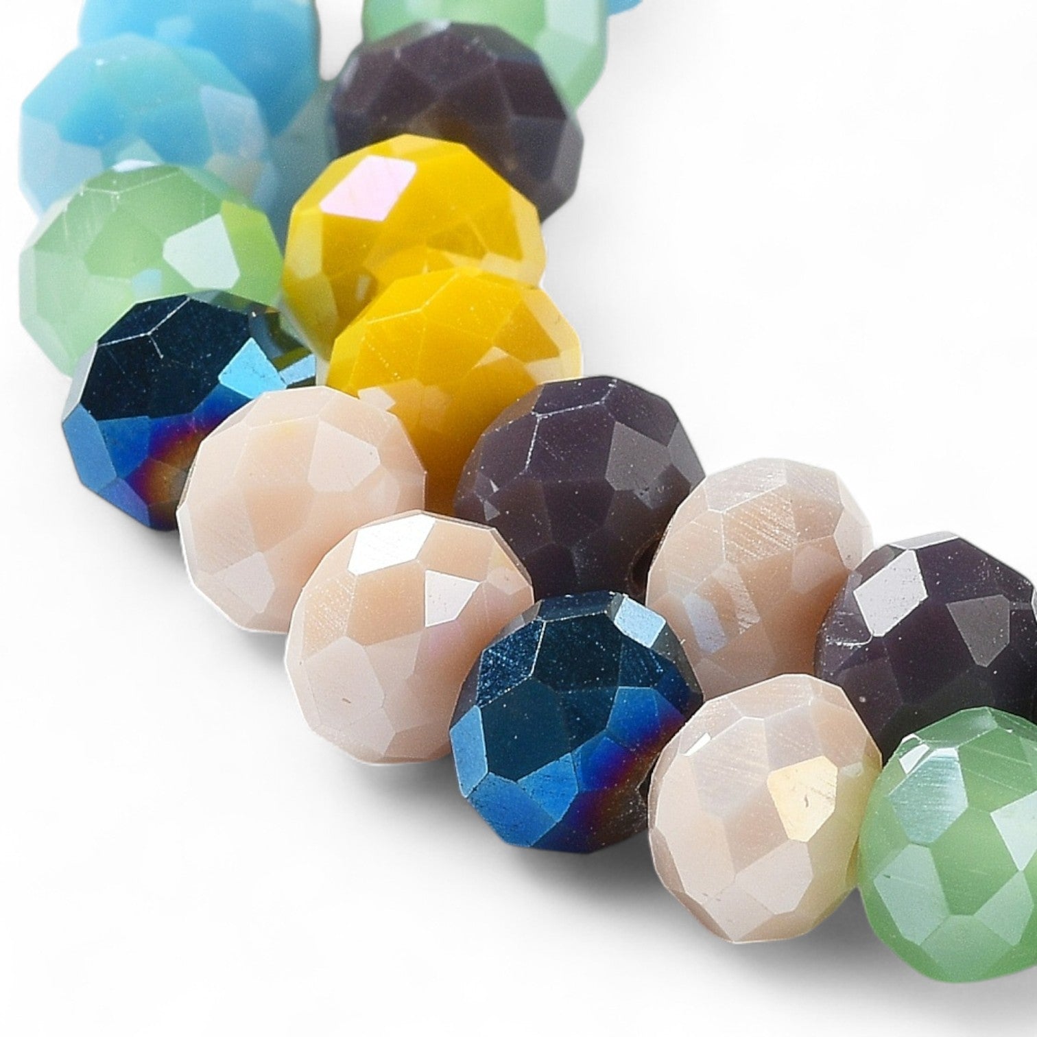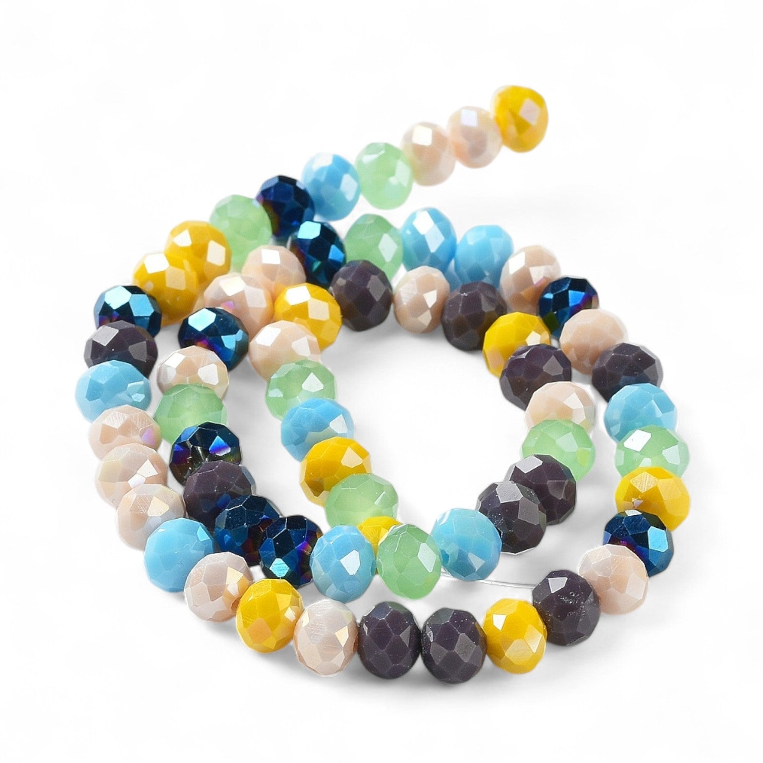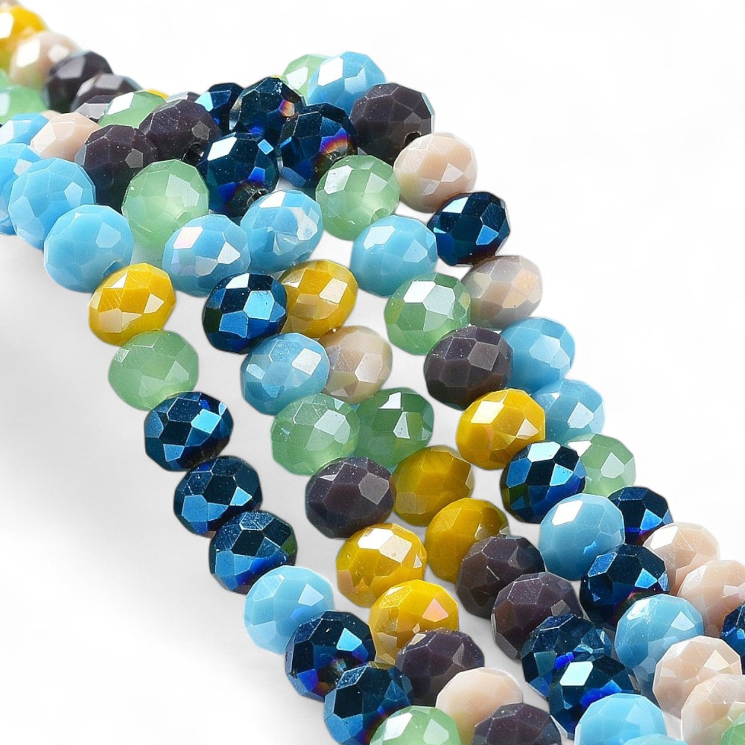 ✨ Perles en Verre à Facettes – Rondelles Multicolore Bleu et Jaune – 8x6 mm