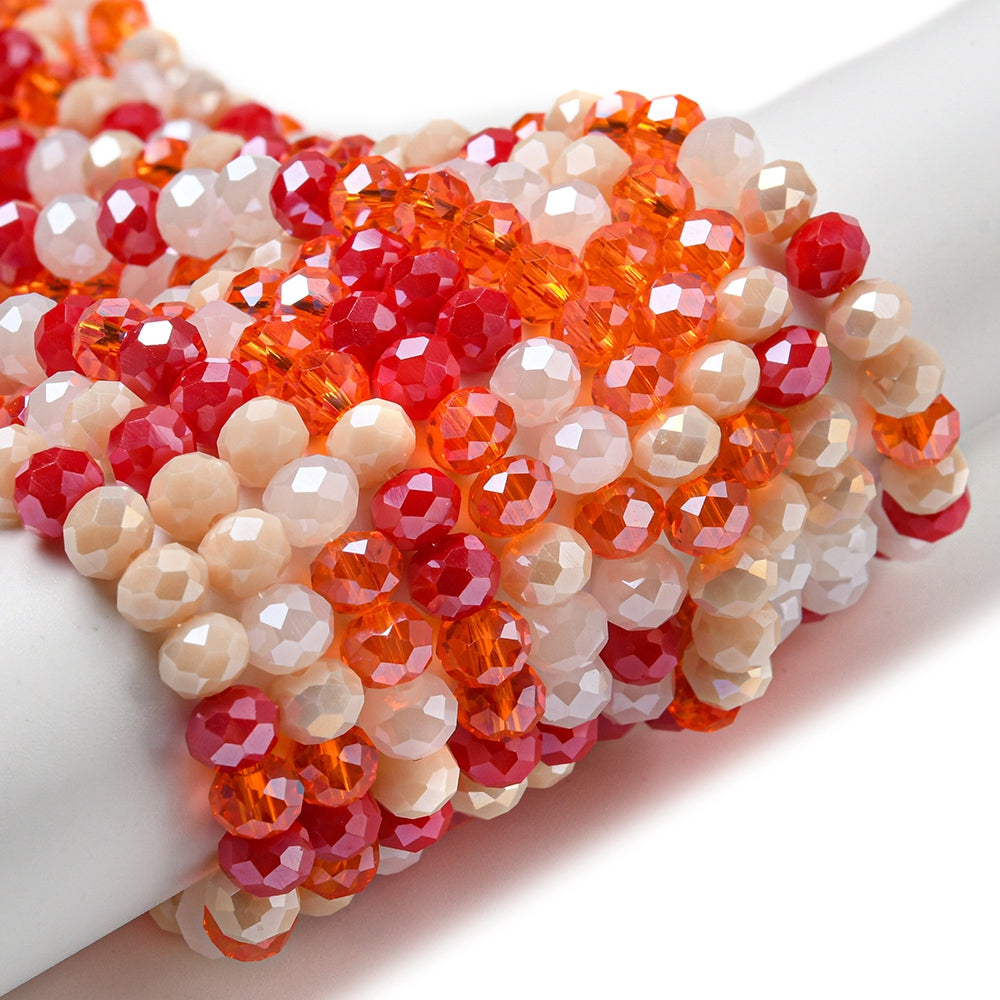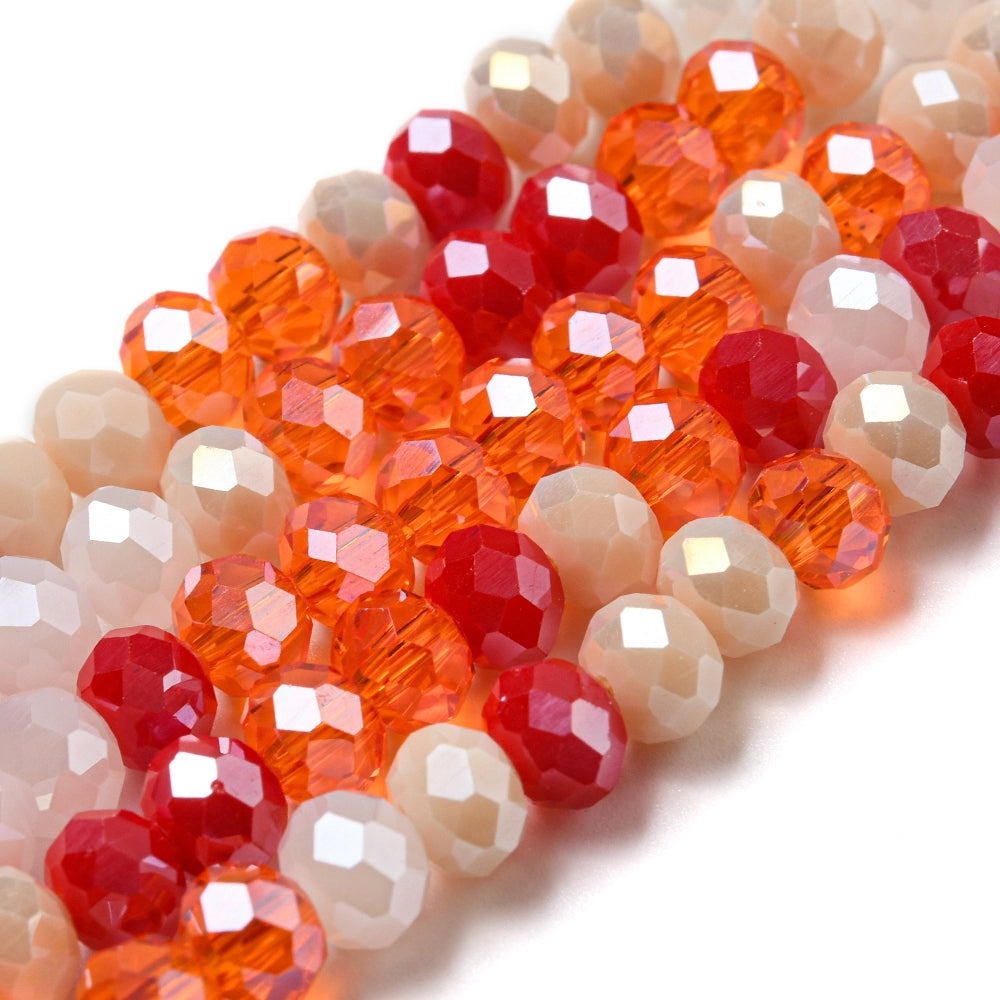 Perles en Verre à Facettes – Rondelles Orange et Blanc – 6x5 mm