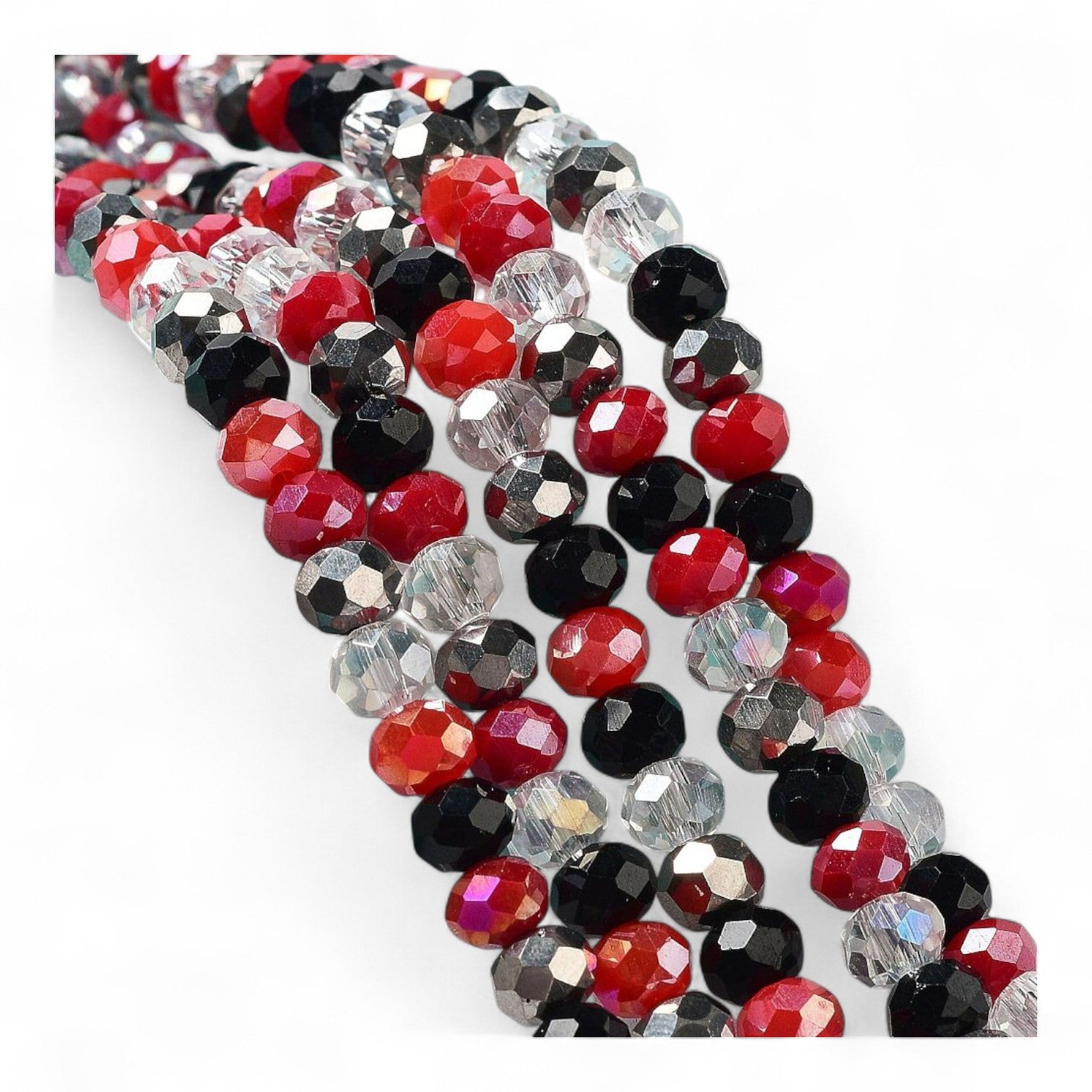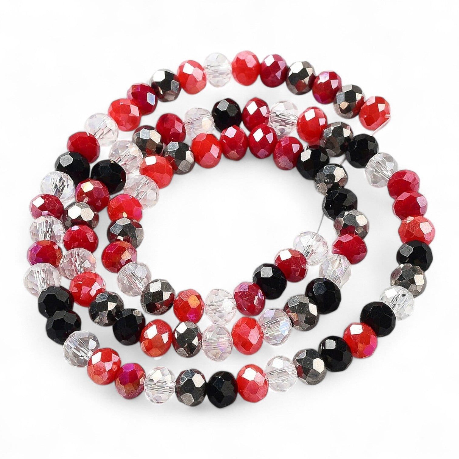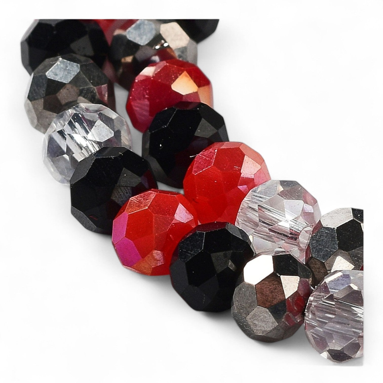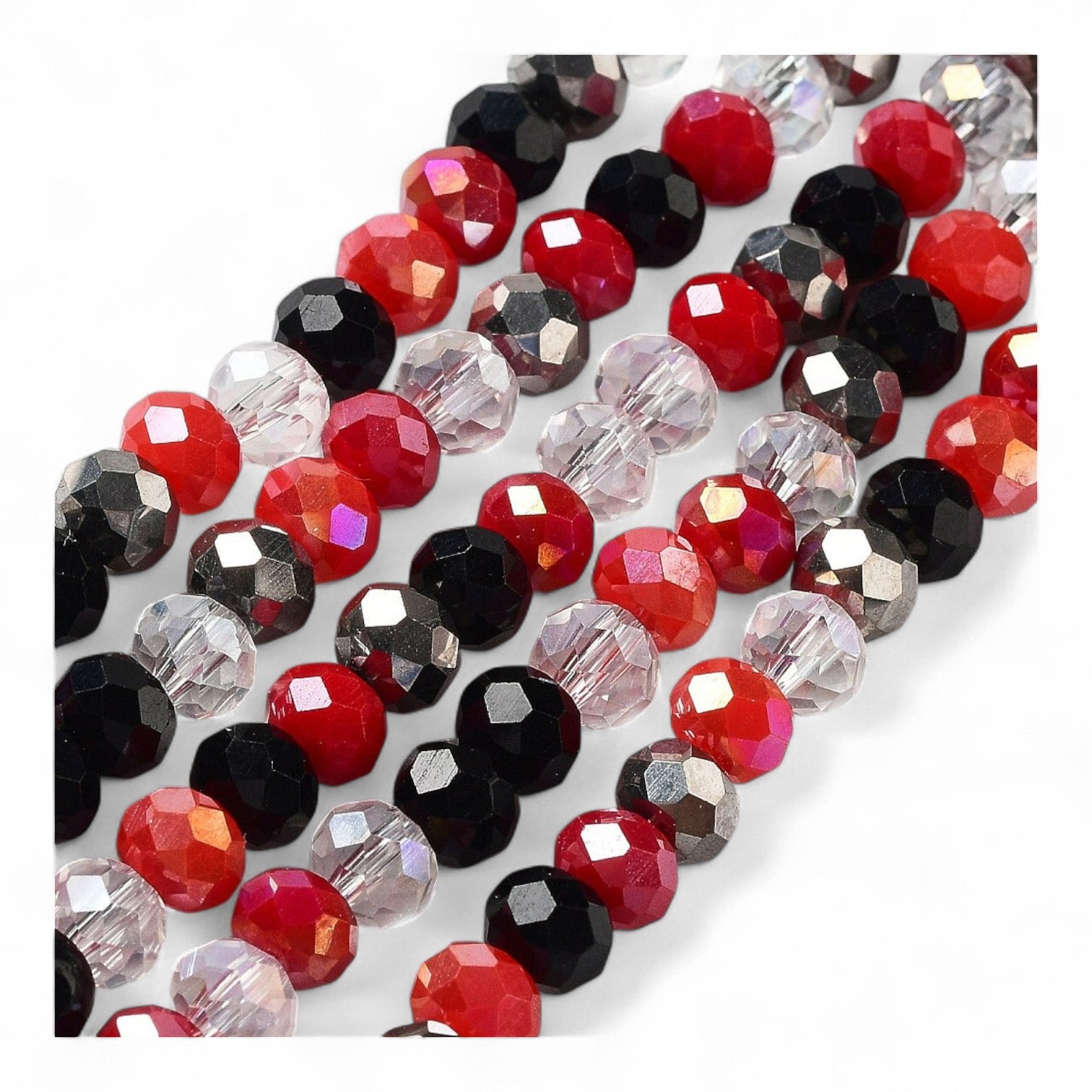 Perles en Verre à Facettes – Rondelles Rouge, Noir et transparent – 6x5 mm