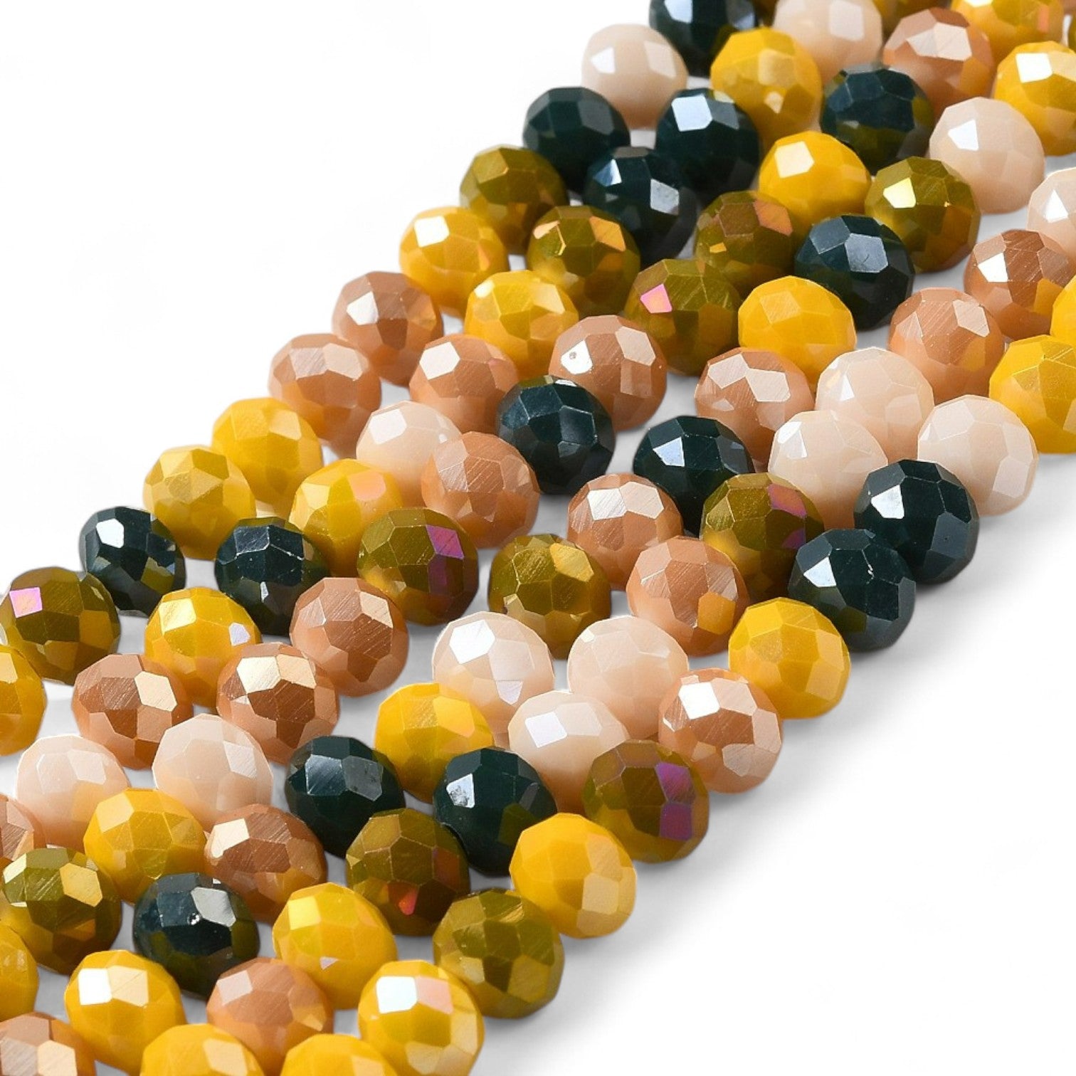 ✨ Perles en Verre à Facettes – Rondelles Vert et Jaune – 8x6 mm