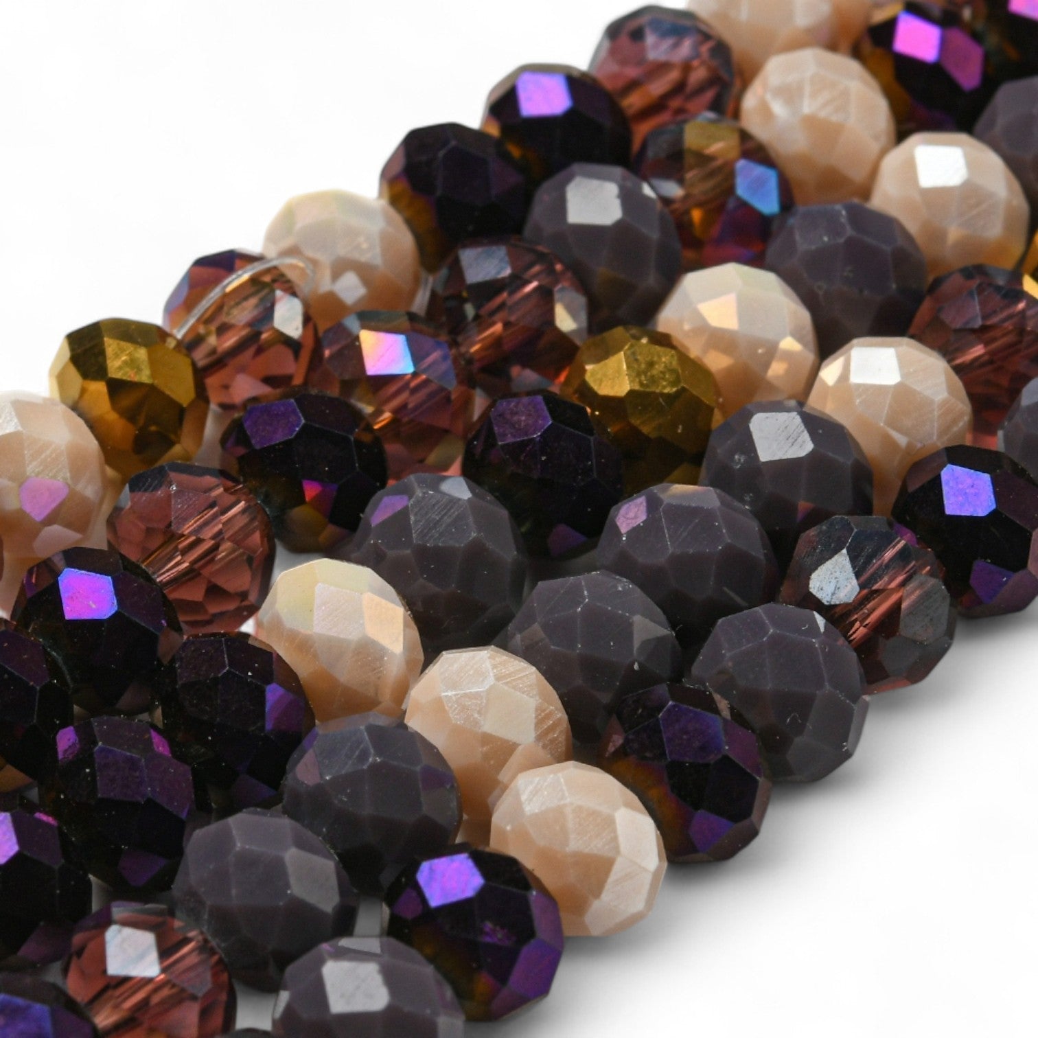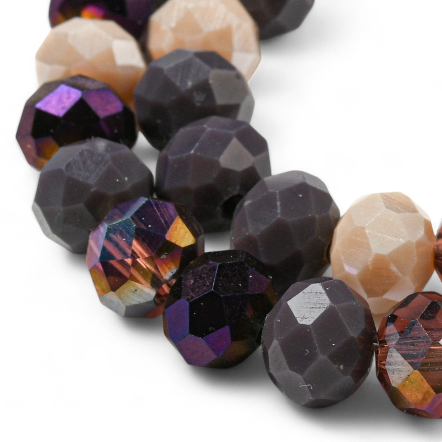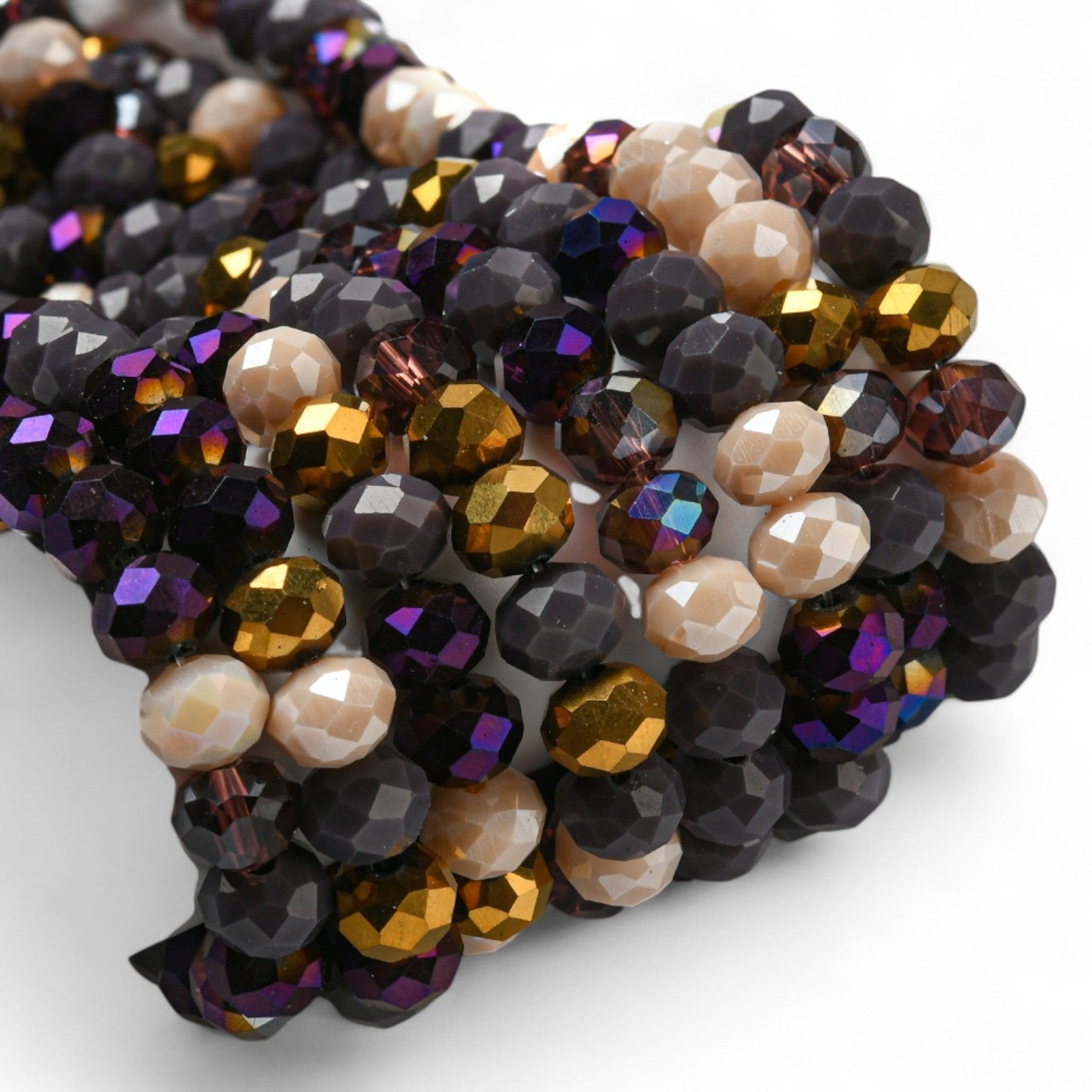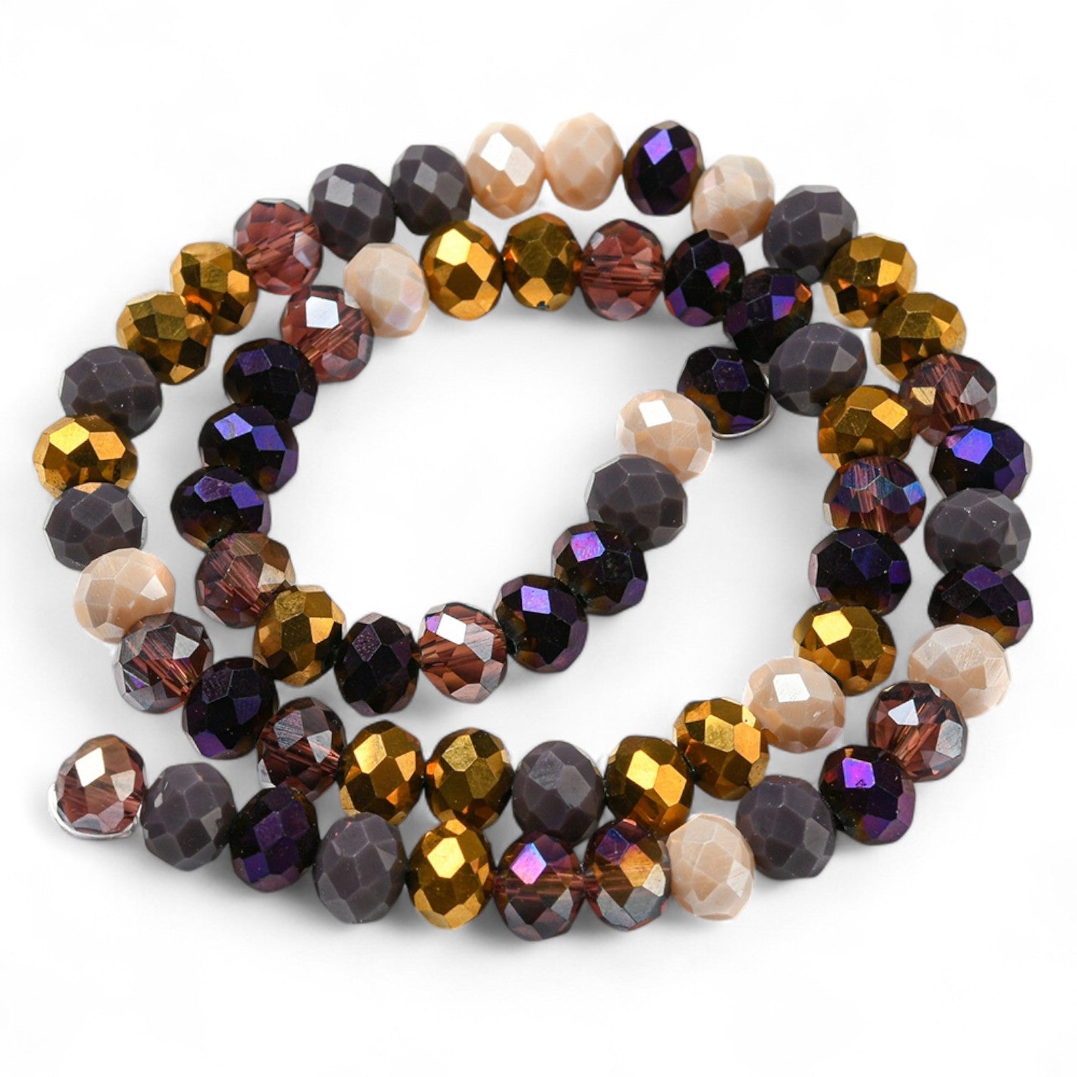 ✨ Perles en Verre à Facettes – Rondelles Violet et Doré – 8x6 mm