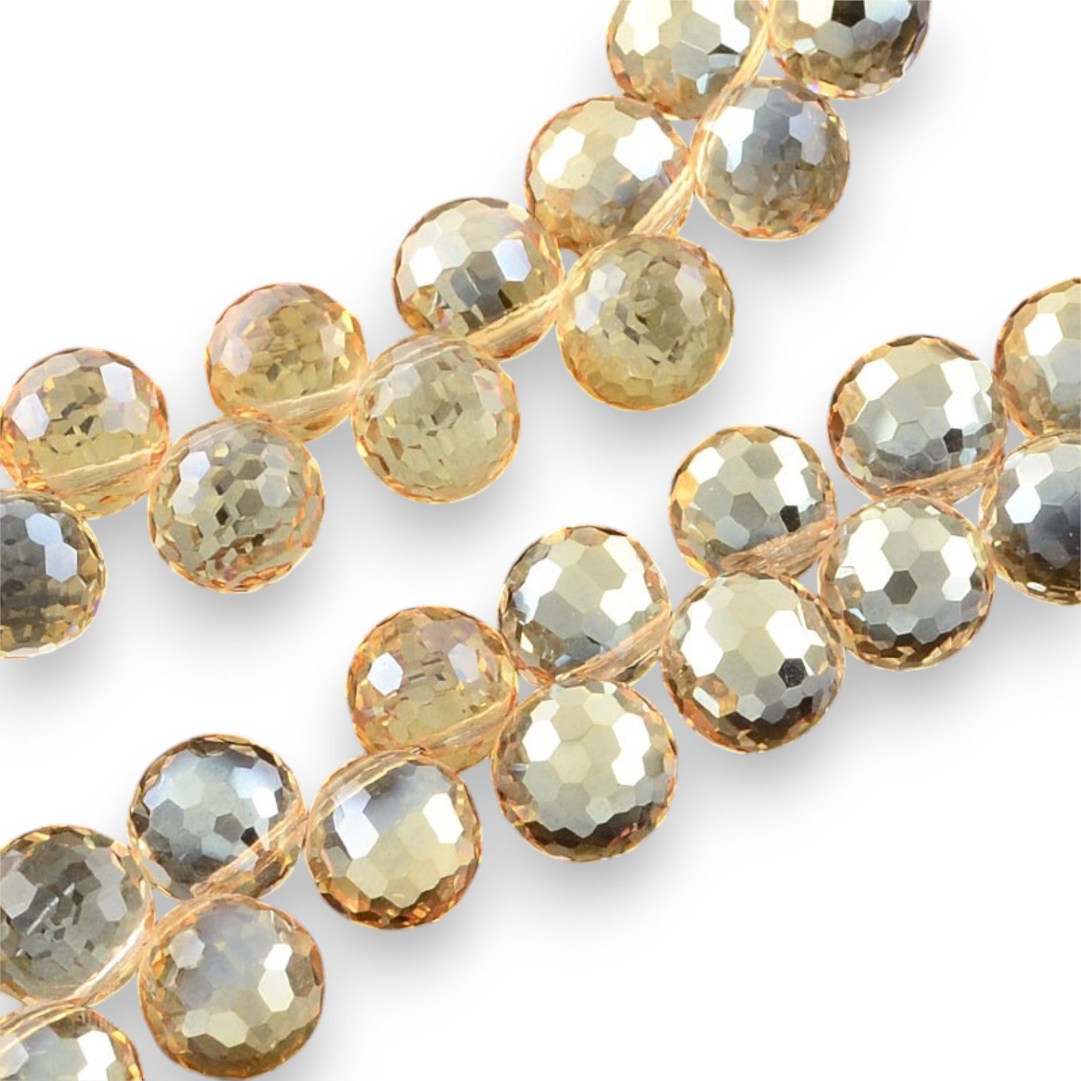 Magnifiques perles en verre électrolytique semi-plaquées, aux reflets arc-en-ciel subtils et multiples facettes pour un éclat irrésistible. Trou non centré.