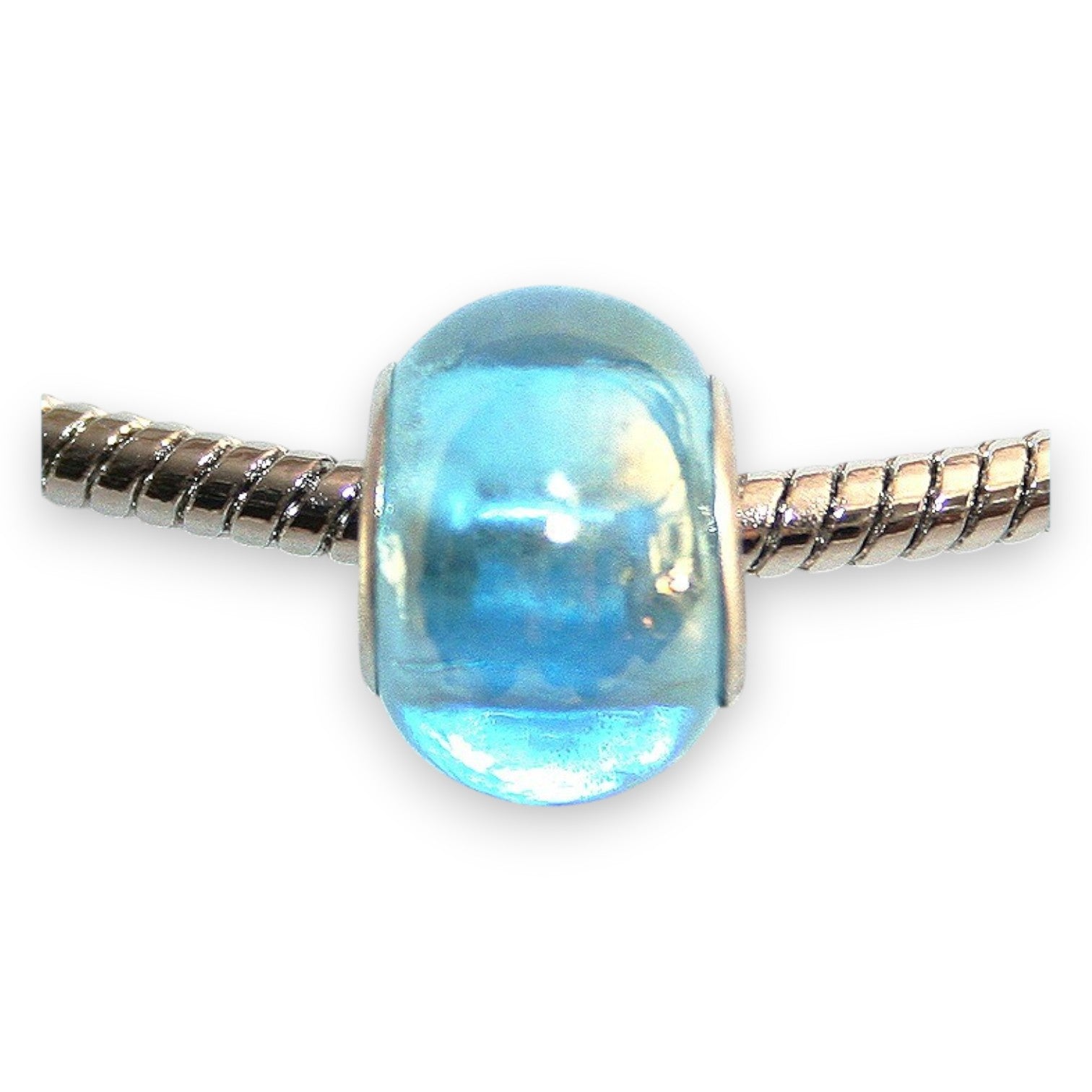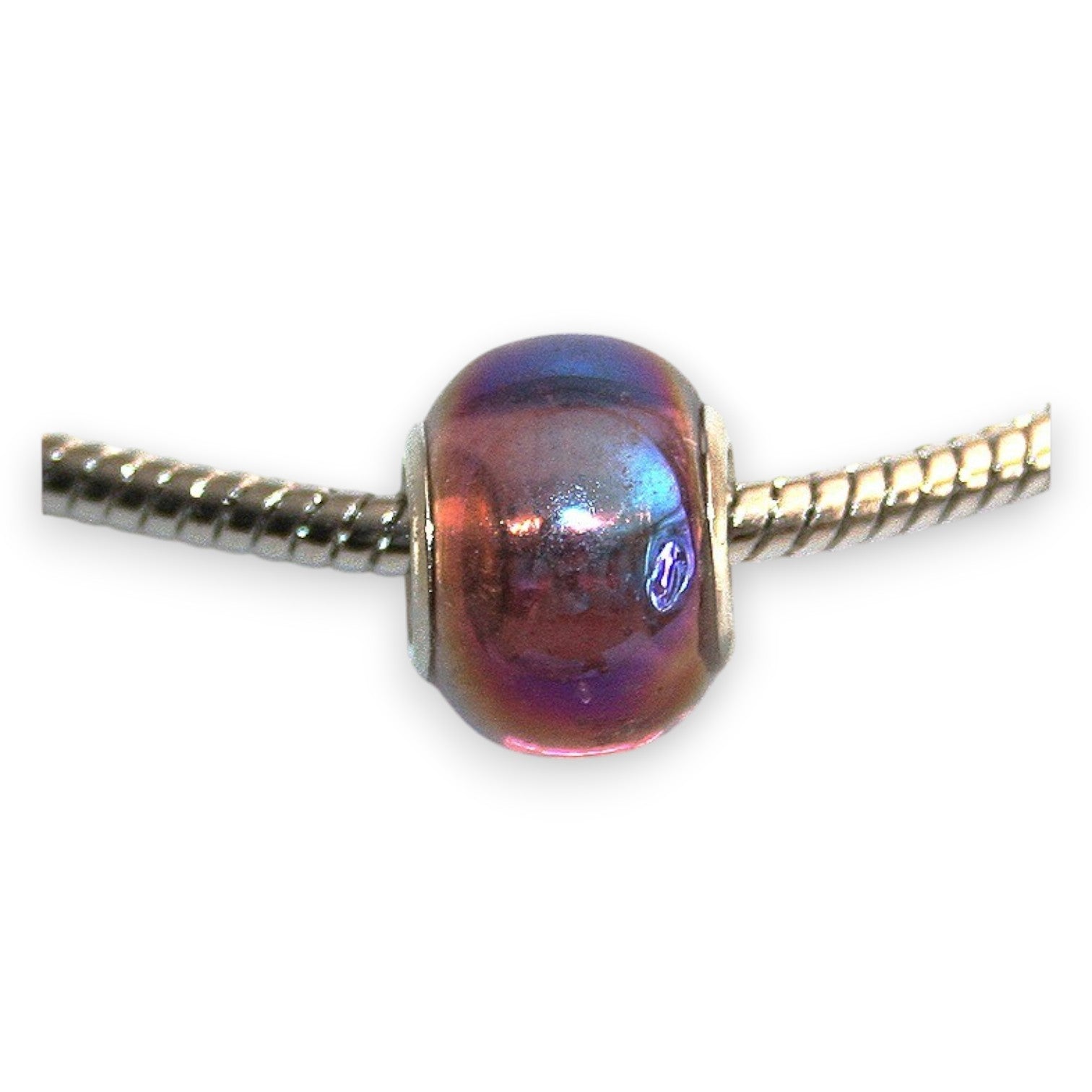 Apportez éclat et élégance à vos créations avec cette perle européenne en verre irisé, montée sur un noyau en métal argenté foncé.