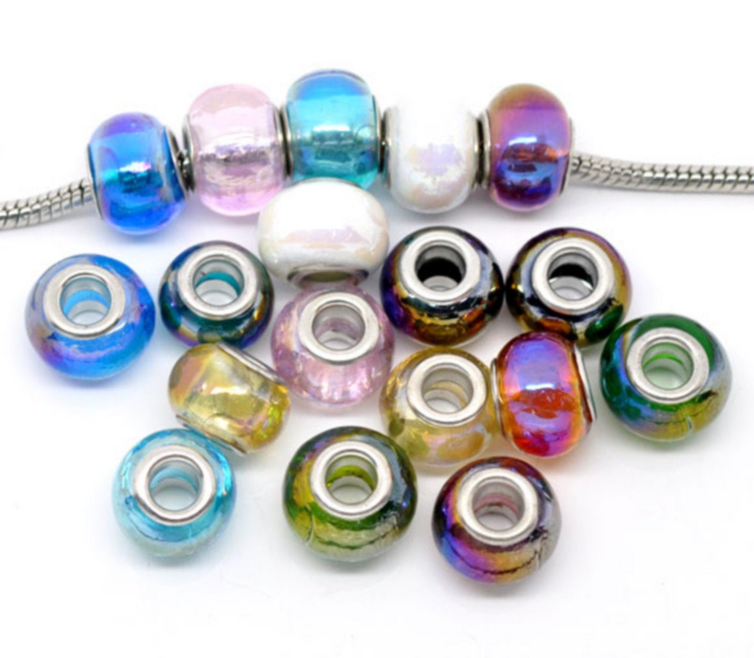 💫 Perle Européenne en Verre Irisé – Gros Trou 4 mm
