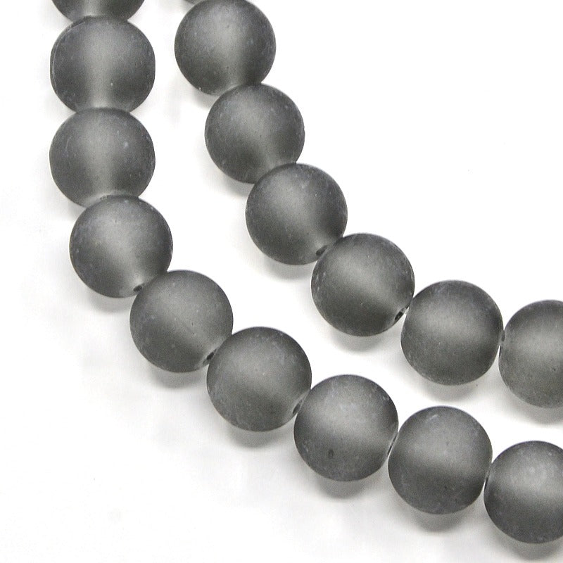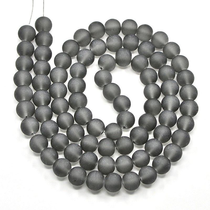 Perles Rondes en Verre Givré Transparent – 8 mm – Coloris Gris