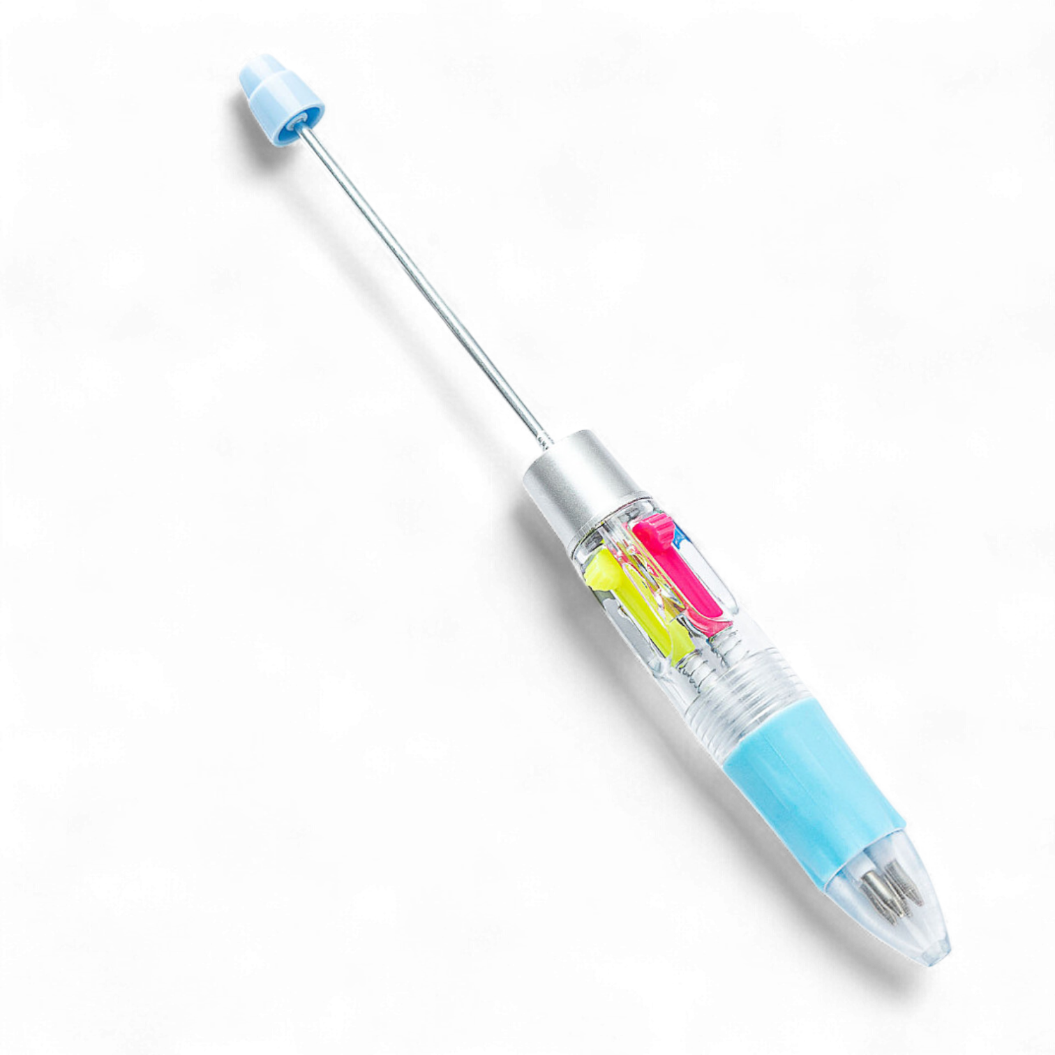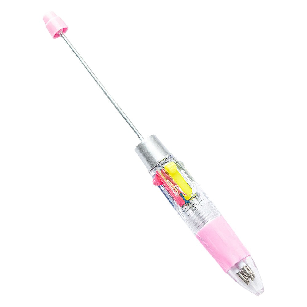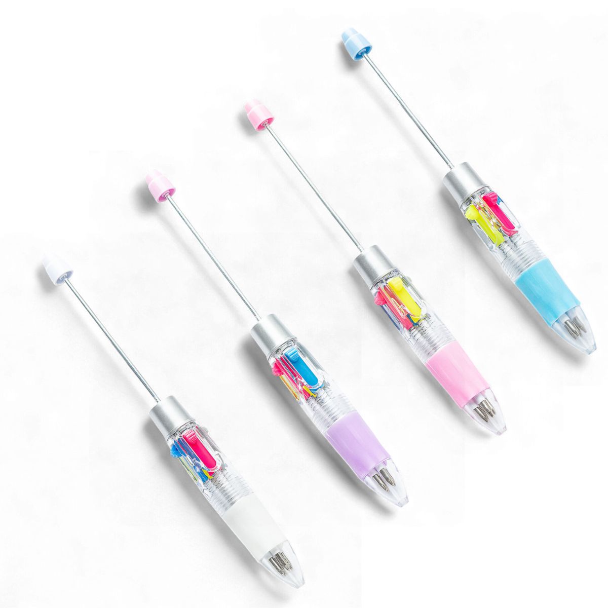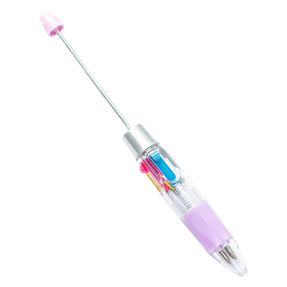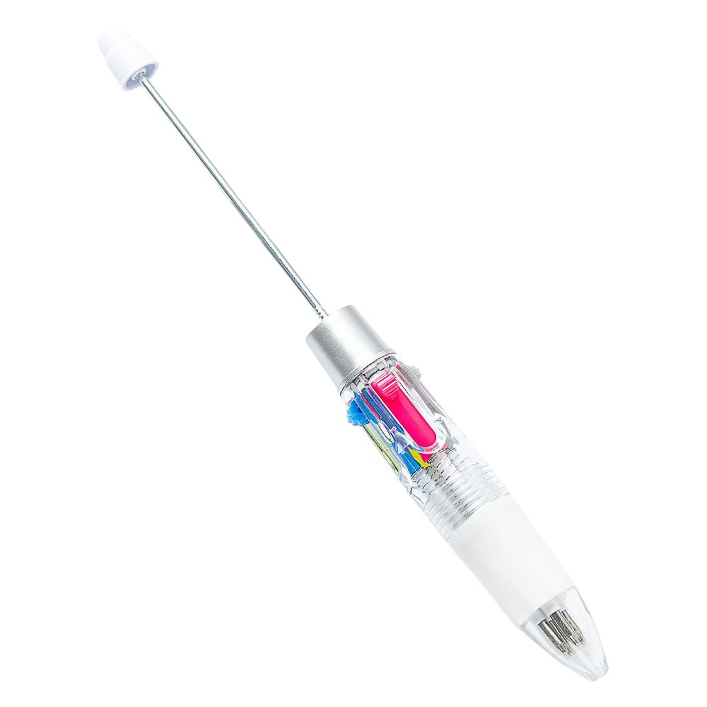 Alliez praticité et créativité avec ce stylo 4 couleurs personnalisable ! Grâce à son système à tige, vous pouvez l’agrémenter de vos perles préférées pour un accessoire unique, à votre image. Disponible en blanc, rose ou violet, il combine fonctionnalité et fantaisie pour égayer vos journées d’écriture.
