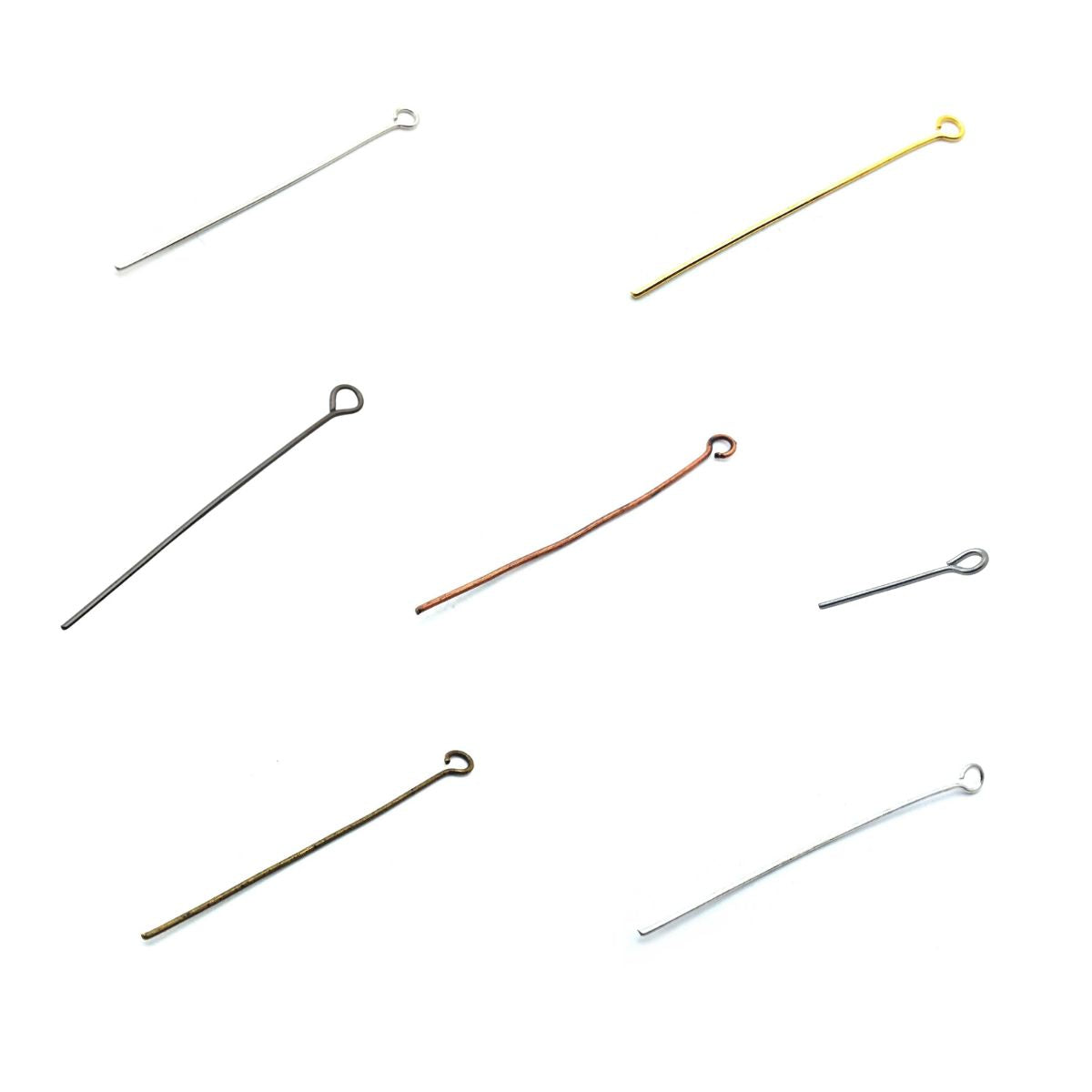 🔗 Lot de 50 tiges à œil – Métal argenté clair ou foncé, anthracite, doré, bronze ou cuivre – 16, 40 ou 45mm