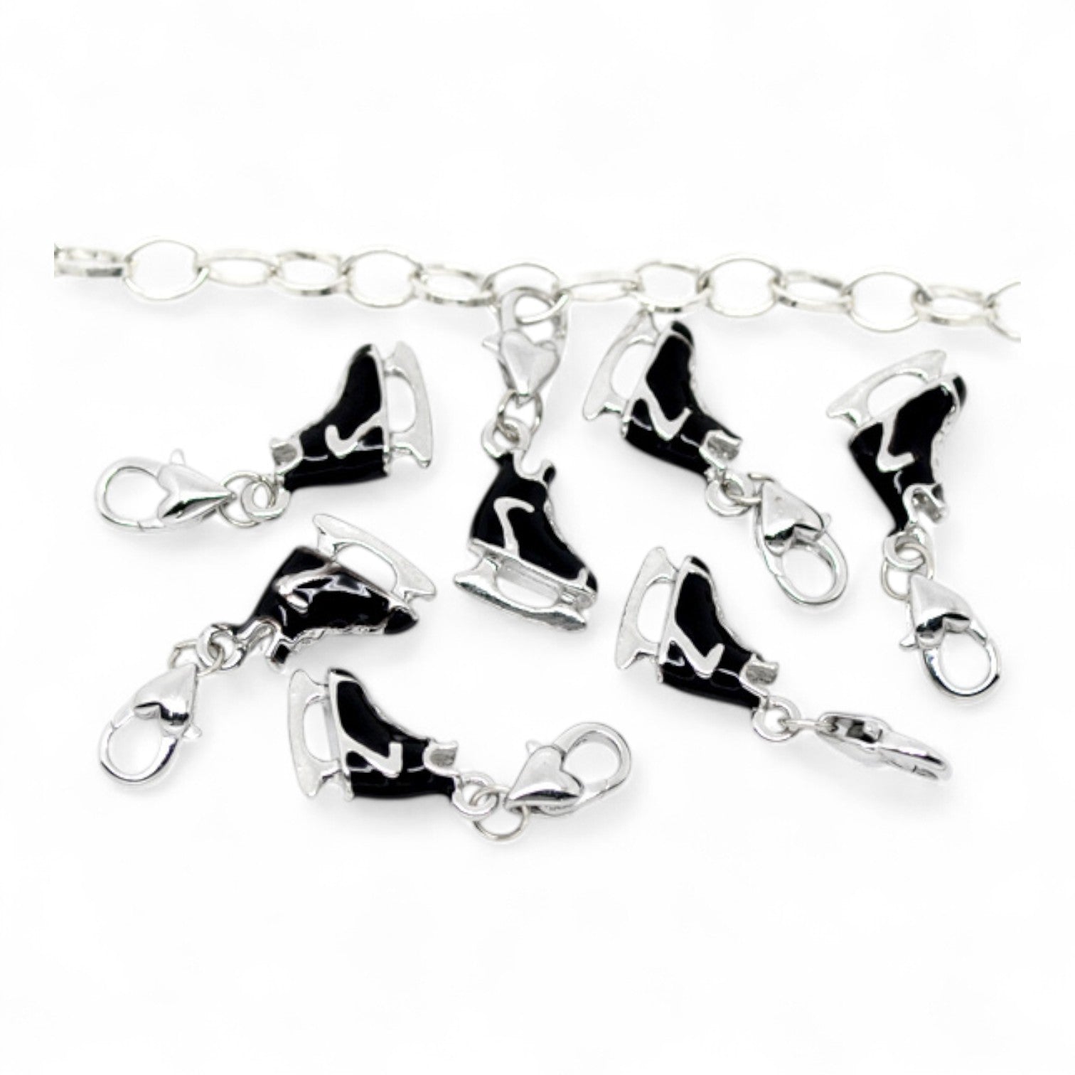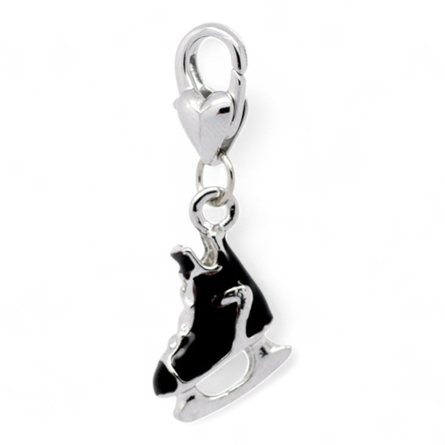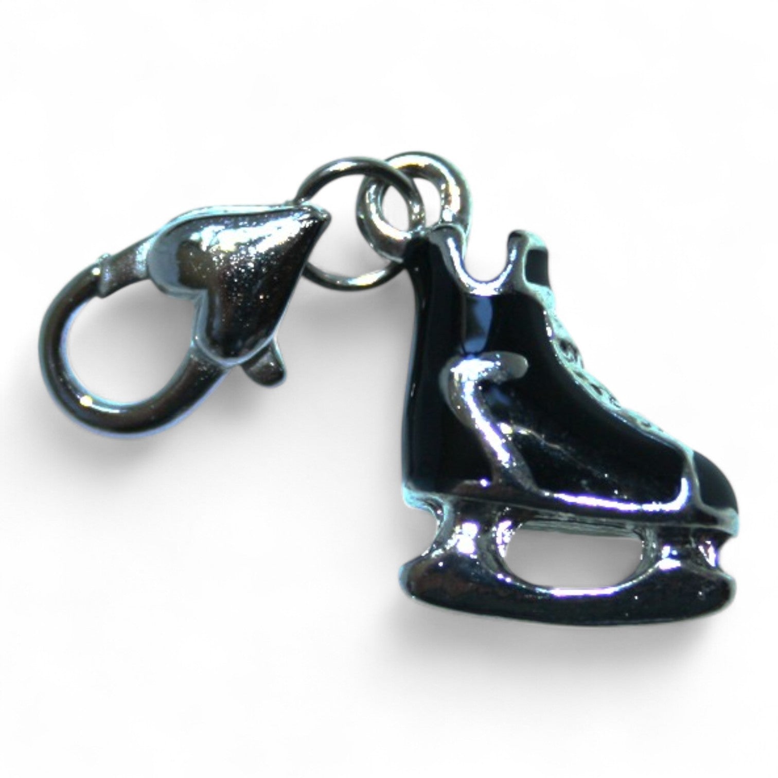 Ce charm en métal argenté émaillé représente un élégant patin à glace noir. Un accessoire original pour une touche sportive et hivernale.