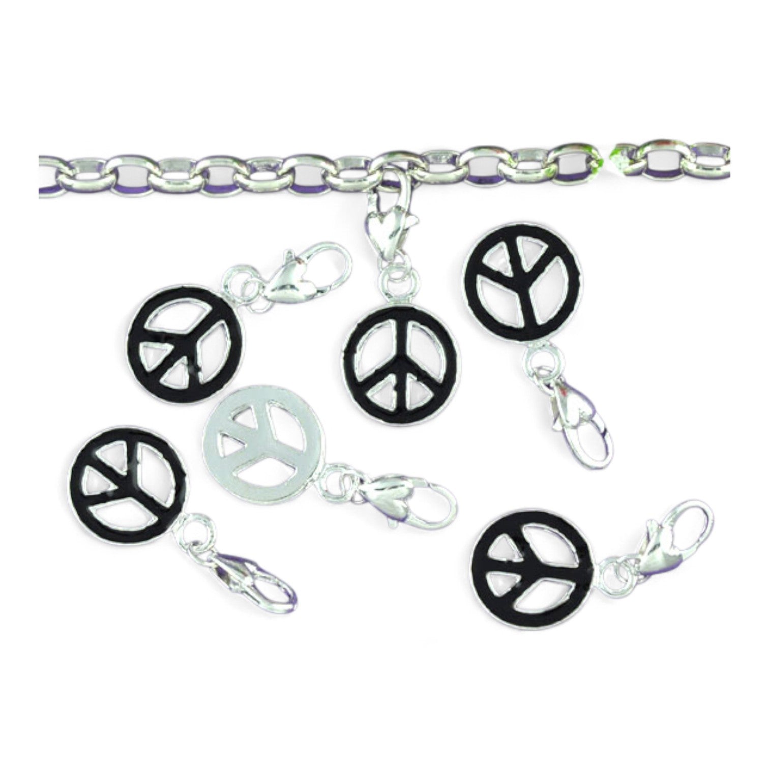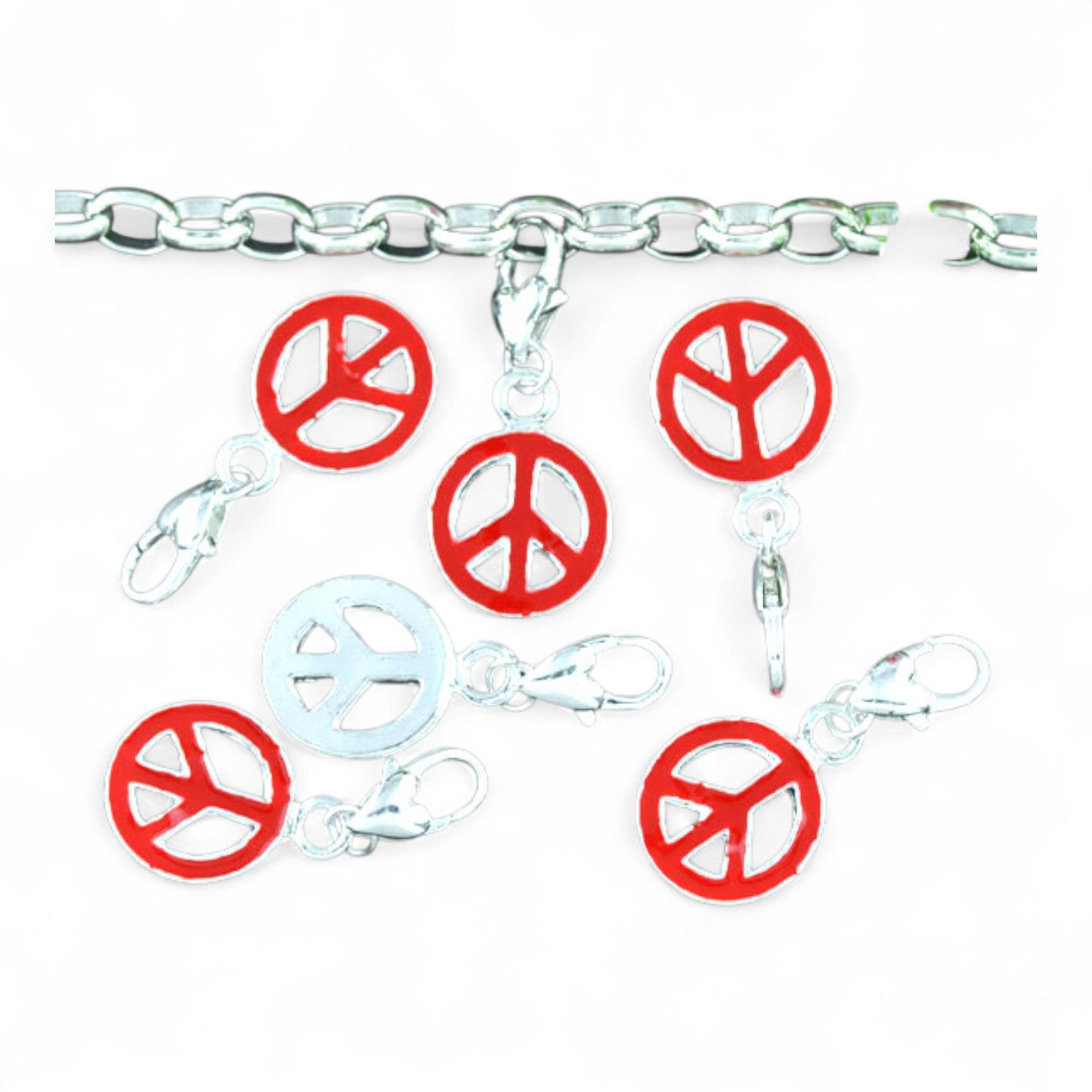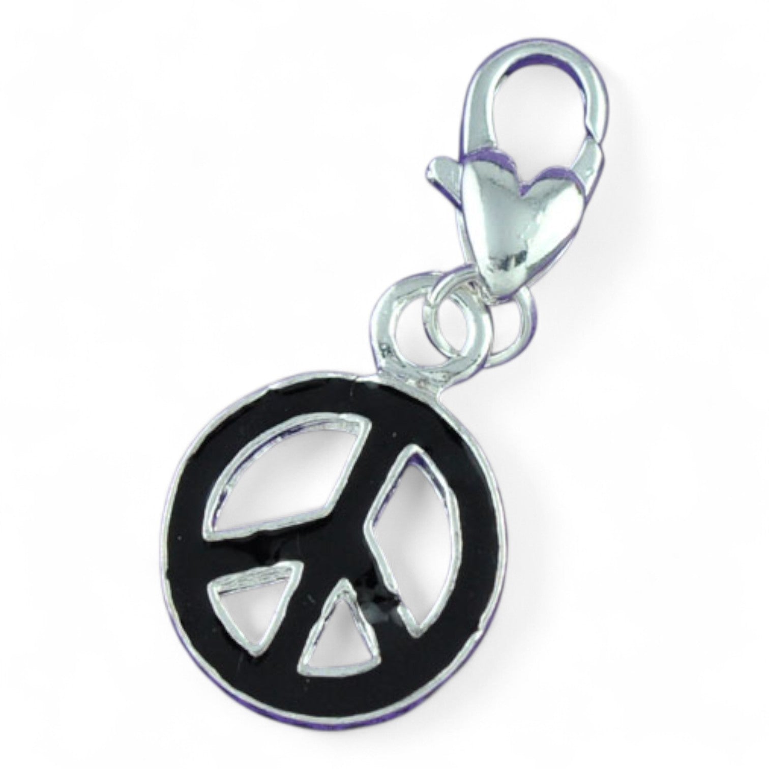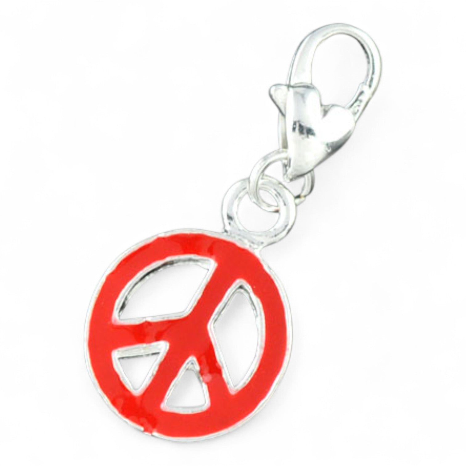 Ce joli charm en métal argenté émaillé représente le célèbre symbole Peace and Love. Disponible en rouge ou noir, il ajoute du caractère à vos créations.