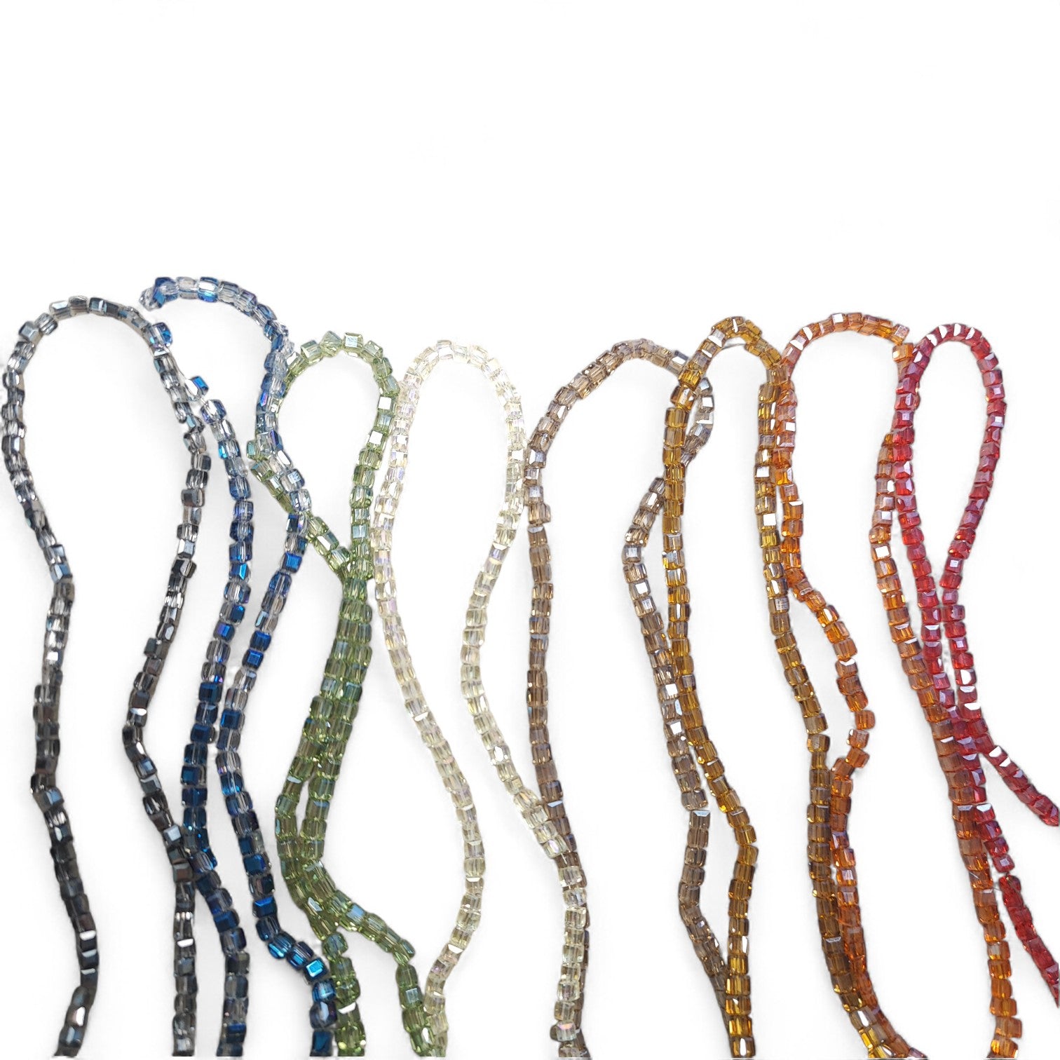x1 fil de 98 Perles Cubiques en Verre – 3 mm – Facettées et Galvanisées
